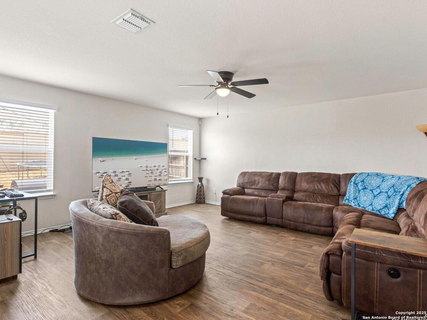 Looking for a home with great space and that backs up to a green-belt? You won't want to miss out on this one! This two-story home, built in 2019, Features 4 bedrooms, 2.5 bath with 2243 square feet of living space. Downstairs you will find the kitchen area opens to a spacious living room that extends to a covered patio, perfect for outdoor dining! Upstairs you will find a loft area which leads to the 4 bedrooms of the home. Off of the primary bedroom is a large bathroom, and a walk-in closet. The refrigerator and wash/dryer convey with the home. Located in the Solana Ridge subdivision, you can enjoy the community pool and playground! This home is close to schools, shopping and restaurants.