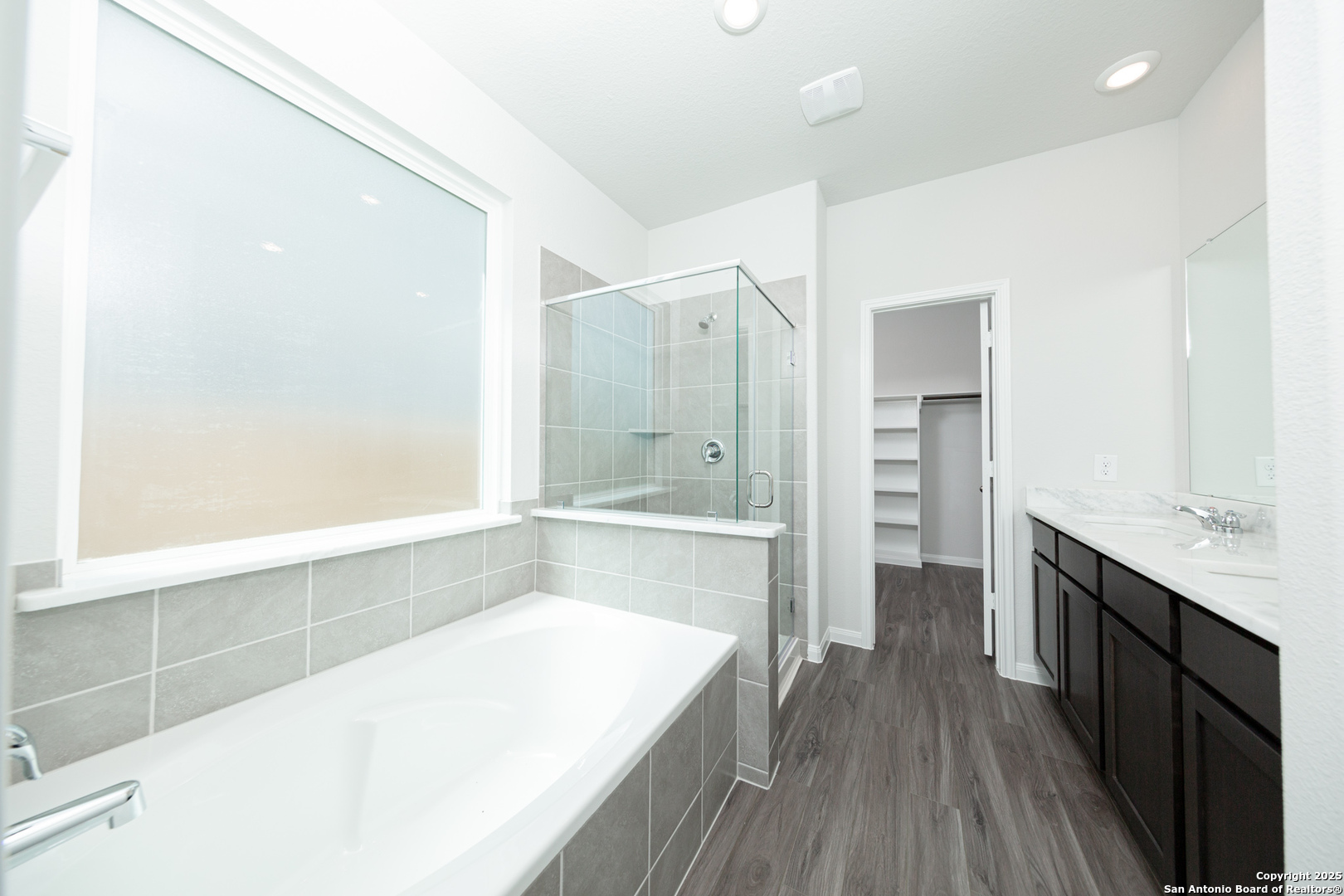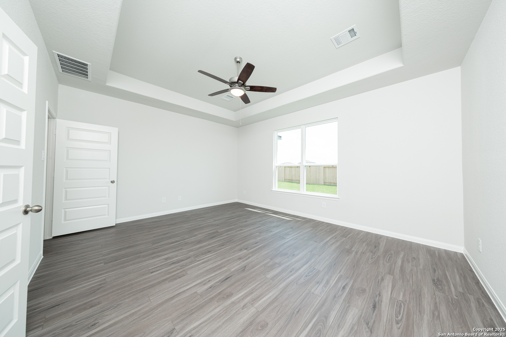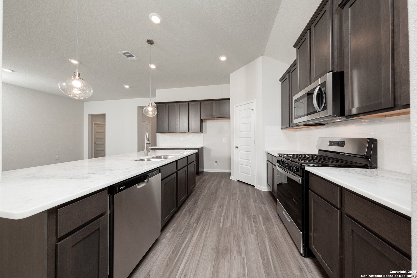 Love where you live in Cinco Lakes in San Antonio, TX! Conveniently located off Loop 1604 and Highway 90, Cinco Lakes makes commuting to Randolph Air Force Base or Downtown San Antonio a breeze! The Pearl floor plan is a charming 1-story home with 3 bedrooms, 2 bathrooms, and a 2-car garage. This home has it all, including a large kitchen island overlooking the family and dining rooms and vinyl plank flooring throughout the common areas. The gourmet kitchen is sure to please with 42-inch cabinets and granite countertops! Retreat to the secluded Owner's Suite featuring an oversized shower, spacious walk-in closet, and tray ceiling for some dramatic flair! Enjoy the great outdoors with no back neighbors! Don't miss your opportunity to call Cinco Lakes home, schedule a visit today!
