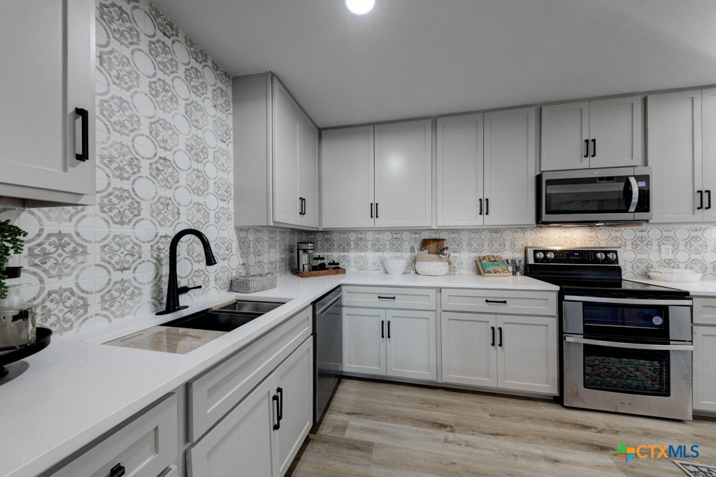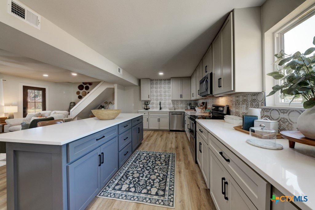 Totally remodeled home in Lakewinds! Home features an open floor plan with a mammoth granite island separating the kitchen and living. Primary bedroom downstairs with an outstanding walk-in tiled shower along with a secondary guest bedroom and bath down. 2 bedrooms up with huge walk-in closet/storage closets. Huge privacy fenced backyard with oversized side entry detached garage/workshop complete with additional half bath. Convenient front entry open RV/Boat storage behind high fence and gate.