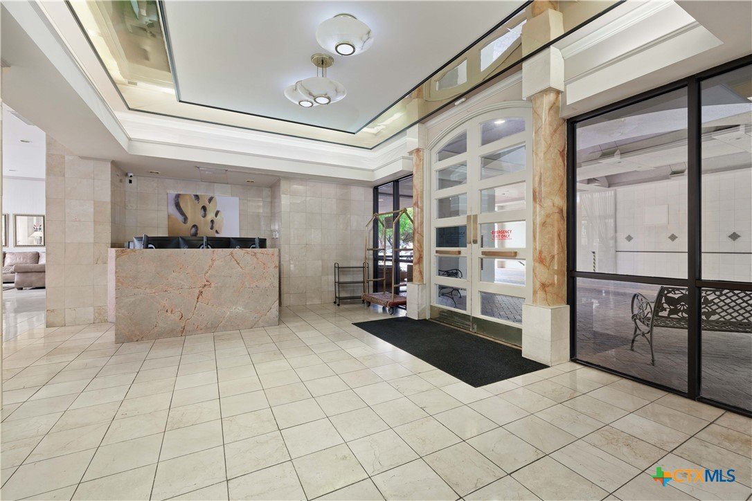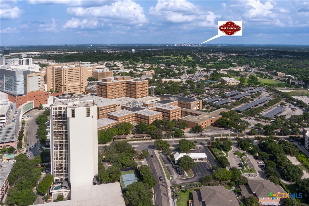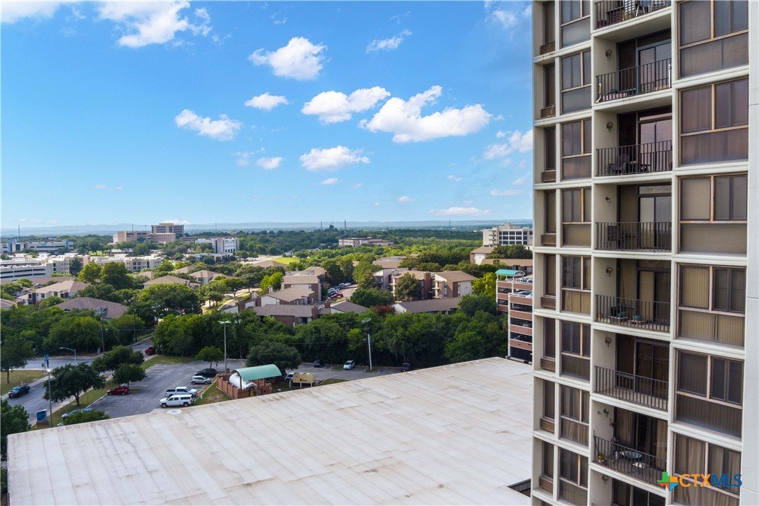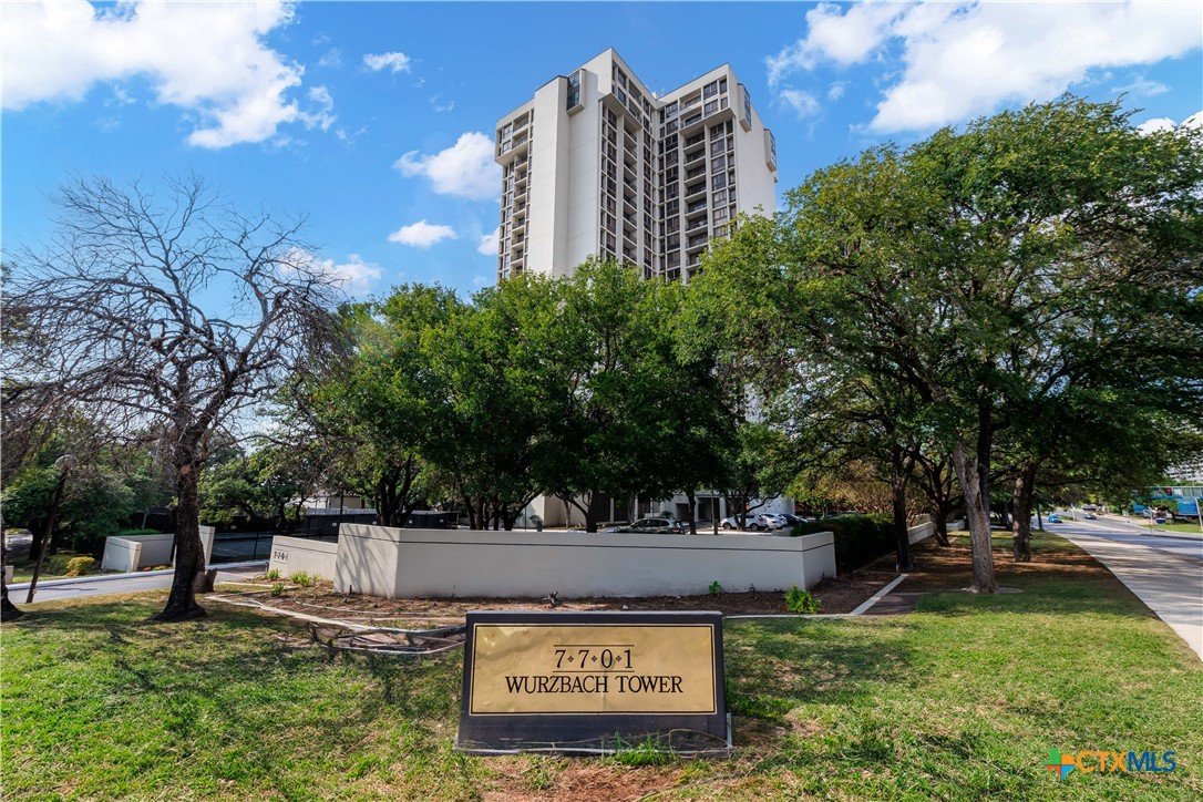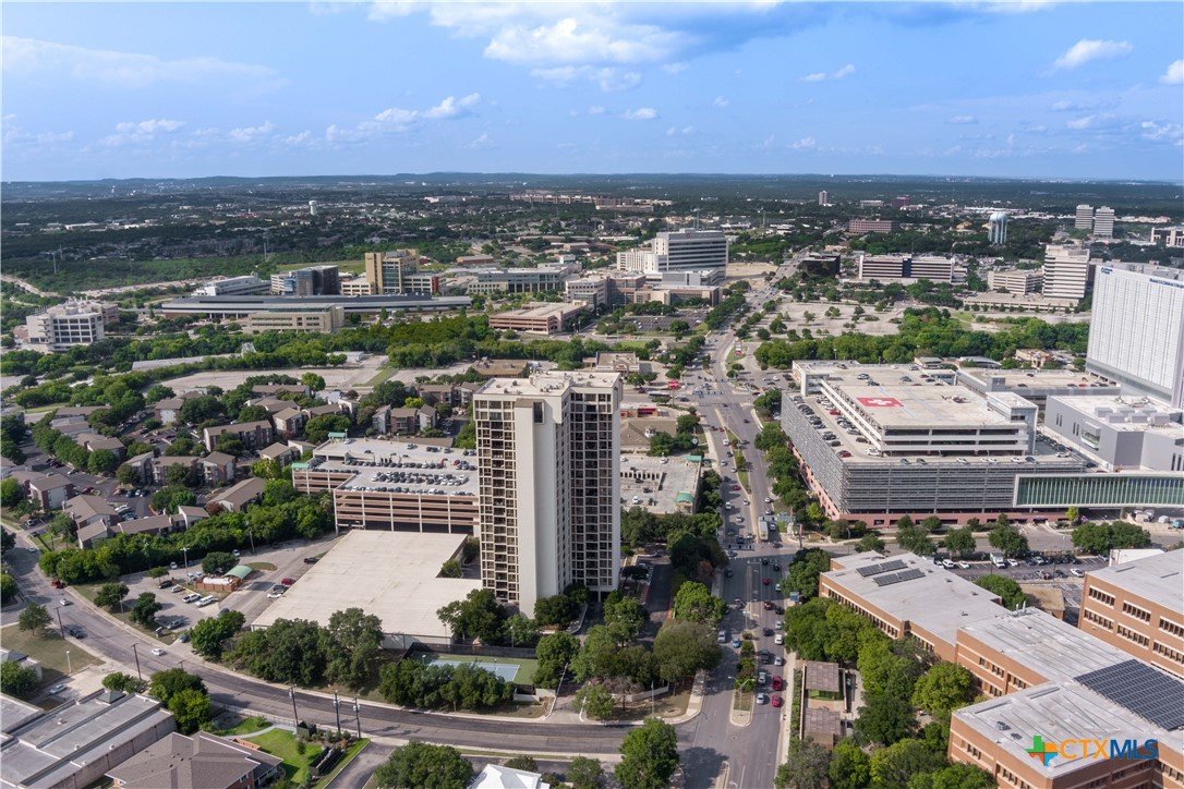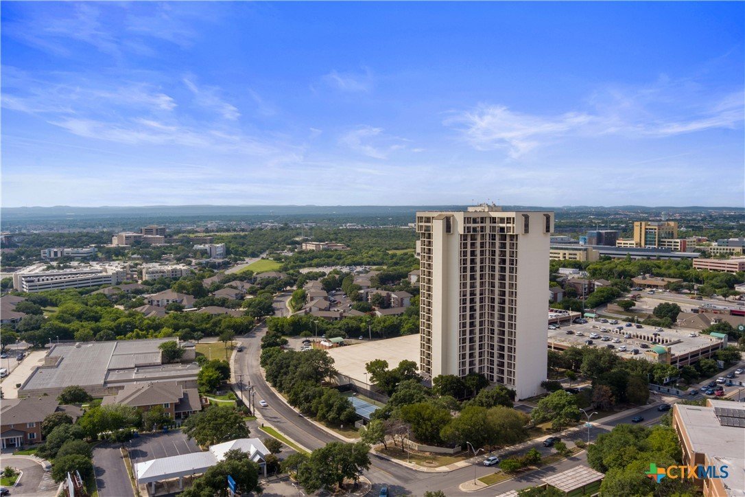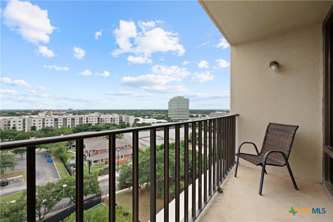 Welcome to Wurzbach Tower, perfectly located just a minute from the Medical Center! This inviting 2-bedroom, 2-bath condo offers a spacious and open floor plan on the 10th floor, providing stunning city views extending for miles. The living area features large windows that bring in plenty of natural light, highlighting the beautiful flooring that extends throughout the condo. The adjacent dining area offers ample room for meals and entertaining, seamlessly connecting the living areas. The kitchen comes equipped with great appliances, sleek countertops, and plenty of storage, making meal preparation a breeze. The master bedroom boasts an en-suite bathroom with stylish barn doors and a spacious walk-in closet. The second bedroom is versatile and can be used as a guest room, home office, or hobby space, with a second full bathroom conveniently located nearby. Additional features include a stacked washer and dryer for easy laundry access and balcony offering breathtaking views. Residents of Wurzbach Tower enjoy a range of amenities, including controlled access, 24-hour security, a sparkling pool, tennis courts, a fitness center, a game room and reservable party room. Additionally, the unit comes with two parking spaces in the garage, providing convenience and peace of mind. The location is unbeatable, with the Medical Center less than half a mile away and easy access to other shopping, dining, and entertainment options. Enjoy the vibrant city life with everything you need right at your doorstep. Don't miss the chance to make this inviting condo your new home!