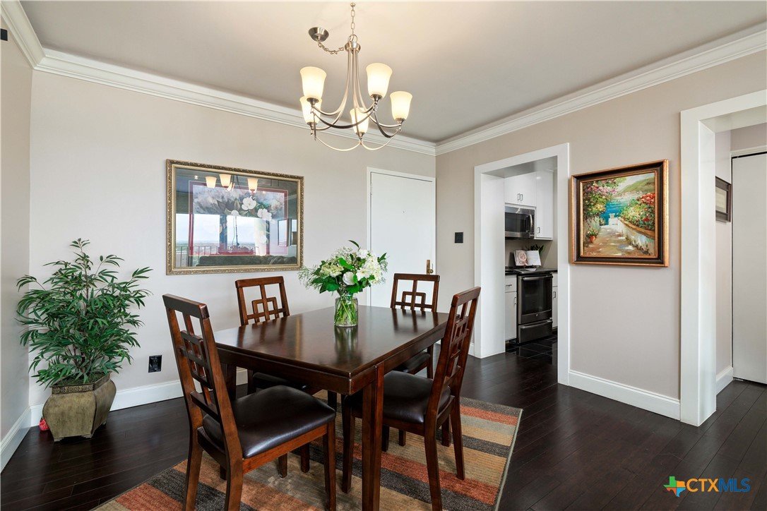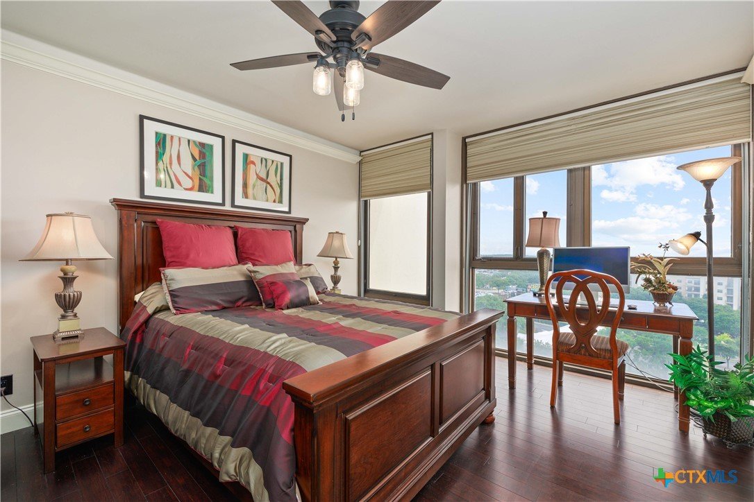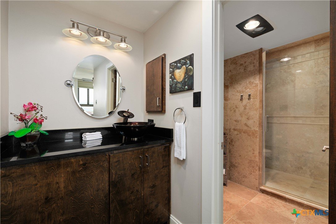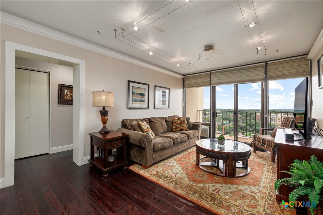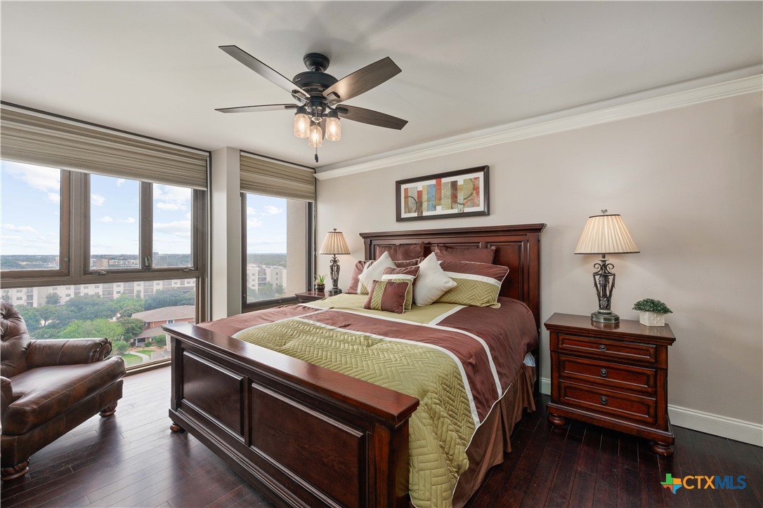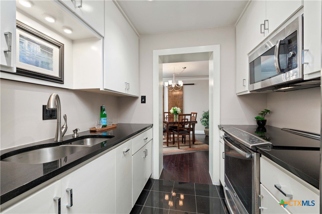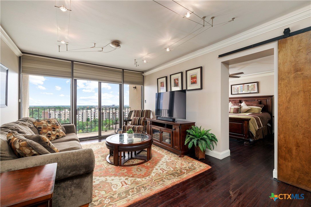 Welcome to Wurzbach Tower, perfectly located just a minute from the Medical Center! This inviting 2-bedroom, 2-bath condo offers a spacious and open floor plan on the 10th floor, providing stunning city views extending for miles. The living area features large windows that bring in plenty of natural light, highlighting the beautiful flooring that extends throughout the condo. The adjacent dining area offers ample room for meals and entertaining, seamlessly connecting the living areas. The kitchen comes equipped with great appliances, sleek countertops, and plenty of storage, making meal preparation a breeze. The master bedroom boasts an en-suite bathroom with stylish barn doors and a spacious walk-in closet. The second bedroom is versatile and can be used as a guest room, home office, or hobby space, with a second full bathroom conveniently located nearby. Additional features include a stacked washer and dryer for easy laundry access and balcony offering breathtaking views. Residents of Wurzbach Tower enjoy a range of amenities, including controlled access, 24-hour security, a sparkling pool, tennis courts, a fitness center, a game room and reservable party room. Additionally, the unit comes with two parking spaces in the garage, providing convenience and peace of mind. The location is unbeatable, with the Medical Center less than half a mile away and easy access to other shopping, dining, and entertainment options. Enjoy the vibrant city life with everything you need right at your doorstep. Don't miss the chance to make this inviting condo your new home!