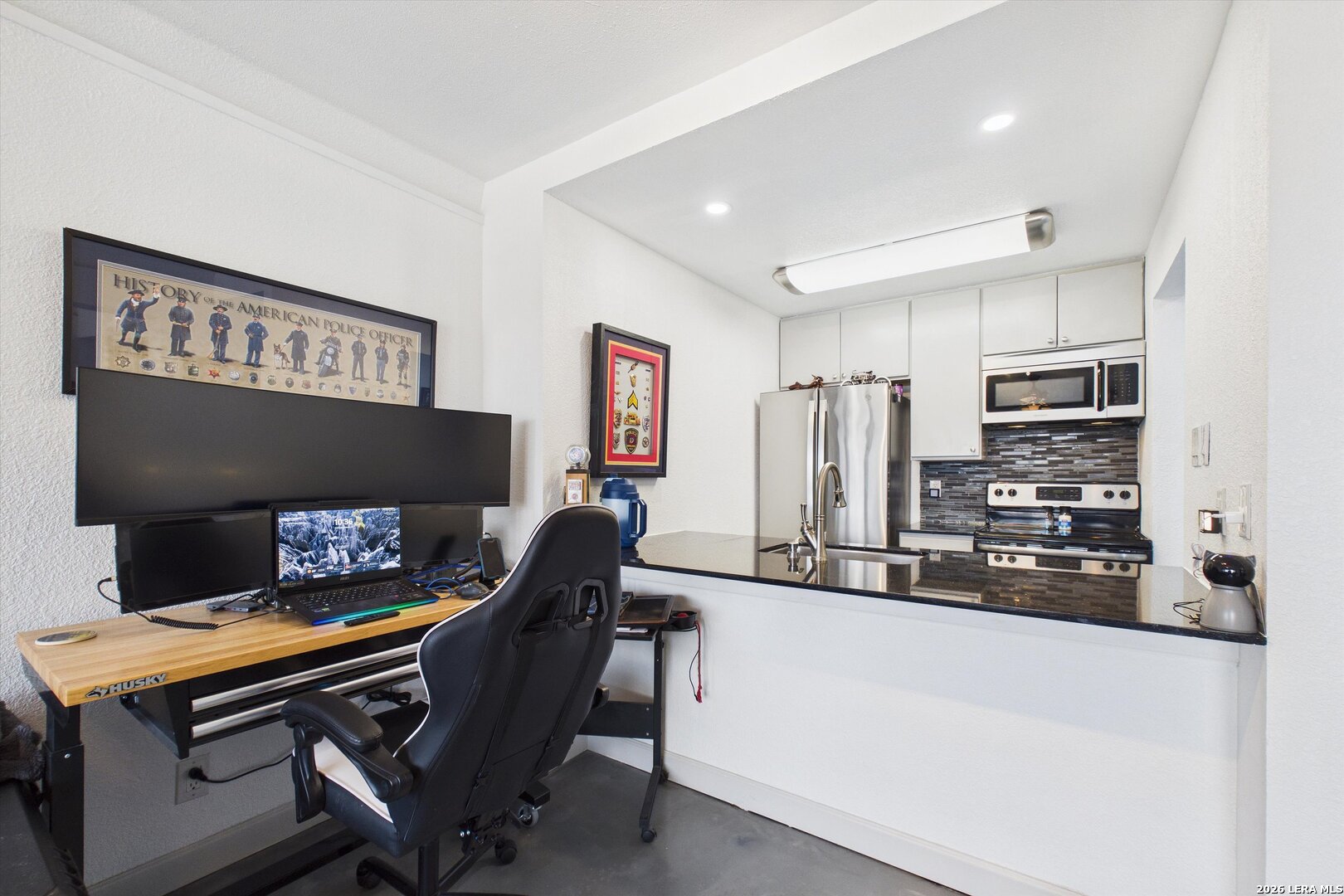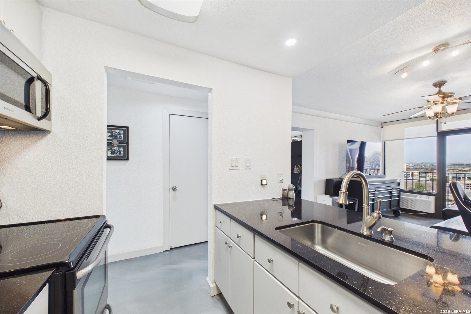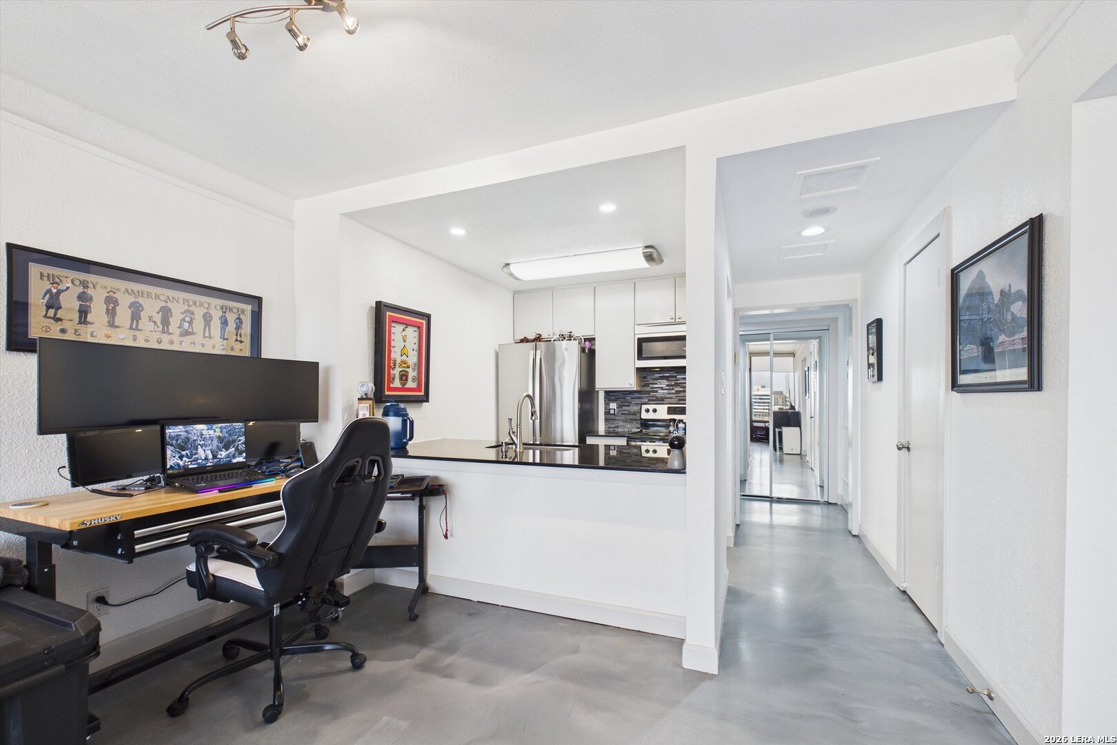 Well taken care of and updated one bedroom one bath condo on the 18th floor of Wurzbach Tower located in the heart of the Medical Center. Clean lines with updates to include 2 PTAC Air Conditioners with Heat Pump 20Amp- 208/230 Volt Hotpoint. Hot water heater updated in 2024 and flooring was upgraded by TopCoat Epoxy and Staining to a metallic epoxy system. Amazing views from the living room and bedroom. 24/7 concierge security. Assigned parking space and visitor parking out front. Walking to Medical Center and convenient to IH-10, 1604 and 410.