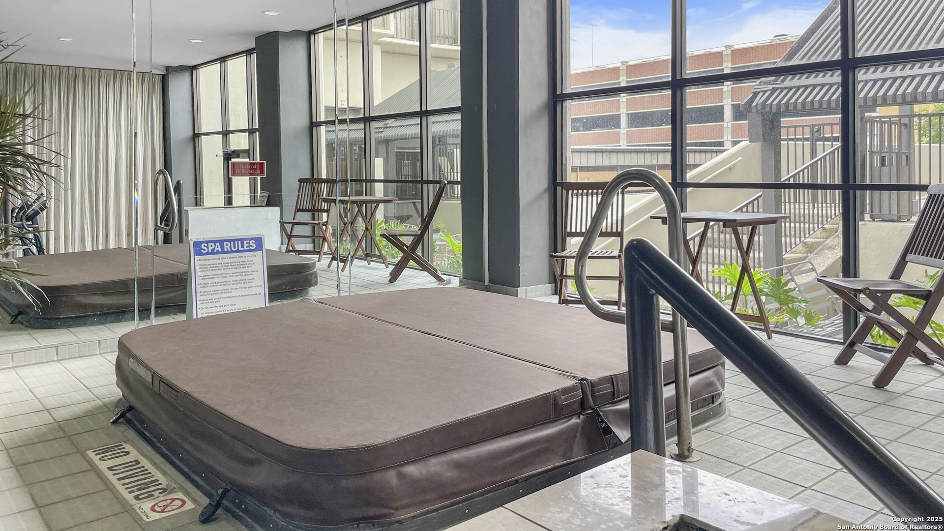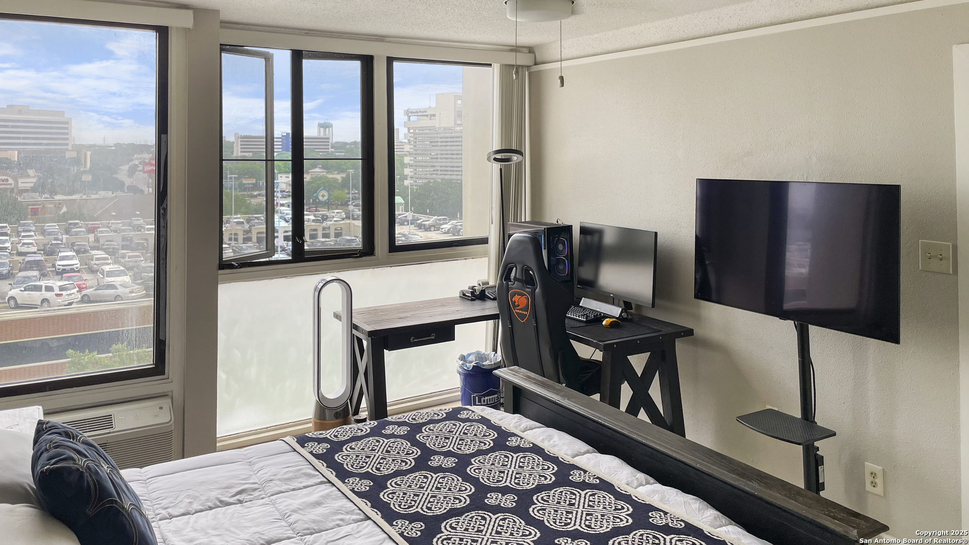 Wurzbach Tower Condo offers a perfect blend of comfort, luxury, and convenience in the heart of the medical center. This high-rise condo boasts a spacious one-bedroom, one-bathroom layout that invites you to unwind and enjoy city living at its finest. As you step inside, you'll be greeted by beautifully lit rooms that flood with natural light, creating a warm and inviting atmosphere. Your private balcony, perched on the 7th floor, offers an impressive "bird's-eye view" of the city, providing a perfect spot to relax and soak in the urban ambiance. The kitchen is a chef's dream, boasting solid countertops and stainless steel appliances. Recently installed new stackable washer and dryer. For those seeking relaxation, the condo amenities offers an inviting outdoor pool, a soothing hot tub, a well-equipped fitness area, a tennis court, a game room with a pool table, a library, and conveniently located elevators. Wurzbach Tower Condo takes security seriously, offering round-the-clock security, a guarded entrance to the building, and secure gated garage parking with designated spots. With its prime location, exceptional amenities, and unwavering commitment to safety, this condo is the perfect choice for those seeking a comfortable and luxurious home in the heart of the city.