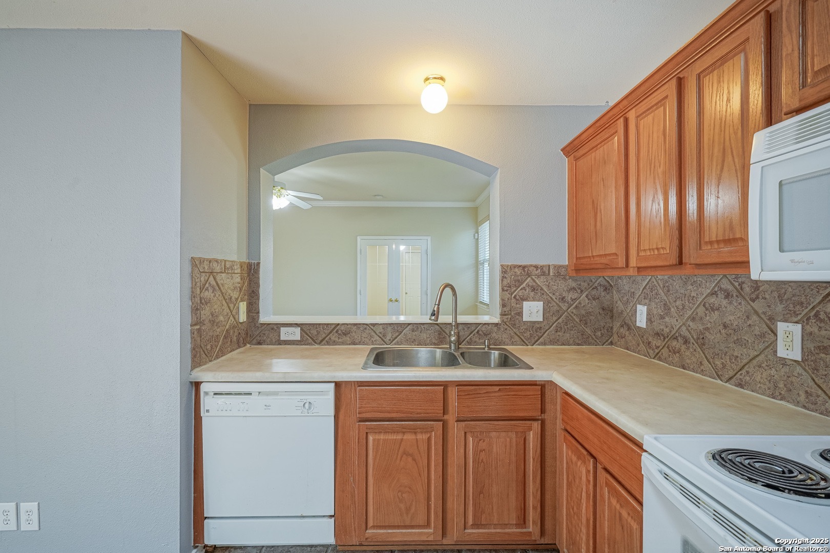 Lovely Garden Home community. This home is on the cul-de-sac and has quite a bit of yard with it. Ceramic tile thru-out, 3rd bed has french doors and makes perfect study. Lots of decking out back. Gated community in the med center area. Water Softener and sprinkler system included. See additional information link for application addenda.