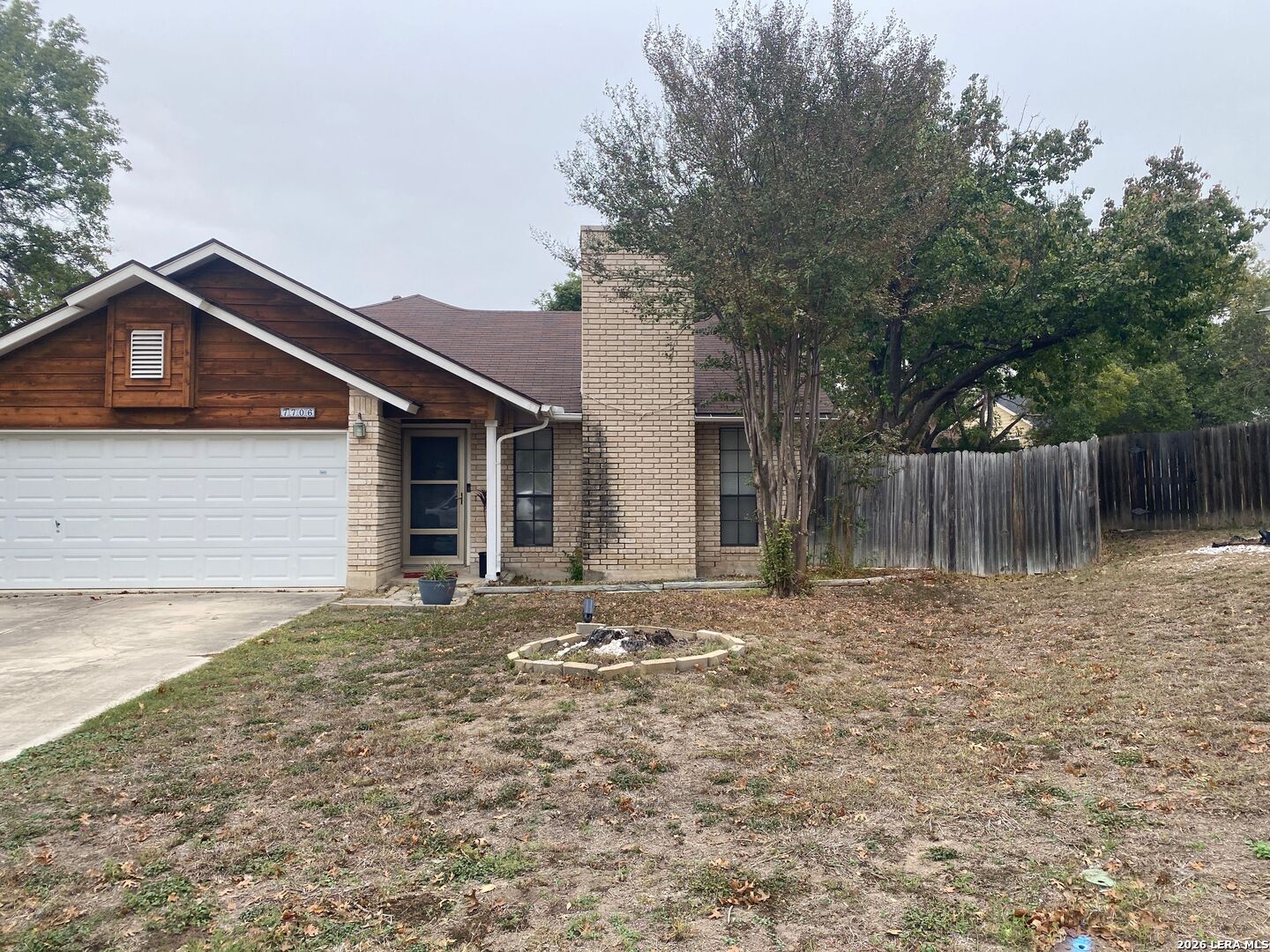 Located in the well-established Apple Creek subdivision, this cozy one-story home offers comfort and space. The living area features ceramic tile, high ceilings, and a floor-to-ceiling brick fireplace that creates a warm focal point for relaxing evenings. A formal dining room provides the perfect setting for gatherings, while the kitchen offers ample cabinet and countertop space for everyday cooking and entertaining. The primary suite includes a sitting area ideal for reading or unwinding, along with a ceiling fan for added comfort and carpeting. The en-suite bath features a double vanity, tub/shower combo, and a walk-in closet. Step outside to an oversized backyard with mature trees, a privacy fence, and a patio slab ready for weekend barbecues. Conveniently located near major highways, USAA, the Medical Center, UT Health Science Center, shopping, and dining. **Make ready to be completed!