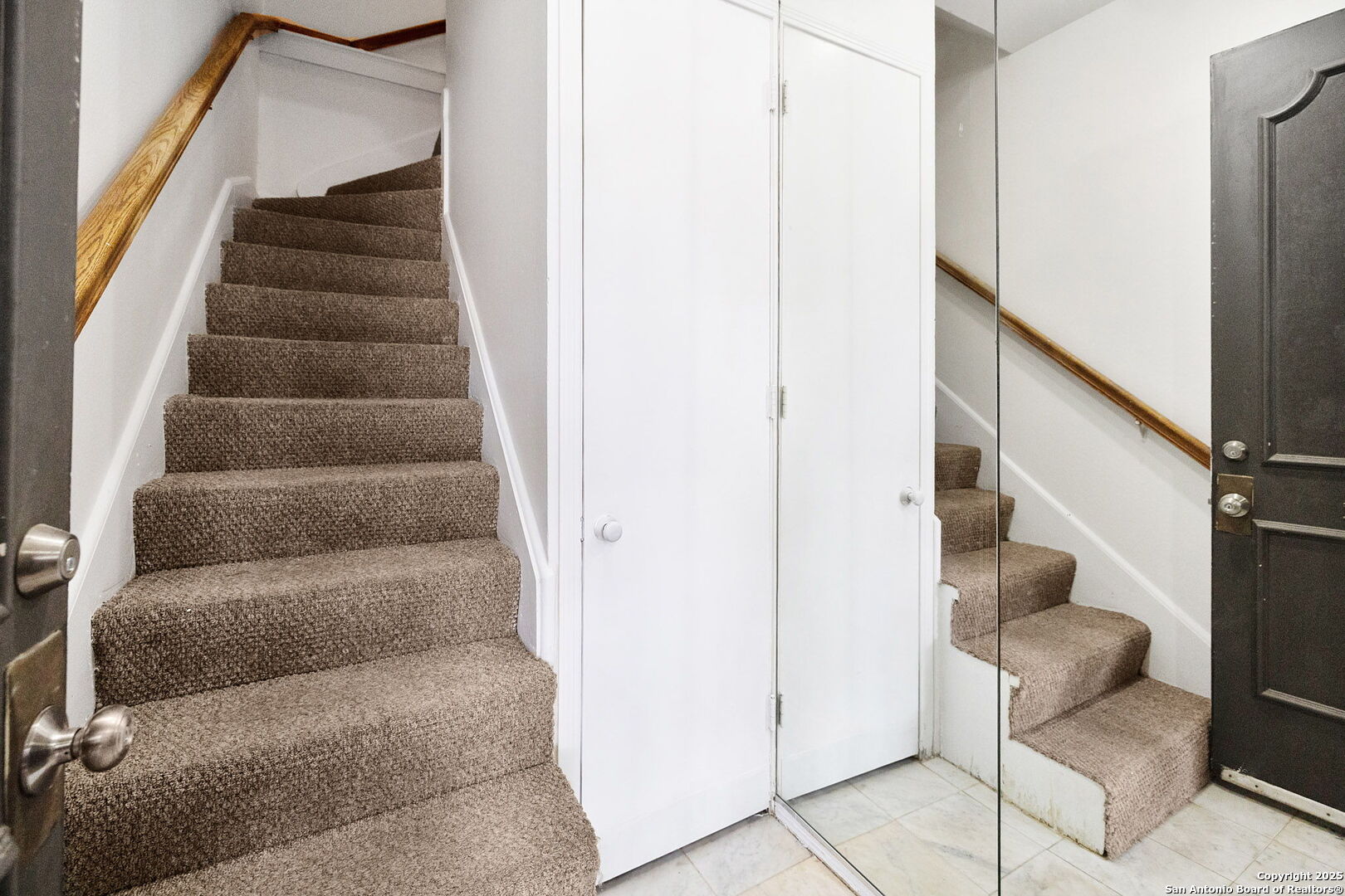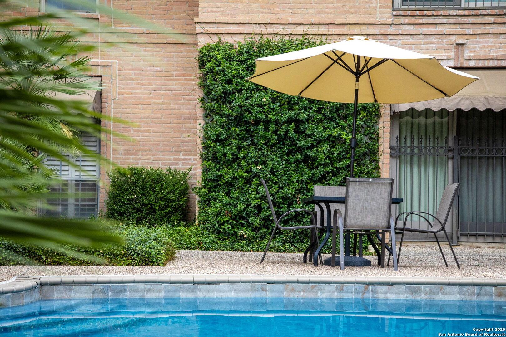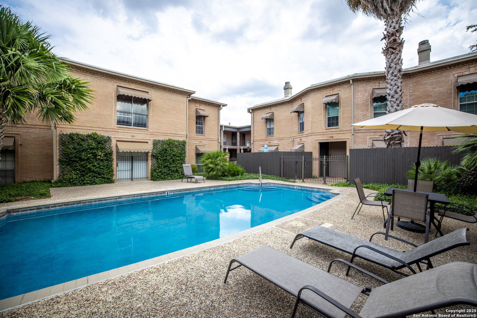 Roomy freshly painted in white 3/3 - three story condo in the prestigious area of Alamo Heights! It lives like a two story, the glass mirrored foyer welcomes you into a marbled loor entry hall on the 1st level, 10 ft high ceilings, outdoor access to covered private patio from one of the dual masters. Secondary master w/outdoor access to a balcony w/ views of Quarry Market towers. Ample walk-in closets in every room, lots of storage - walk-in closets, 2 pools, freshly resurfaced tennis courts, gated entry, two covered parking spots, and tons of extra parking for tenants and visitors. Walking distance to great restaurants, cafes, shopping, yoga studios and HEB, Trader Joe's, Whole Foods and Central Mkt are all close by. Clothes Center for efficient laundry care, daily trash pickup @ front door closet. Experience life within the Chateau Dijon, and in the best school district in the city, close to Incarnate Word & Trinity, an 8 minute convenient drive to the airport without the areal traffic and you can be at the thriving Pearl in 12 minutes.