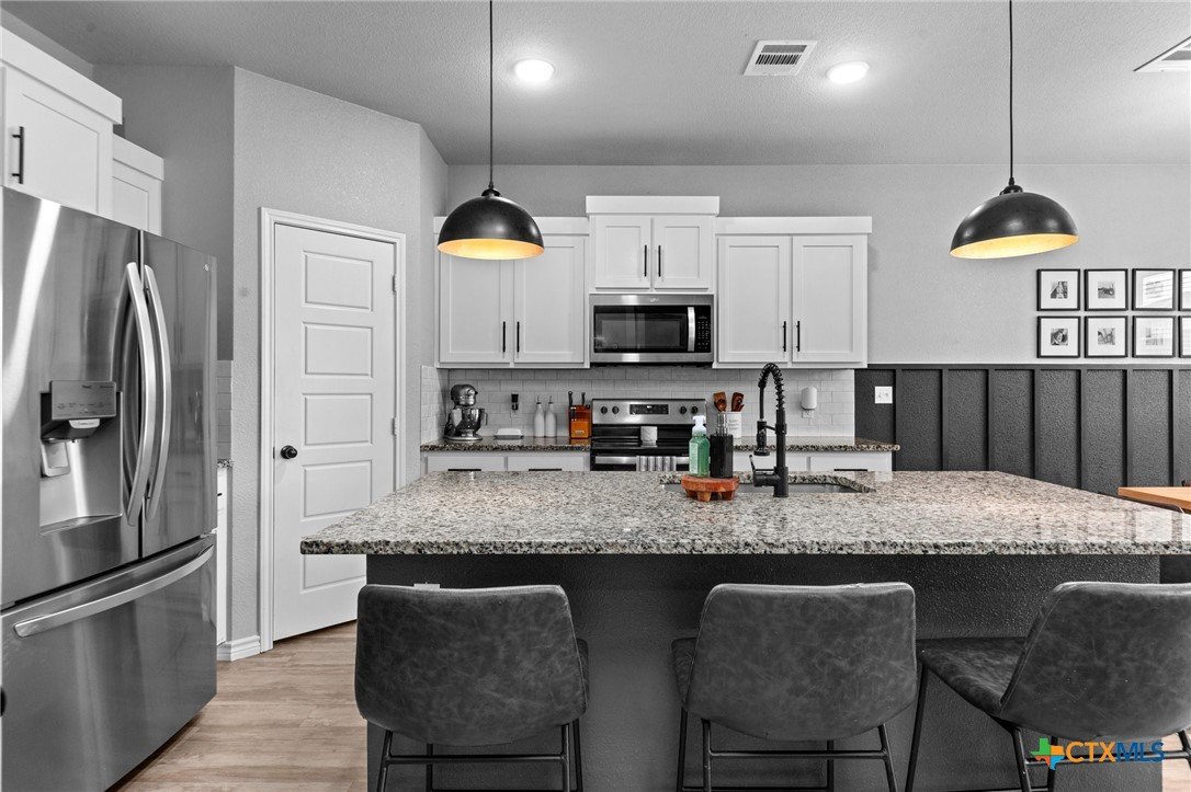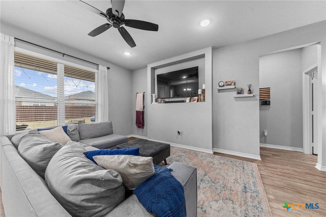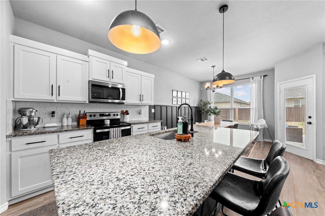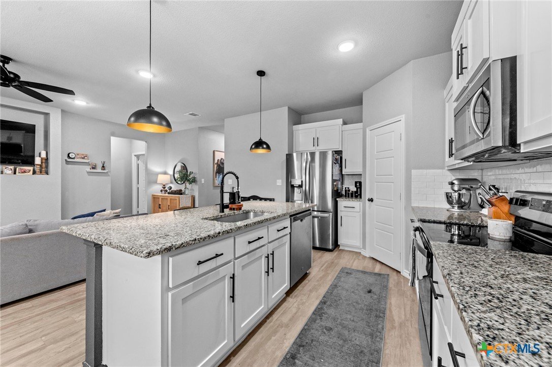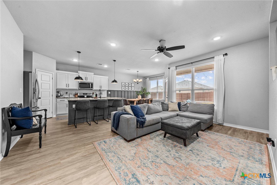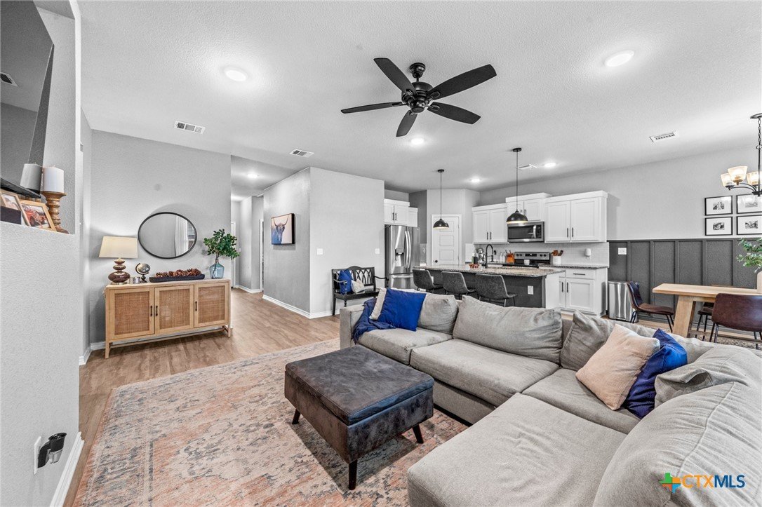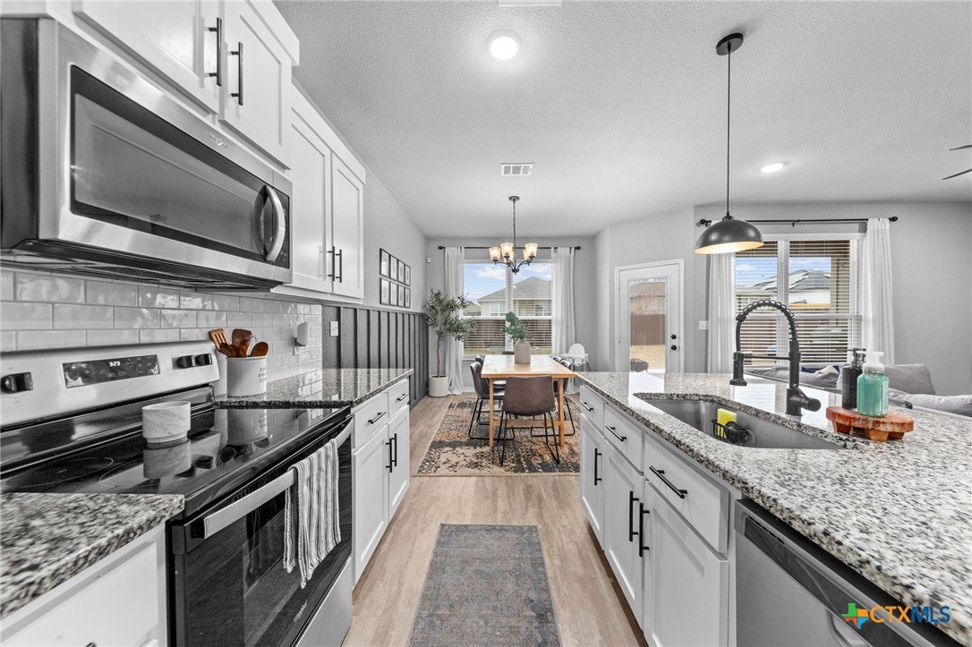 This beautiful three-bedroom, two-bathroom home features modern updates throughout, creating the perfect combination of style and comfort! The open floor plan provides a generous living space, ensuring you remain connected no matter where you are in the house. The stylish dining area is perfect for hosting gatherings. The bedrooms are thoughtfully separated, offering privacy for the primary suite. Additionally, the laundry room includes a desk area, making it ideal for work, filing, and more. Outdoors, the yard is perfect for play and entertaining, especially with the extended patio! Situated in a prime location, this home offers convenient access to nearby amenities while also providing the tranquility of a well-kept neighborhood, giving you the best of both worlds!
