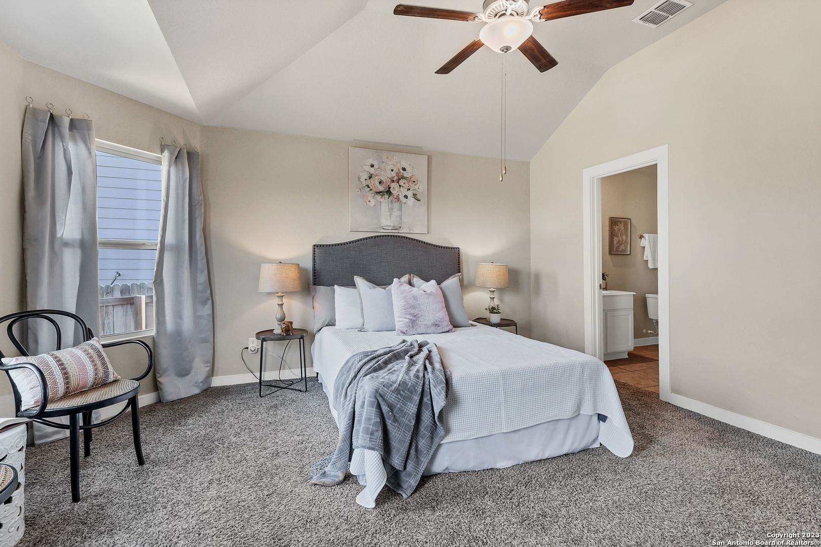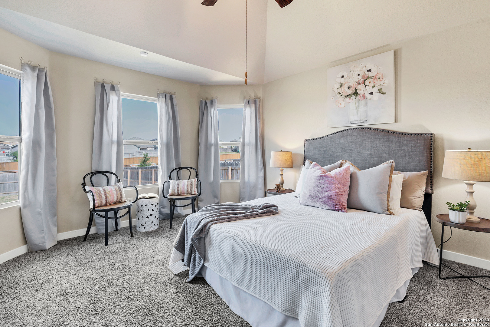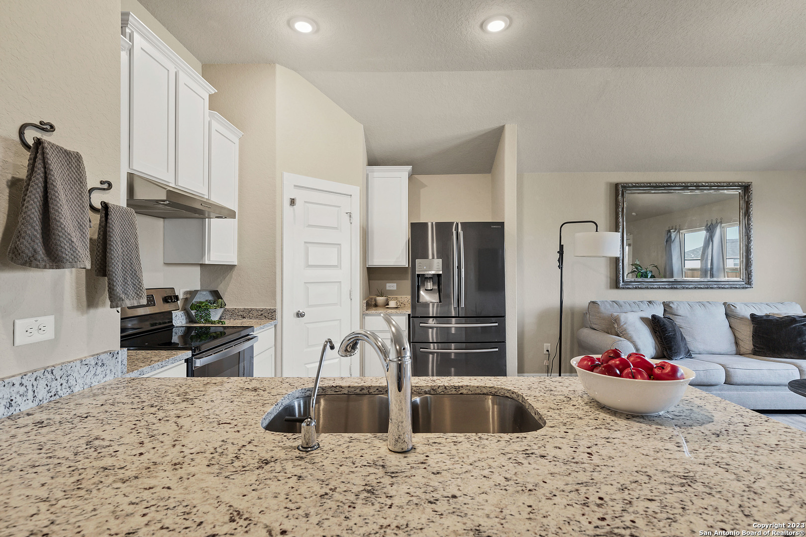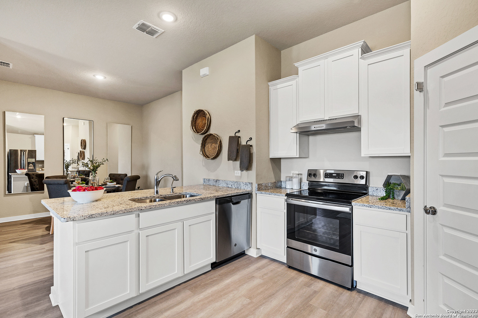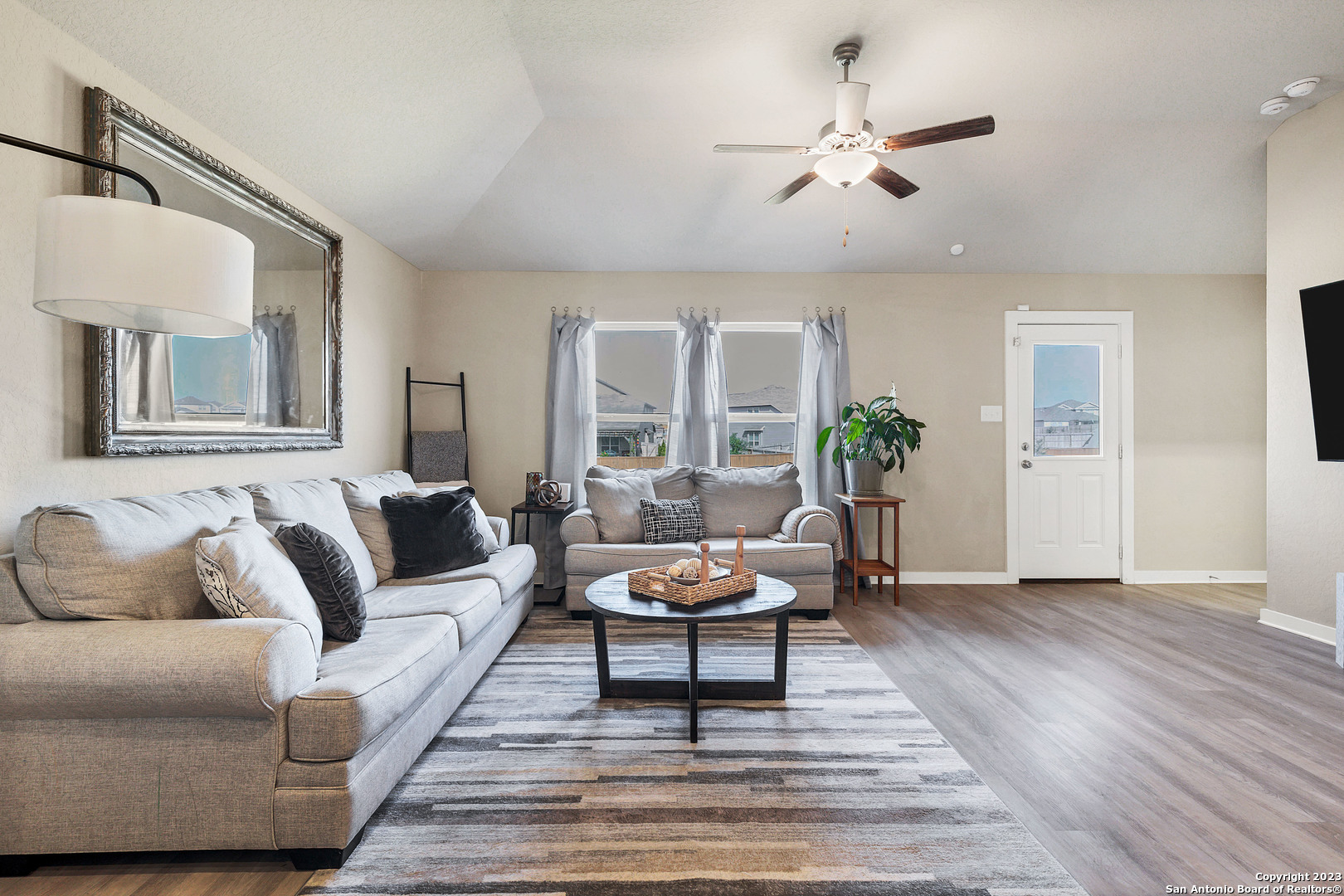 Located just off Loop 1604 and Highway 90, commuting to Randolph Air Force Base or Downtown San Antonio is an absolute breeze! Step inside to find a beautifully upgraded interior, with vinyl plank flooring gracing the common areas, and elegant tray ceilings adding a touch of dramatic flair, perfect for hosting gatherings and creating lasting memories with loved ones. The kitchen is a chef's dream, boasting custom white cabinets, abundant storage space, and gorgeous granite countertops, making meal preparation an absolute joy! Retreat to the serene owner's suite, featuring a spacious walk-in shower and a roomy walk-in closet, providing you with your own private oasis. Outside, the large backyard offers ample space for children and furry friends to frolic and play, ensuring unforgettable moments and endless fun in the sun. With the added advantage of solar panels, enjoy the perks of significantly reduced utility bills, especially during those scorching summer months!