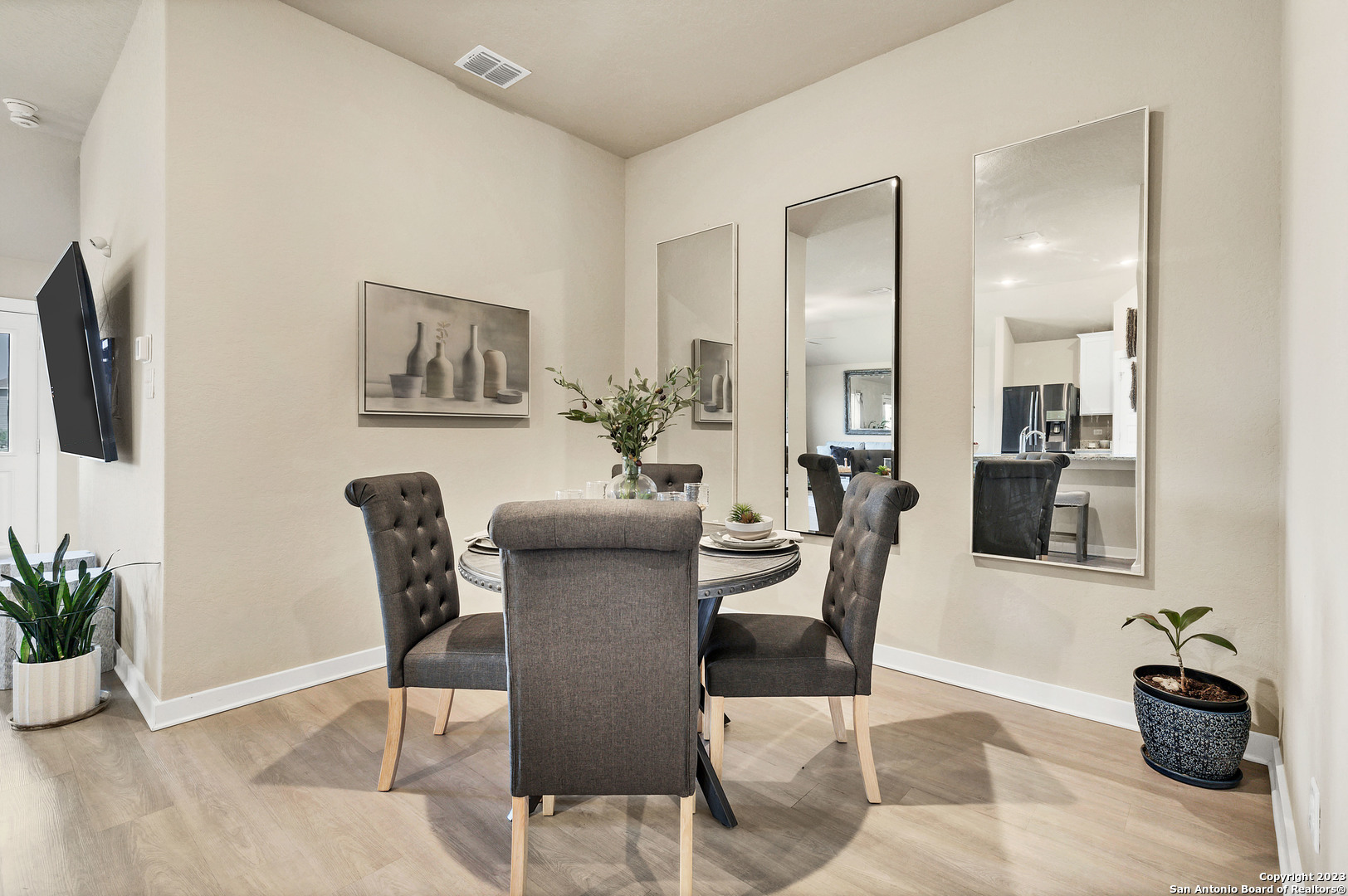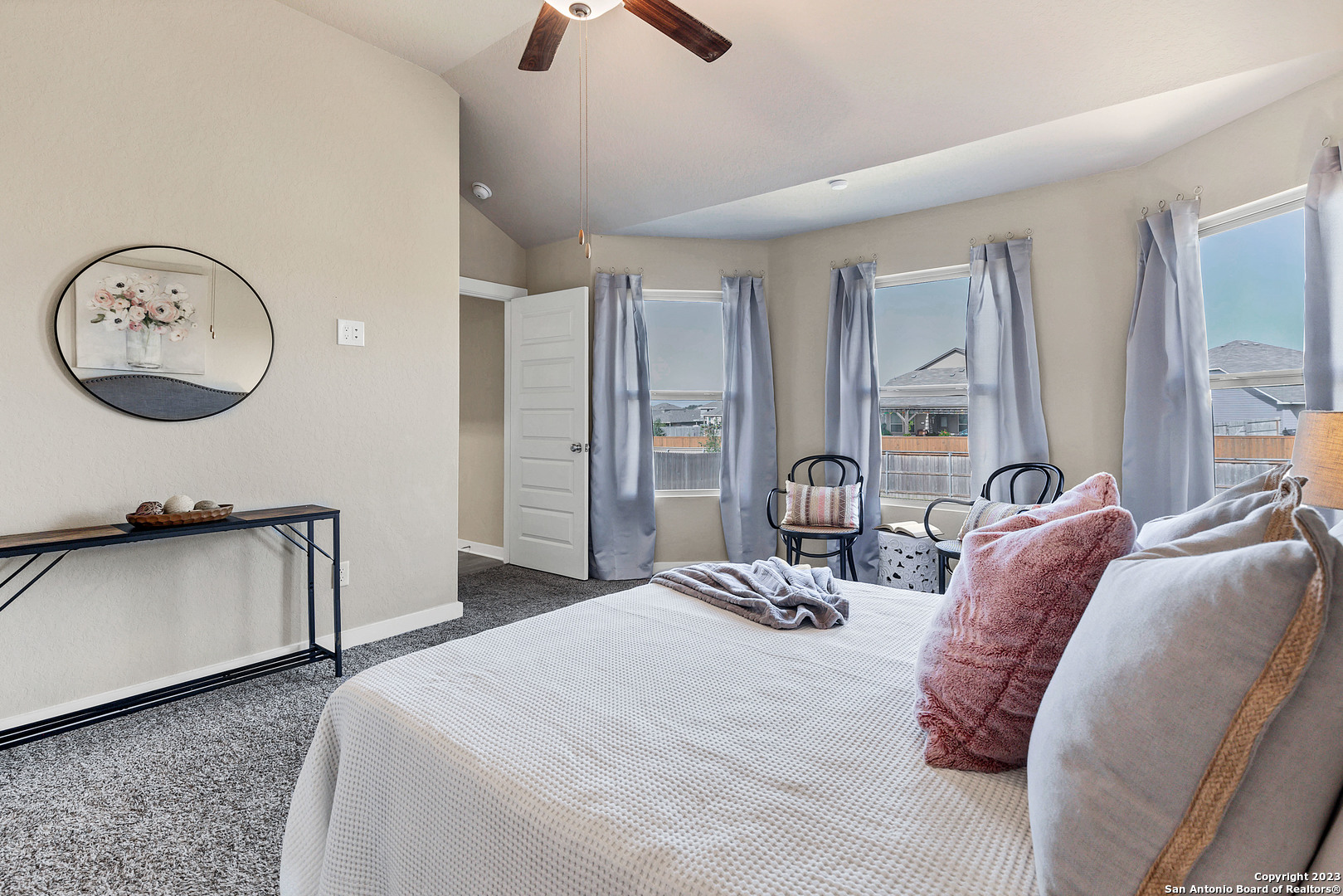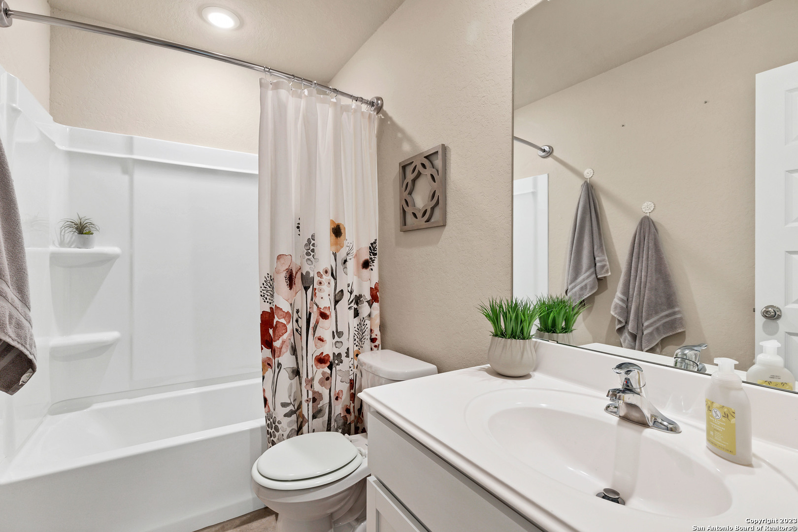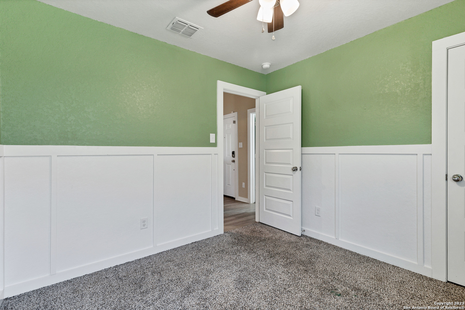 Located just off Loop 1604 and Highway 90, commuting to Randolph Air Force Base or Downtown San Antonio is an absolute breeze! Step inside to find a beautifully upgraded interior, with vinyl plank flooring gracing the common areas, and elegant tray ceilings adding a touch of dramatic flair, perfect for hosting gatherings and creating lasting memories with loved ones. The kitchen is a chef's dream, boasting custom white cabinets, abundant storage space, and gorgeous granite countertops, making meal preparation an absolute joy! Retreat to the serene owner's suite, featuring a spacious walk-in shower and a roomy walk-in closet, providing you with your own private oasis. Outside, the large backyard offers ample space for children and furry friends to frolic and play, ensuring unforgettable moments and endless fun in the sun. With the added advantage of solar panels, enjoy the perks of significantly reduced utility bills, especially during those scorching summer months!