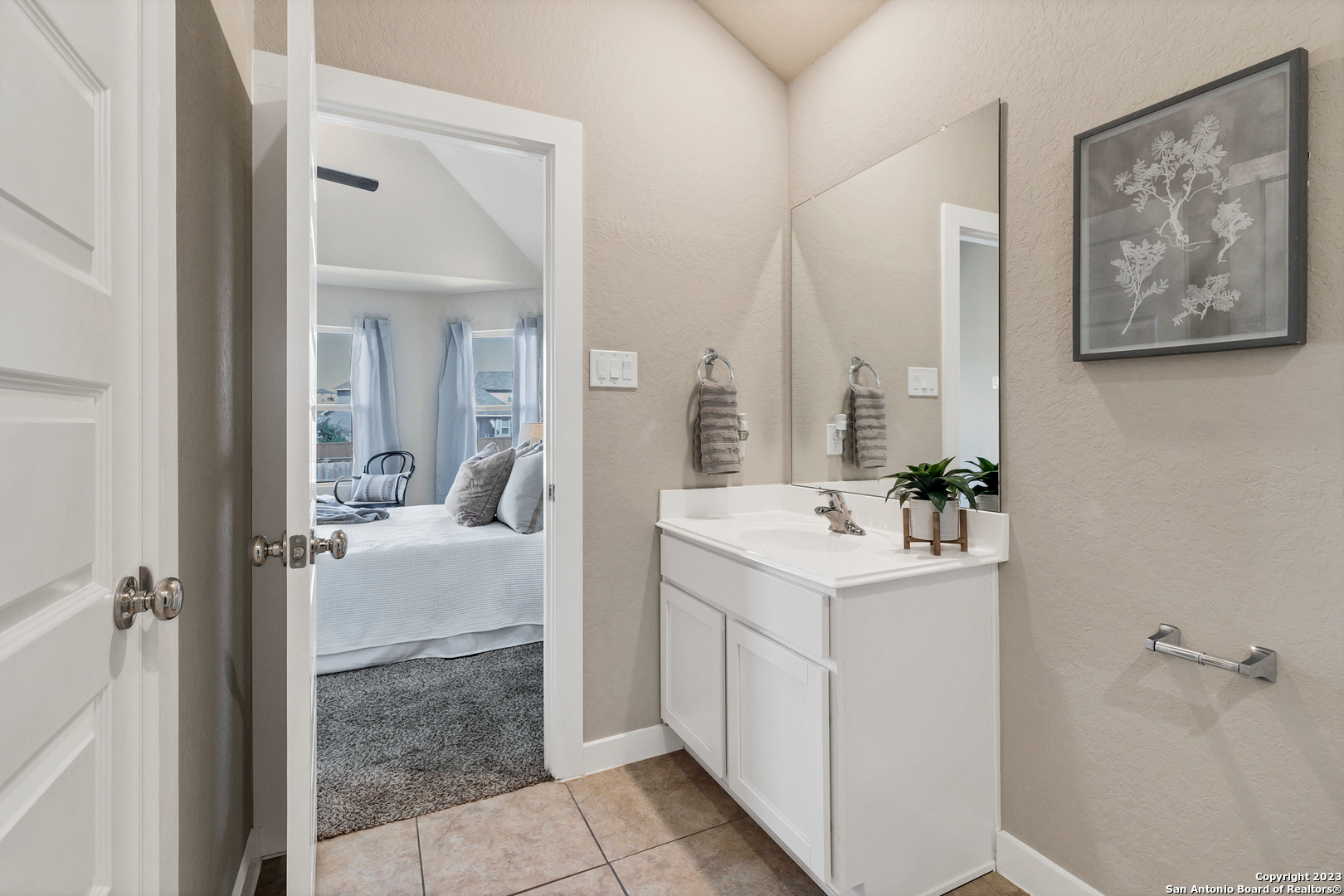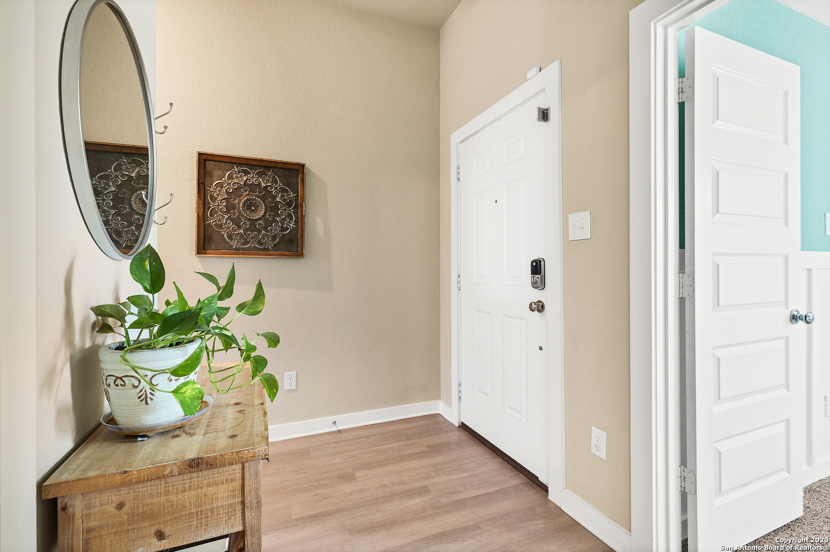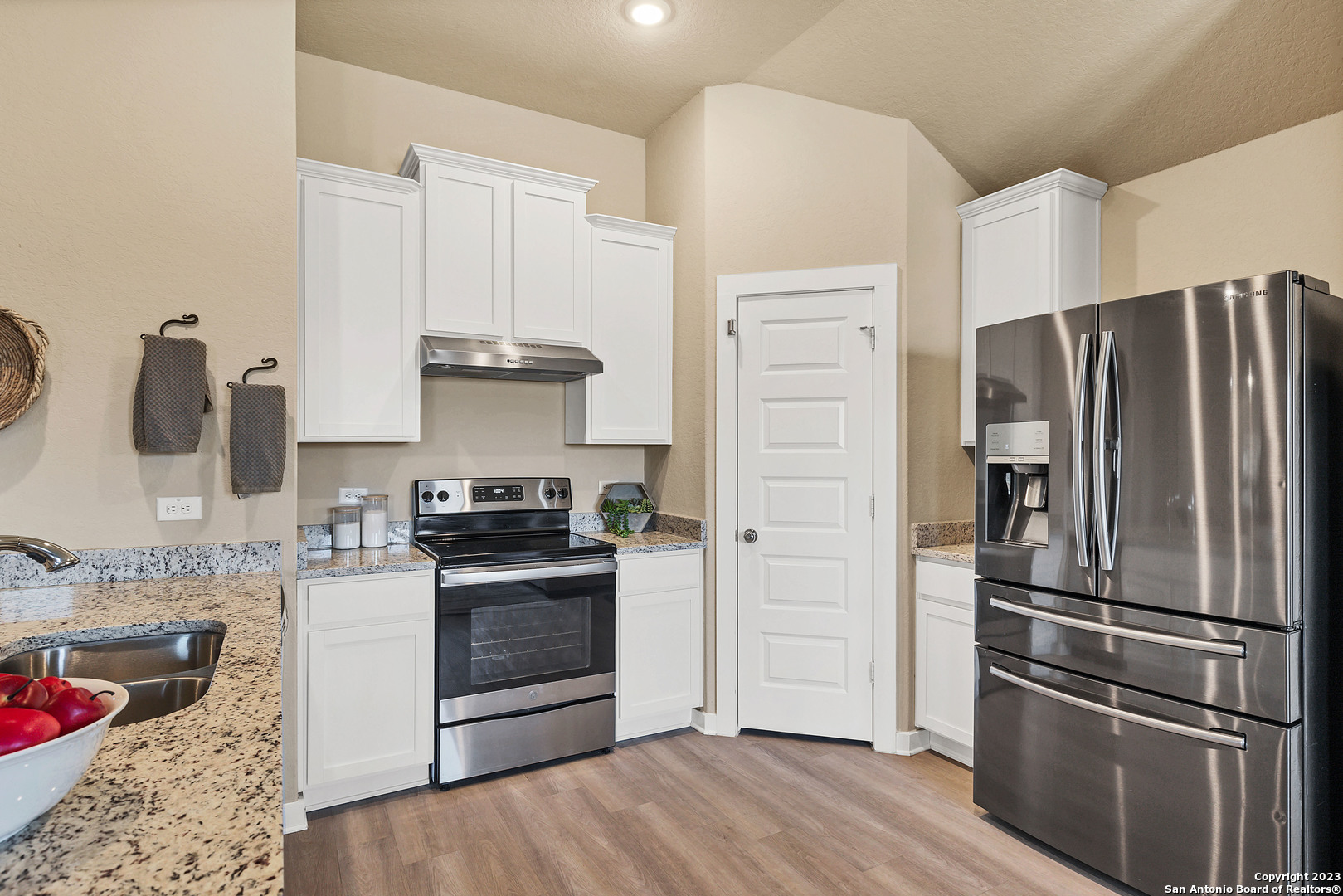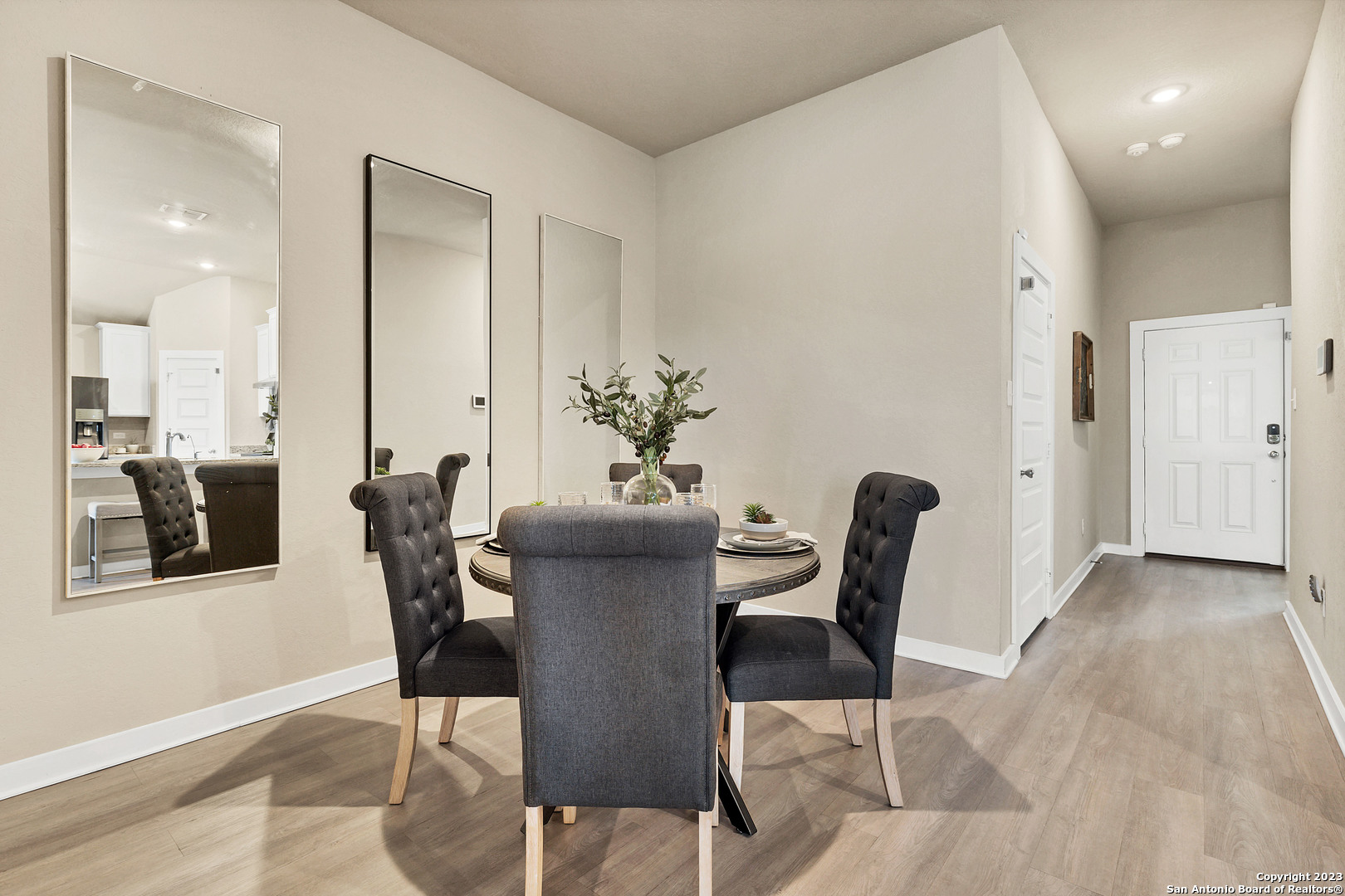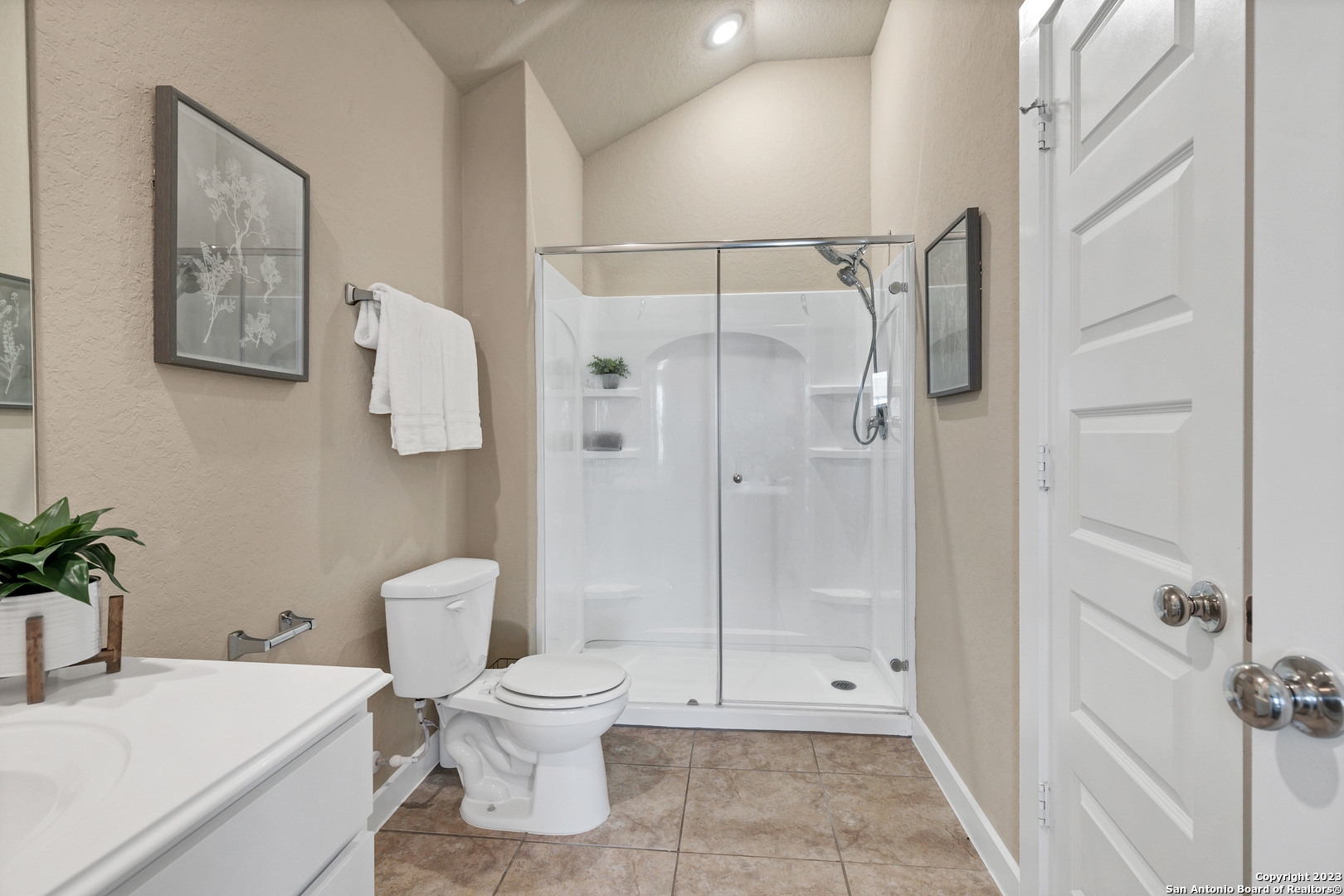 Located just off Loop 1604 and Highway 90, commuting to Randolph Air Force Base or Downtown San Antonio is an absolute breeze! Step inside to find a beautifully upgraded interior, with vinyl plank flooring gracing the common areas, and elegant tray ceilings adding a touch of dramatic flair, perfect for hosting gatherings and creating lasting memories with loved ones. The kitchen is a chef's dream, boasting custom white cabinets, abundant storage space, and gorgeous granite countertops, making meal preparation an absolute joy! Retreat to the serene owner's suite, featuring a spacious walk-in shower and a roomy walk-in closet, providing you with your own private oasis. Outside, the large backyard offers ample space for children and furry friends to frolic and play, ensuring unforgettable moments and endless fun in the sun. With the added advantage of solar panels, enjoy the perks of significantly reduced utility bills, especially during those scorching summer months!