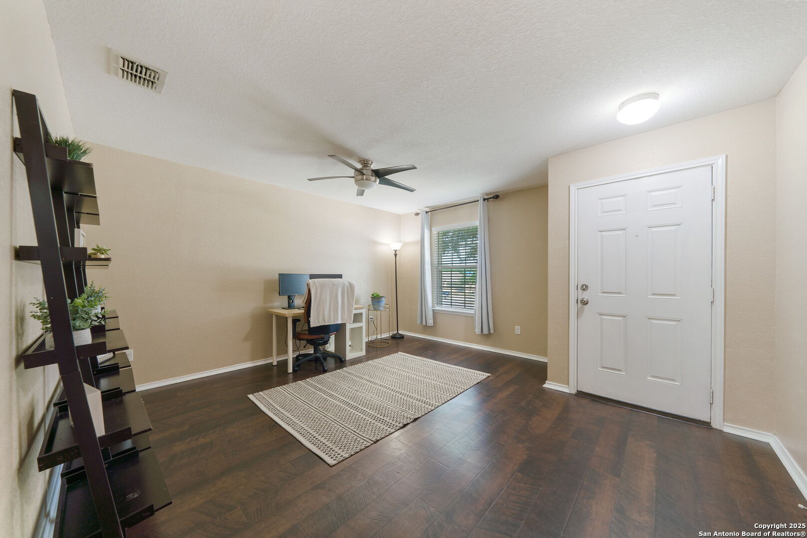 SELLERS ARE MOVING & MOTIVATED - BRING ALL OFFERS! Assumable VA Loan at 3.25! Welcome to 7731 Derby Run-a charming and well-maintained single-story home offering comfort, functionality, and a spacious layout. Sellers are moving and are motivated - bring all offers! Inside, you're greeted by rich wood-look flooring, a versatile front room that can serve as an office, playroom, or second living area, and an open-concept design that makes everyday living easy. The kitchen features warm cabinetry, neutral tile backsplash, ample counter space, and opens to both the dining area and living room-perfect for hosting or gathering with loved ones. The main living room is generously sized and connects seamlessly to the rest of the home. The primary suite is located just off the living room and offers a cozy retreat with a tray ceiling, spacious ensuite bath with dual sinks, separate shower and soaking tub, and a large 12x6 walk-in closet. Secondary bedrooms are well-sized with neutral finishes and offer flexibility for guests, kids, or hobbies. Out back, enjoy a covered patio and an oversized backyard with endless potential-plenty of room to play, entertain, or plant your dream garden. (Please note: grass has been digitally enhanced in photos to showcase its full potential.) Situated in an established neighborhood with easy access to schools, parks, shopping, and major roadways, this home is move-in ready and waiting for its next chapter.