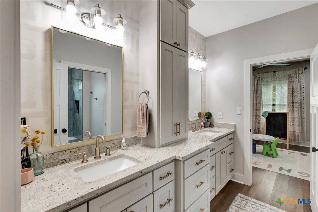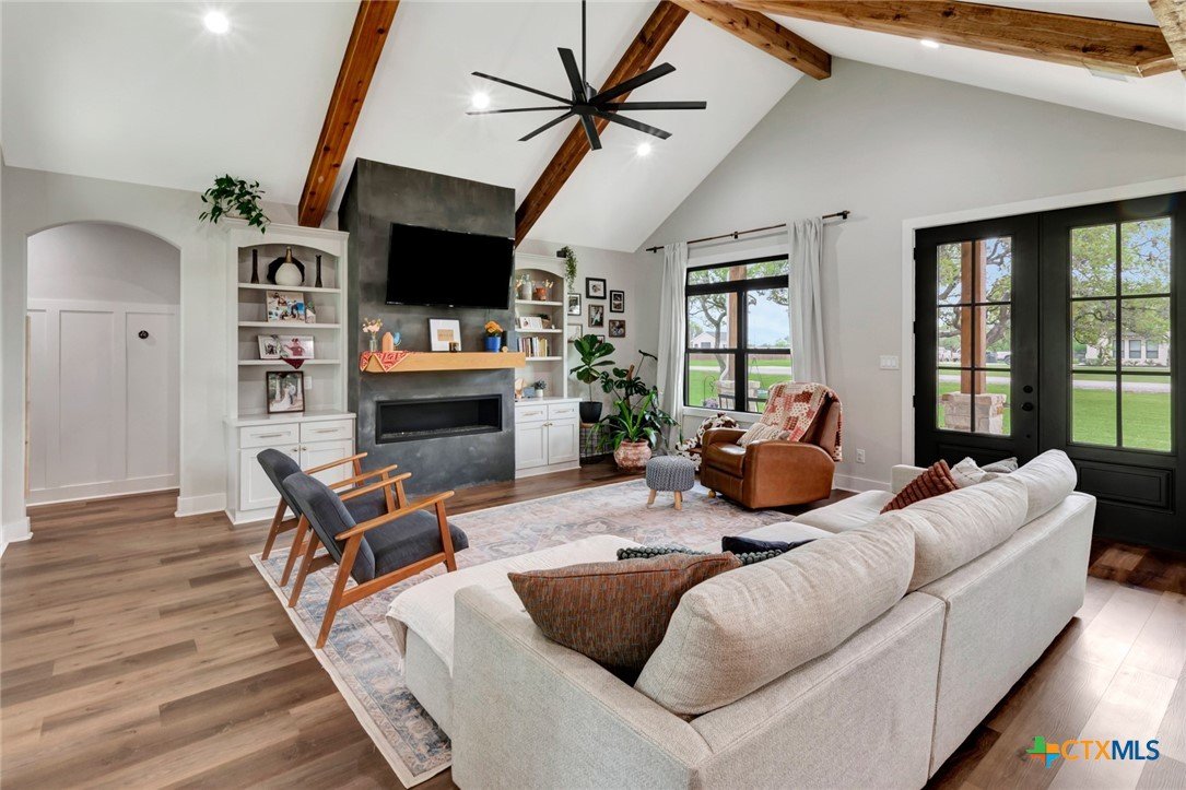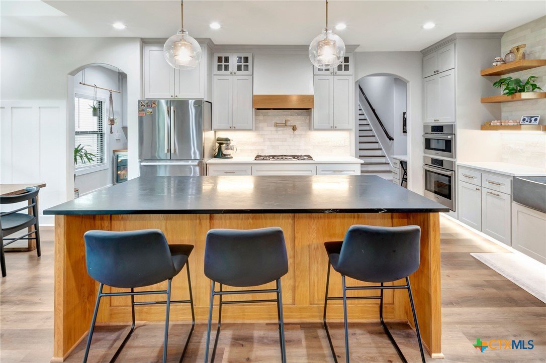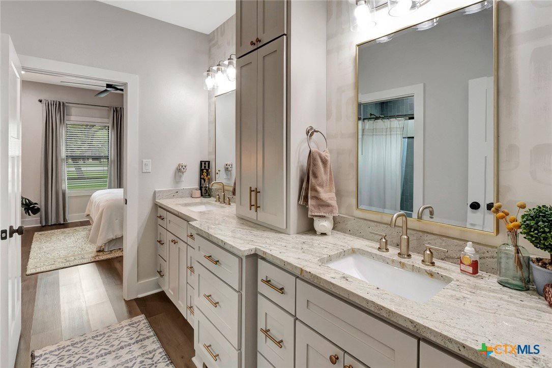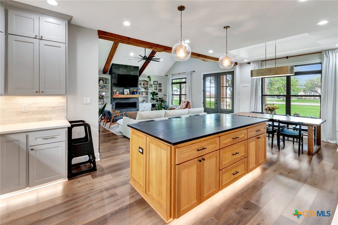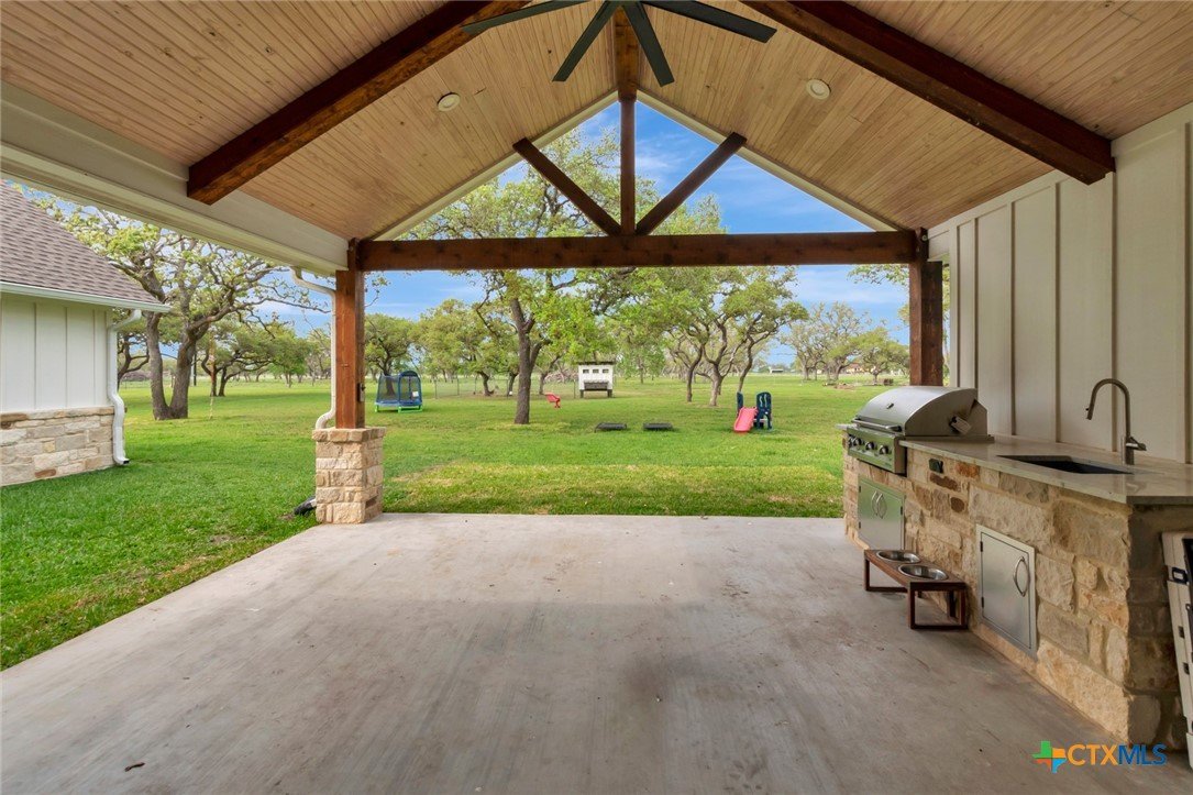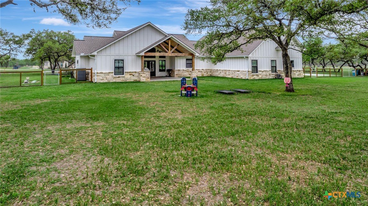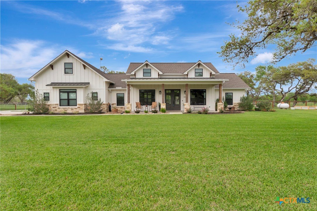 Welcome to 78 Battle Drive! This award-winning custom built home is now available, located in the Sol Park Estates in Fannin, Texas. Sitting on 2.34 acres, this beautifully designed home offers 2,567 square feet of exceptional craftsmanship and high-end finishes. It features 4 bedrooms, 3.5 bathrooms, and a striking exterior with custom-cut limestone and cedar beams. The living area offers a fireplace, built-in bookshelves, and an open concept. The kitchen is equipped with premium appliances, a butler’s pantry, and elegant black soapstone and Quartz Onyx white countertops. The bathrooms showcase marble and granite finishes. Two of the bedrooms are connected with a jack and jill bathroom as well. This home also features an upstairs bedroom with a full bathroom, perfect for an additional suite or office! The backyard includes a back patio, outdoor kitchen, and a fenced in area that provides the perfect space for entertaining or relaxing. Schedule a showing today to experience all that this stunning home has to offer!