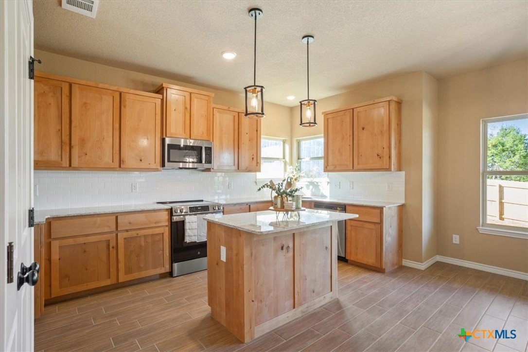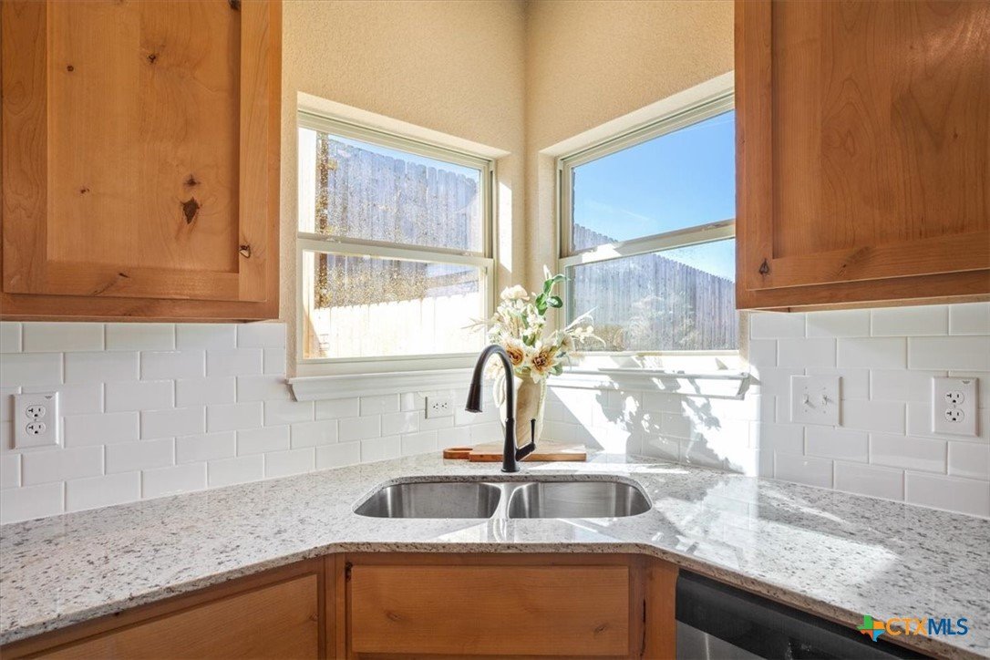 Welcome to the coveted Heritage Oaks neighborhood in Killeen! Lagan Construction, Inc has just completed this GORGEOUS new build located at the very end of Platinum Drive. In this back west corner of the neighborhood you will experience seclusion, the birds chirping, and close proximity to Trimmier Creek. No other home in the subdivision has these green, nature views from their lot. Extra privacy and NO SIDE OR BACK neighbors! This home offers your family 3 beds/ 2 baths plus a study. Tile flooring in main areas and carpet in the bedrooms. Granite countertops, custom cabinets, luxury archways in main areas and so much more. The primary suite includes a grand double-tray ceiling, a large walk-in closet, separate shower and soaking tub and double vanity. The yard comes with full irrigation system and sod in front and back. Enjoy your covered back porch with your coffee while listening to the closeby sounds of nature. Snag this GREAT spot for your family and kick off the 2026 spring and summer season in this gorgeous new home! Home also comes with a solid builder's warranty package! Buyer and buyer's agent to verify all details. Information deemed reliable but not guaranteed.