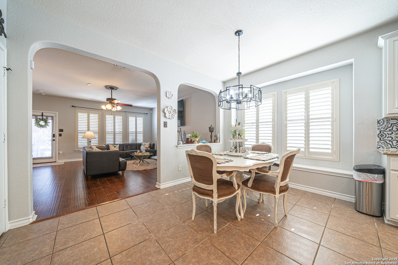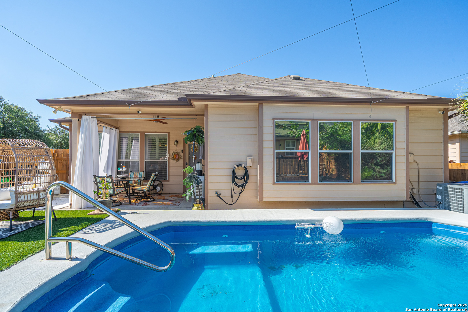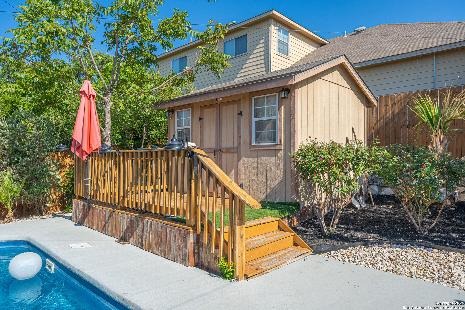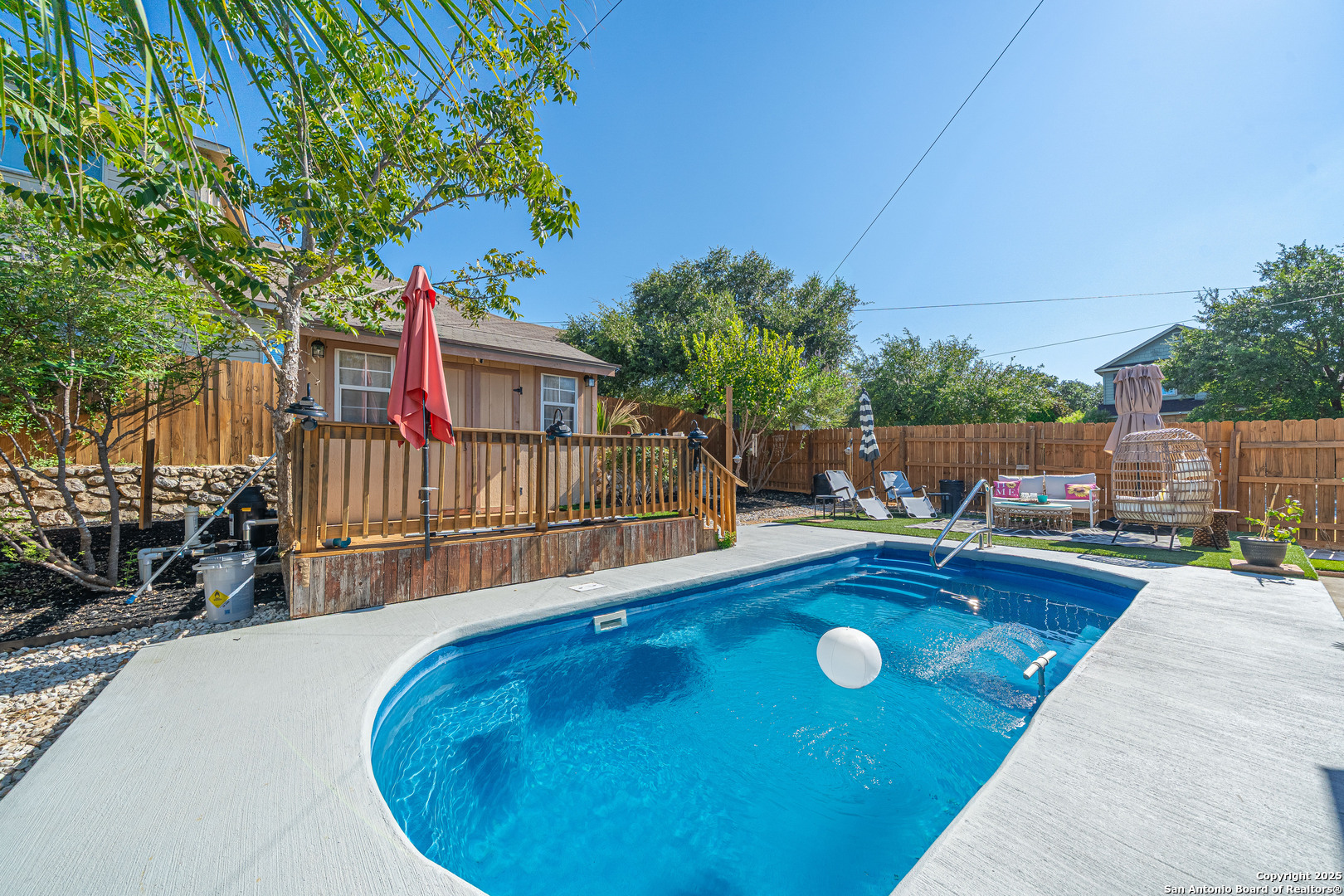 Nestled in a peaceful, family-friendly neighborhood, this hidden gem offers the perfect blend of comfort and convenience. Situated just moments from Brandeis High School, UTSA, the Medical Center, La Cantera, and HEB, this home is ideally located with easy access to 1604 & I10. Whether you're commuting or exploring the local attractions, you're never far from what matters most. Step inside this spacious home, designed for both relaxation and entertainment. The open-concept floor plan effortlessly flows from room to room, showcasing a large, inviting eat-in kitchen complete with gorgeous granite countertops, pristine white cabinetry, and an abundance of natural light. You'll appreciate the thoughtful touches throughout, from the recessed ceilings to the stylish ceramic tile flooring - NO carpet here for easy maintenance and lasting beauty. Every inch of this home has been thoughtfully updated to provide modern comforts and timeless style. The professionally landscaped backyard is your private sanctuary, featuring a covered patio perfect for outdoor dining, entertaining, or simply enjoying your morning coffee. The new pool is the ideal spot for unwinding on those warm summer nights, while the air-conditioned storage shed ensures that all your tools and supplies are organized and easily accessible. This home is more than just a place to live; it's a place to thrive. With its unbeatable location, modern updates, and resort-style outdoor space, it's the perfect place to create lasting memories. Welcome home!