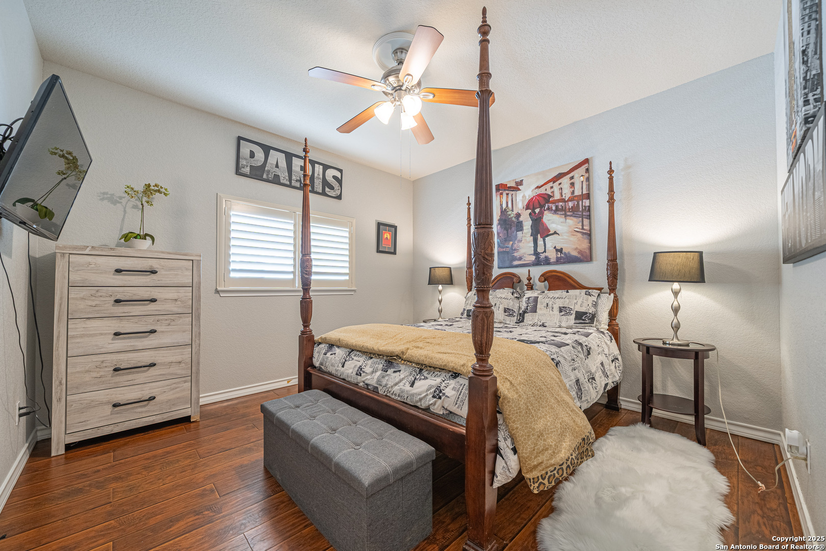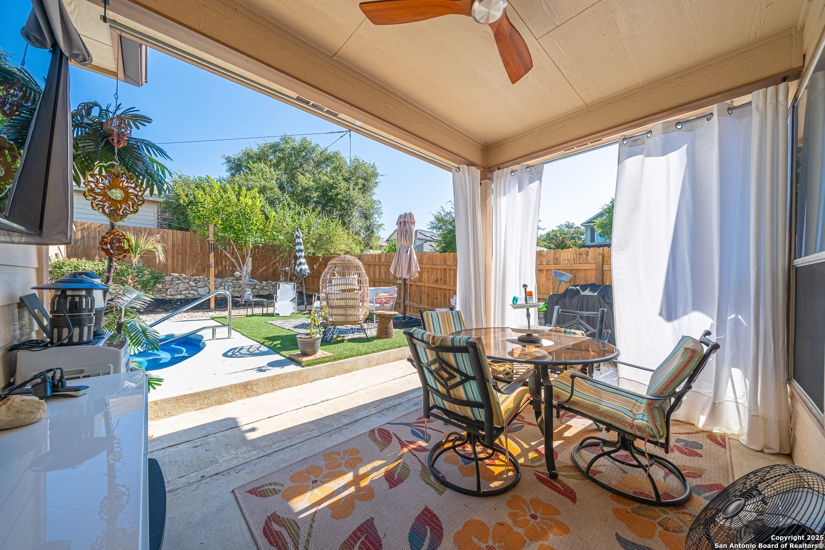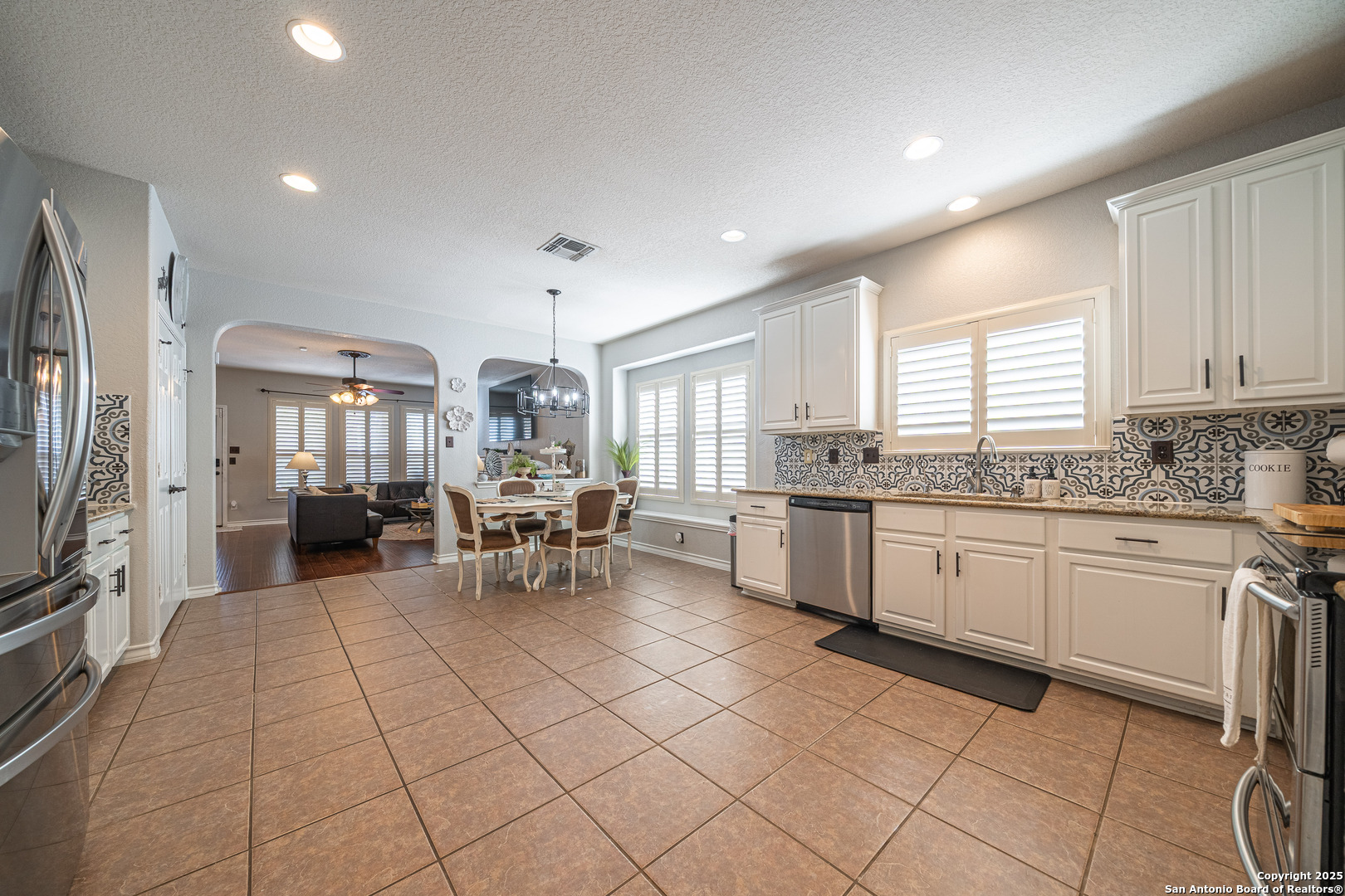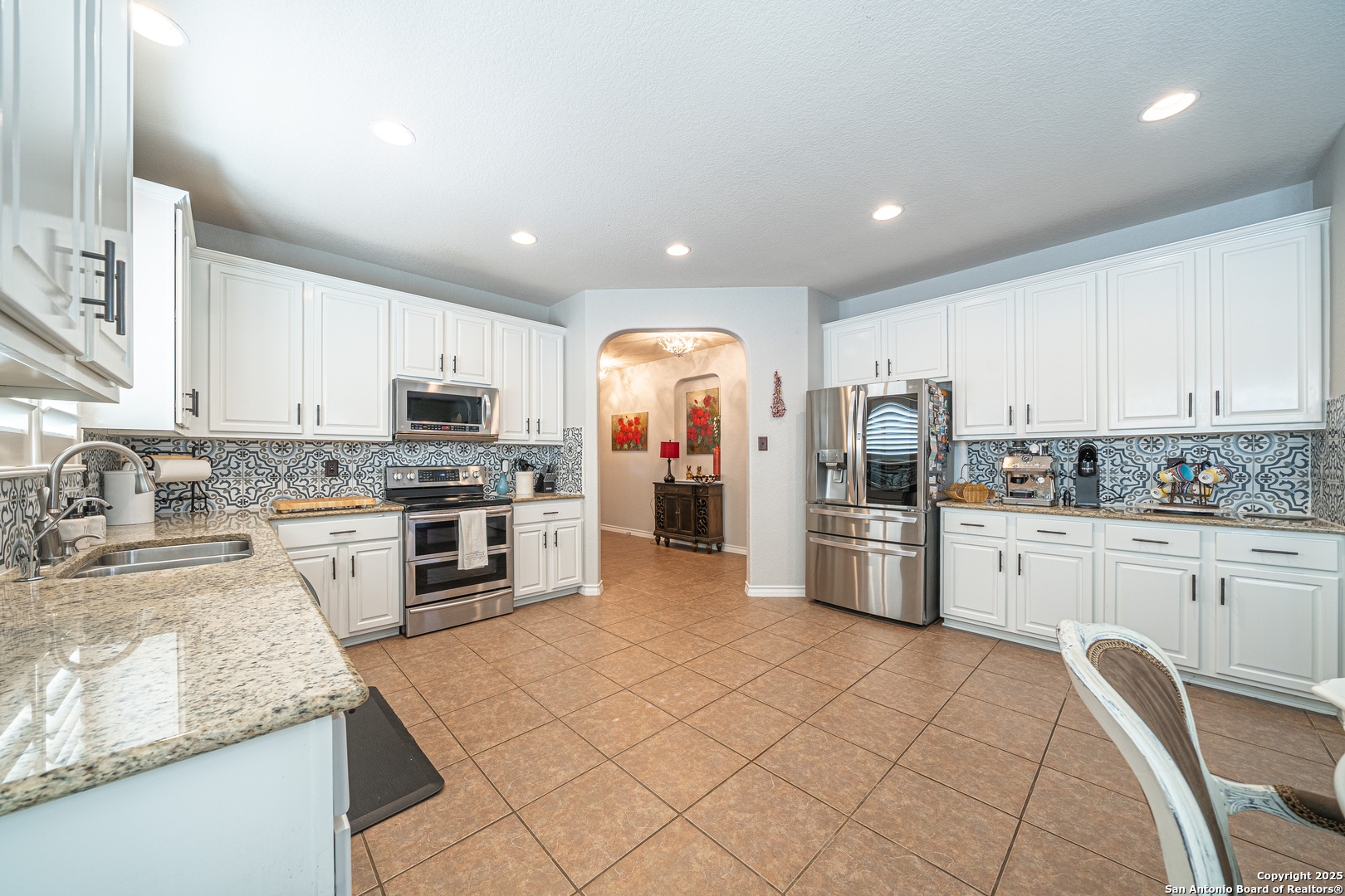 Nestled in a peaceful, family-friendly neighborhood, this hidden gem offers the perfect blend of comfort and convenience. Situated just moments from Brandeis High School, UTSA, the Medical Center, La Cantera, and HEB, this home is ideally located with easy access to 1604 & I10. Whether you're commuting or exploring the local attractions, you're never far from what matters most. Step inside this spacious home, designed for both relaxation and entertainment. The open-concept floor plan effortlessly flows from room to room, showcasing a large, inviting eat-in kitchen complete with gorgeous granite countertops, pristine white cabinetry, and an abundance of natural light. You'll appreciate the thoughtful touches throughout, from the recessed ceilings to the stylish ceramic tile flooring - NO carpet here for easy maintenance and lasting beauty. Every inch of this home has been thoughtfully updated to provide modern comforts and timeless style. The professionally landscaped backyard is your private sanctuary, featuring a covered patio perfect for outdoor dining, entertaining, or simply enjoying your morning coffee. The new pool is the ideal spot for unwinding on those warm summer nights, while the air-conditioned storage shed ensures that all your tools and supplies are organized and easily accessible. This home is more than just a place to live; it's a place to thrive. With its unbeatable location, modern updates, and resort-style outdoor space, it's the perfect place to create lasting memories. Welcome home!