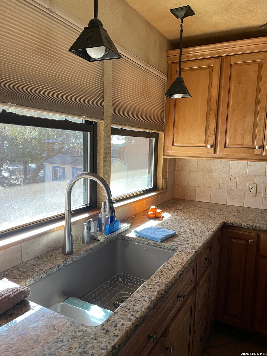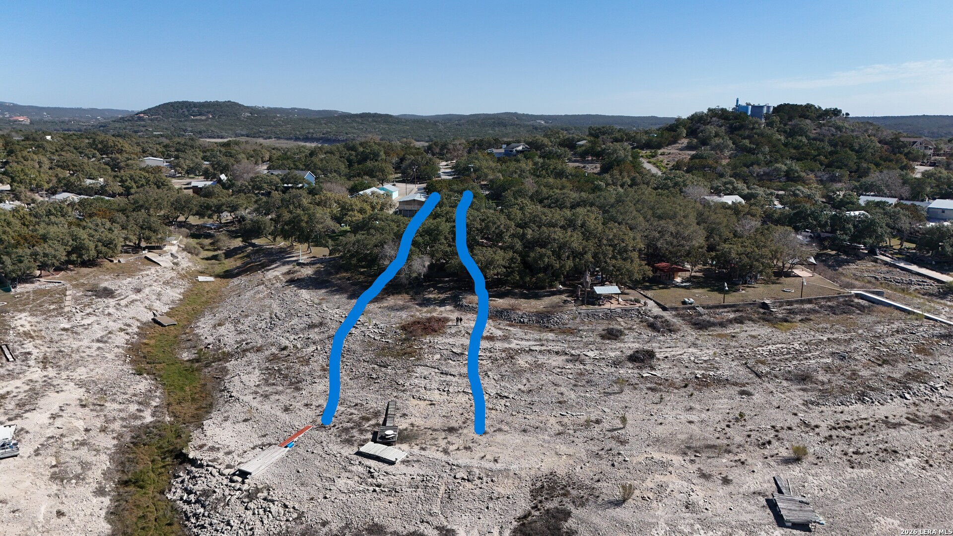This pie shaped waterfront lot is loaded with beautiful mature oak trees which provide a pleasant canopy of cover. 2 story home offers private guest space downstairs with the main living area upstairs providing beautiful lake and countryside views. The kitchen has granite countertops and custom cabinets with drawers designed with the gourmet chef in-mind. Moveable island with storage gives flexibilty for additional countertop space. There are two bedrooms upstairs and 2 bedrooms downstairs. A full bathroom on each level. Large covered patio enhances the outdoor living spaces among the graceful oak trees at the waters edge (when lake levels are high- currently LOW). New low E high efficiency windows installed in 2022 throughout the home. Both HVAC units new in 2024! Easy commute to San Antonio, Boerne, Bandera and Kerrville.