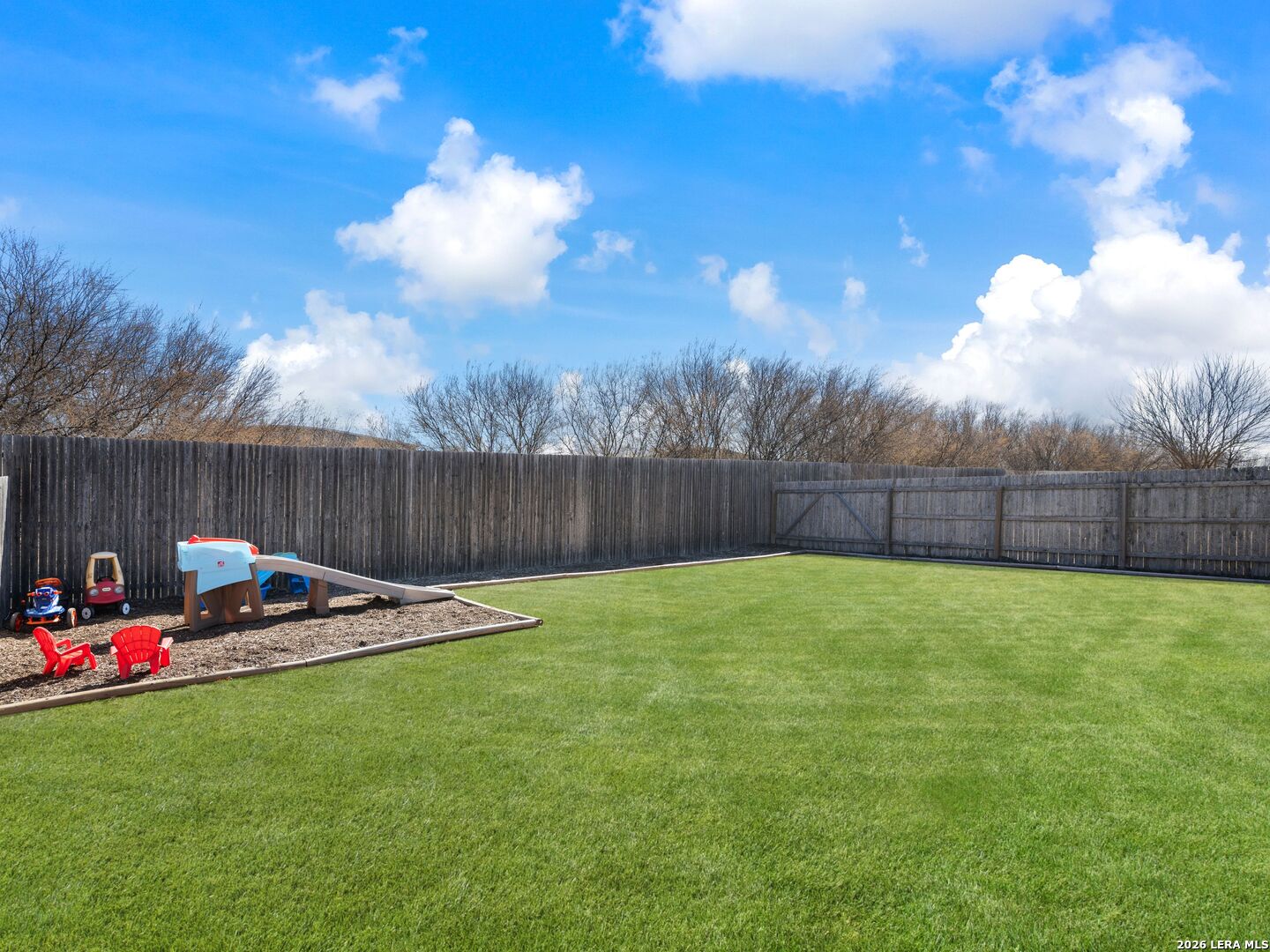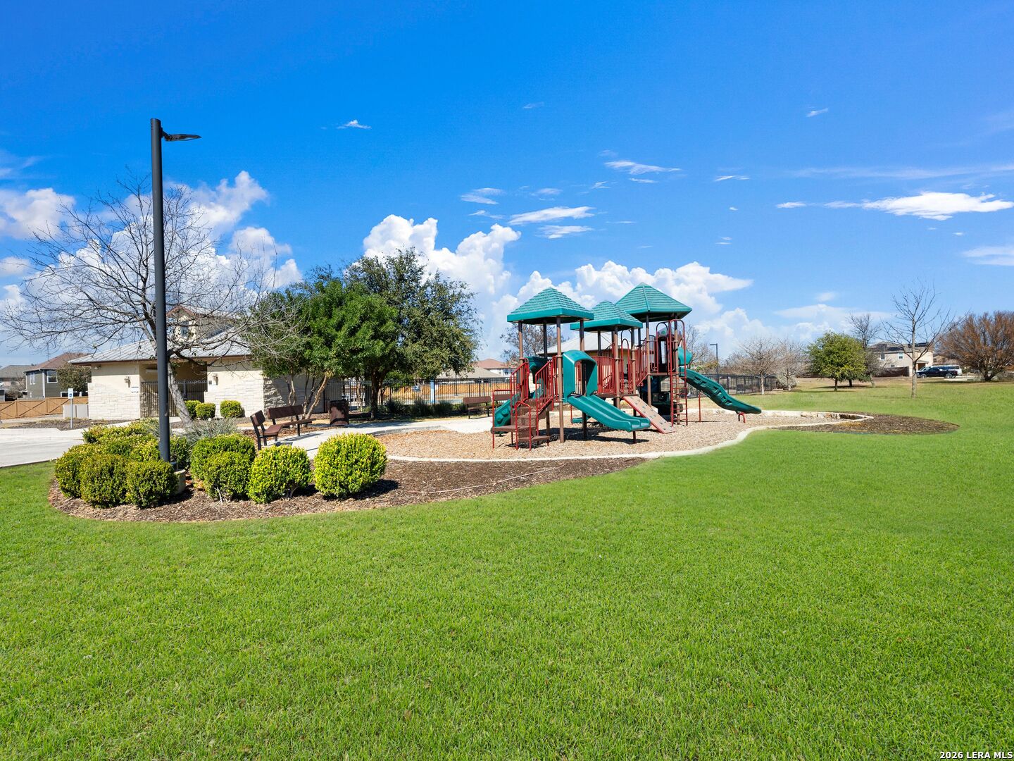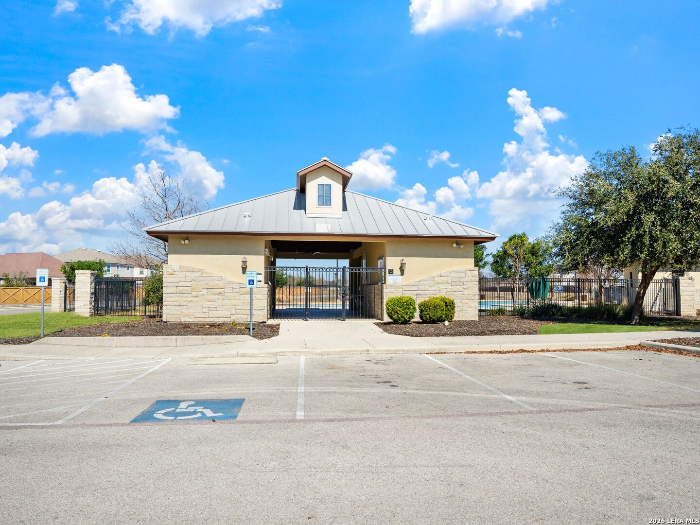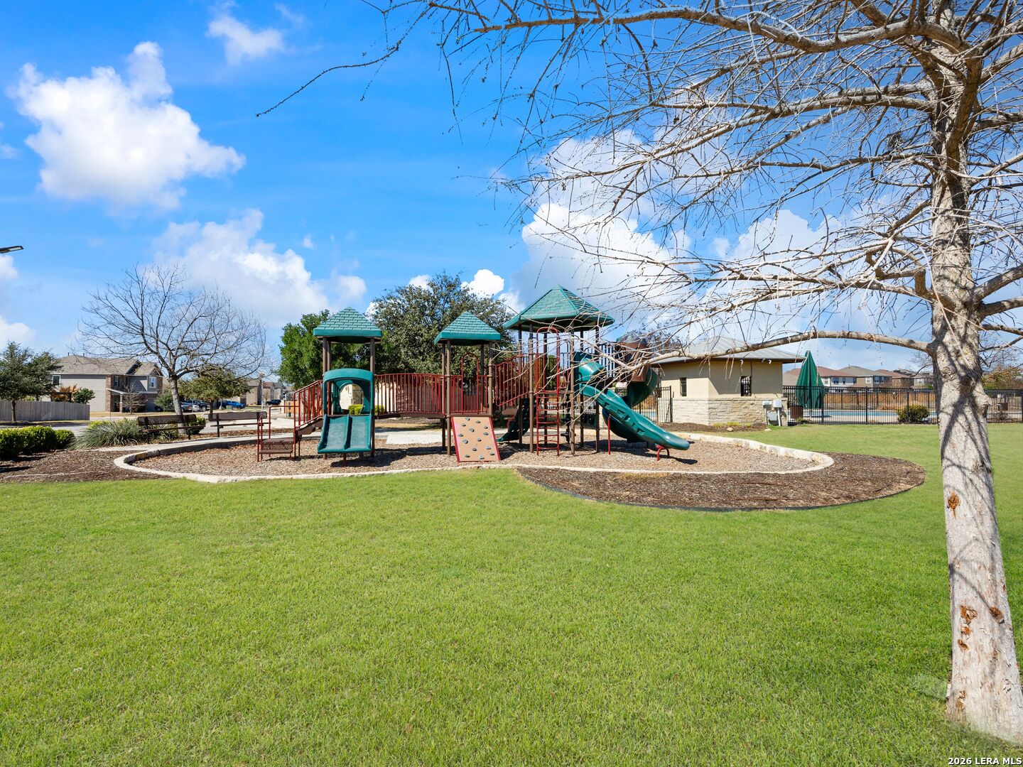 Located in the highly sought-after Falcon Landing community, this beautifully maintained home offers comfort, functionality, and smart upgrades throughout. Major improvements include a new roof (July 2025), paid-off solar panels, and a recently upgraded kitchen featuring quartz countertops, designer backsplash, new sink and faucet, and updated cabinet hardware. Inside, you'll find NO CARPET, a dedicated office, formal dining, breakfast area, and an open-concept kitchen and living space that serves as the heart of the home. Upstairs features a spacious second living area ideal for a game room, media room, or flex space. Step outside to the full-length custom upgraded covered patio with three ceiling fans, overlooking a large fenced yard with no backyard neighbors-perfect for relaxing or entertaining. Additional upgrades include a water softener and REME HALO-LED whole-home air purification system. Washer, dryer, and kitchen refrigerator convey. Conveniently located near Lackland AFB, SeaWorld, shopping, parks, and major thoroughfares.