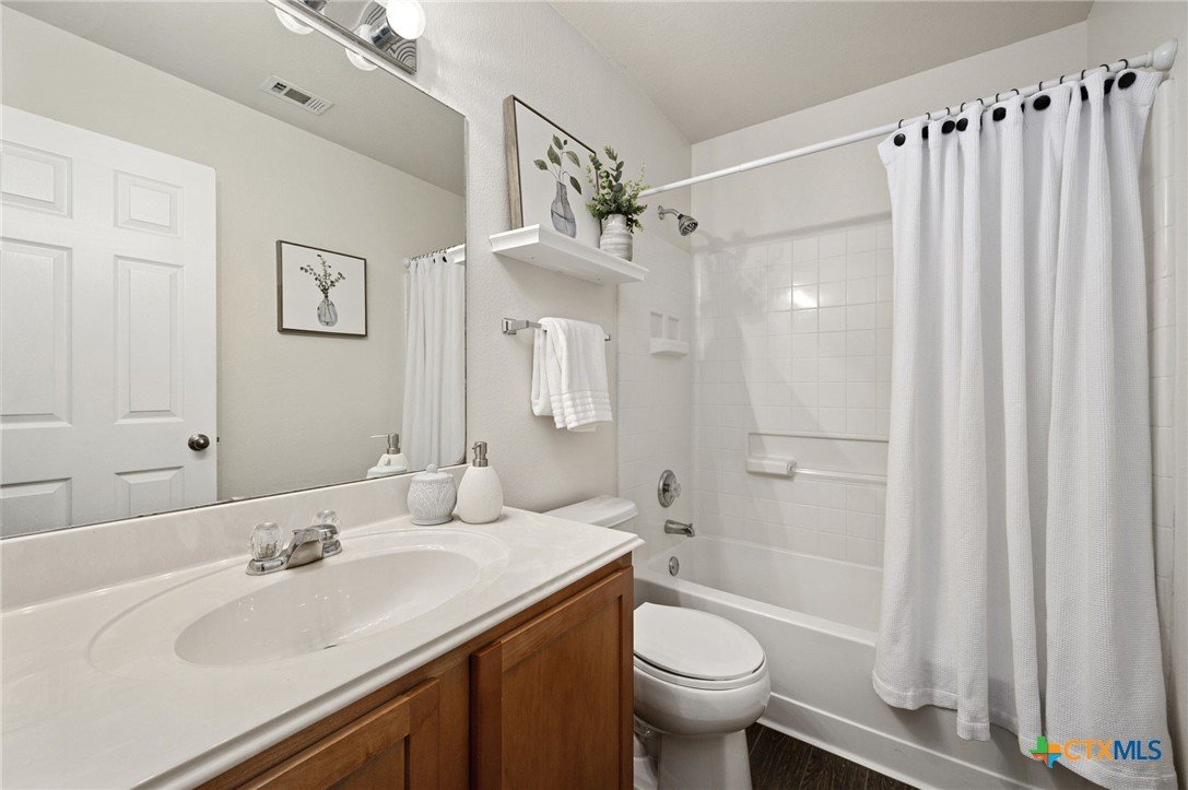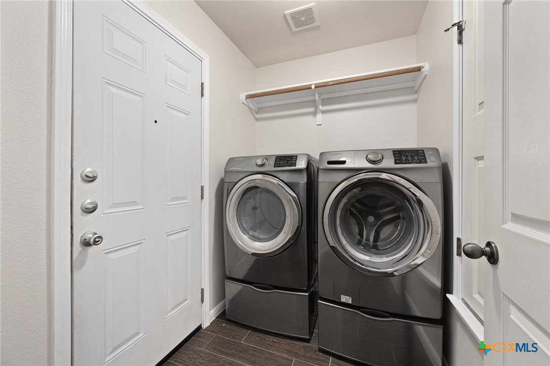 Welcome home to this charming 3-bedroom, 2-bath Taylor Morrison-built home filled with thoughtful upgrades and inviting spaces. From the moment you step onto the large front porch, you’ll feel the comfort this home has to offer. Inside, the open kitchen with granite counters flows into bright living spaces with wood-look tile, fresh paint, and new carpet—perfect for gatherings or quiet evenings in. Enjoy outdoor living on the spacious covered patio or take advantage of the community pool just around the corner. A replaced roof, air handler, hot water heater, fencing, dishwasher, installed sprinkler system, and the included washer, dryer, and refrigerator make this home well-maintained and truly move-in ready. Located minutes from IH-35, Costco, shopping, downtown Georgetown, and near Berry Creek Golf Course, this home offers both convenience and lifestyle in one perfect package.