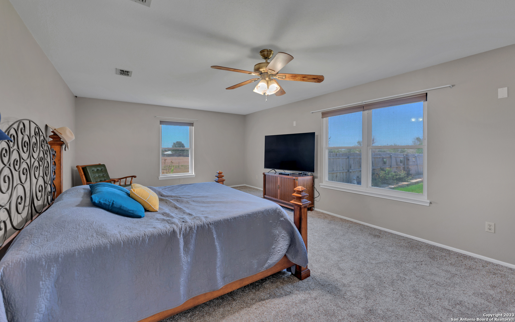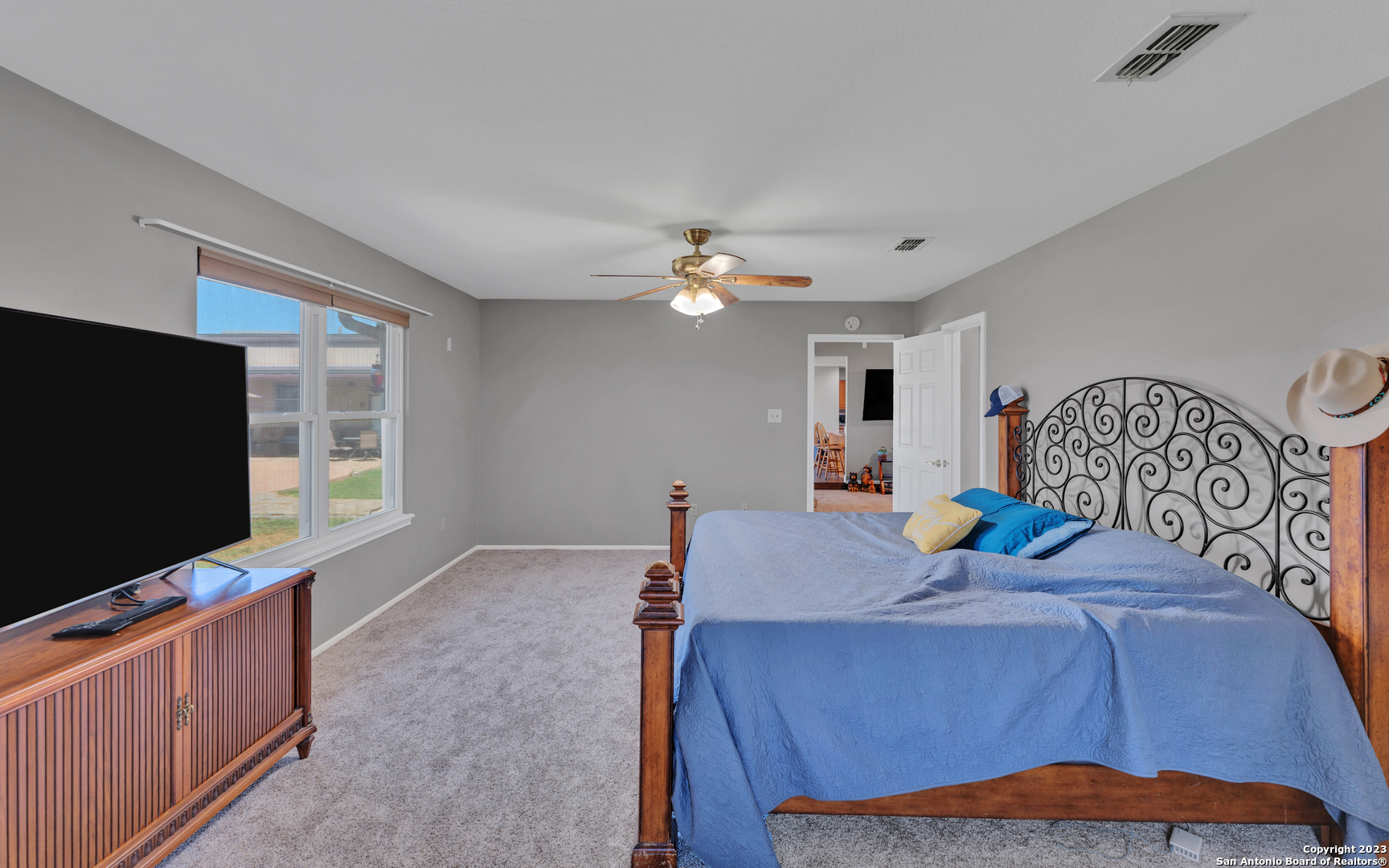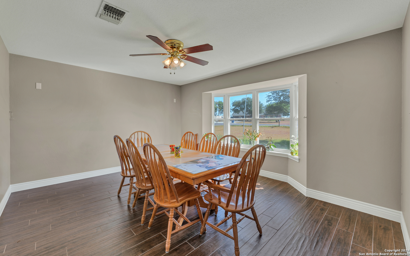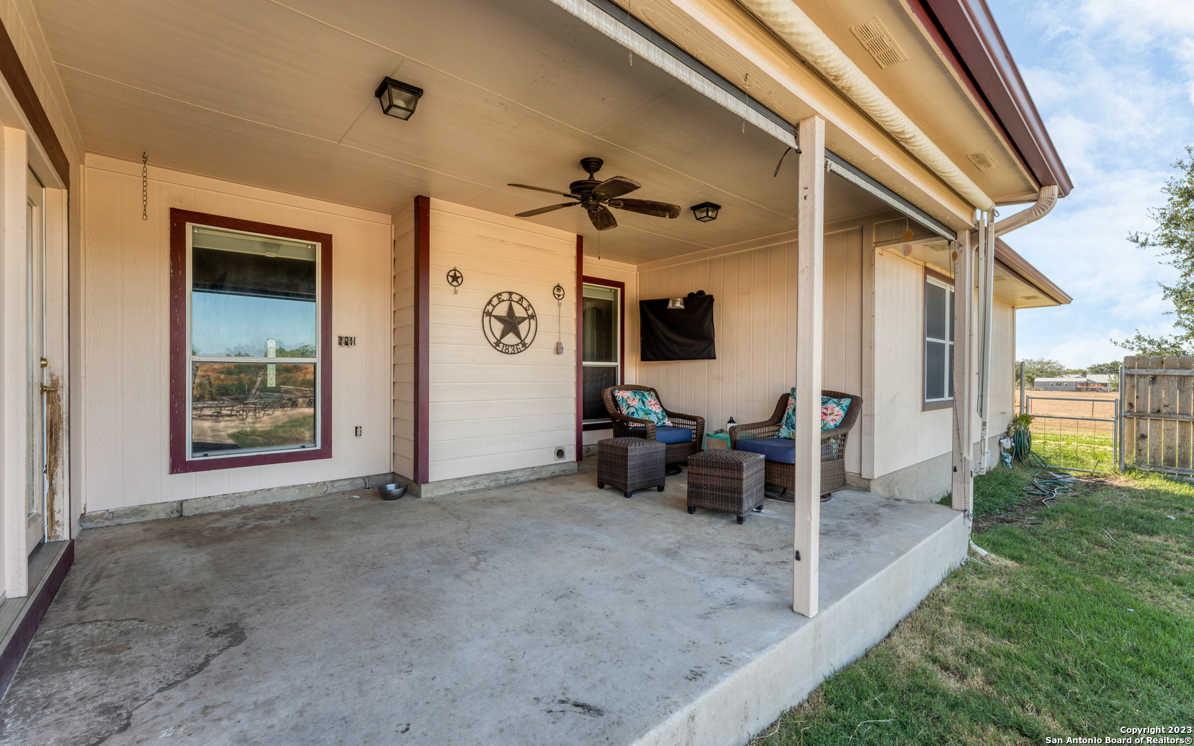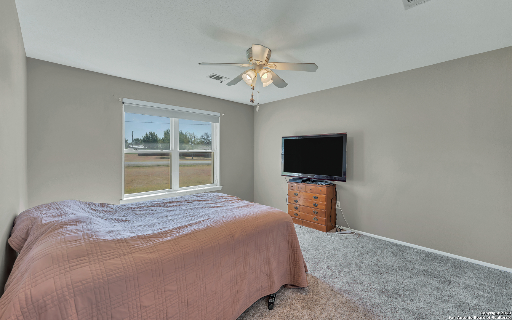 One story, ranch style home on a corner lot with custom pool, spa, waterfall and bonus workshop. Conveniently positioned on Santa Clara Loop with easy access to local amenities. Beautiful, all side brick home with recently installed HVAC, carpet, double pane windows & neutral interior paint. Enter the foyer which opens to the living room. Private formal dining room and breakfast nook located in the eat in kitchen. Kitchen equipped with pantry, breakfast bar and gas stove and range. Split 3 bedrooms, 2.5 baths with walk in closets. Spacious master suite with double vanity, sitting nook, spa garden tub, walk-in shower & large closets. Masonry, wood burning fireplace in family room. 2 car attached garage. Laundry/mudroom, linen closets and solar panels. 50x30 Metal shop with bonus workshop, on slab with electric and roll up doors. Privacy fencing for animals & flagpole in the front yard.