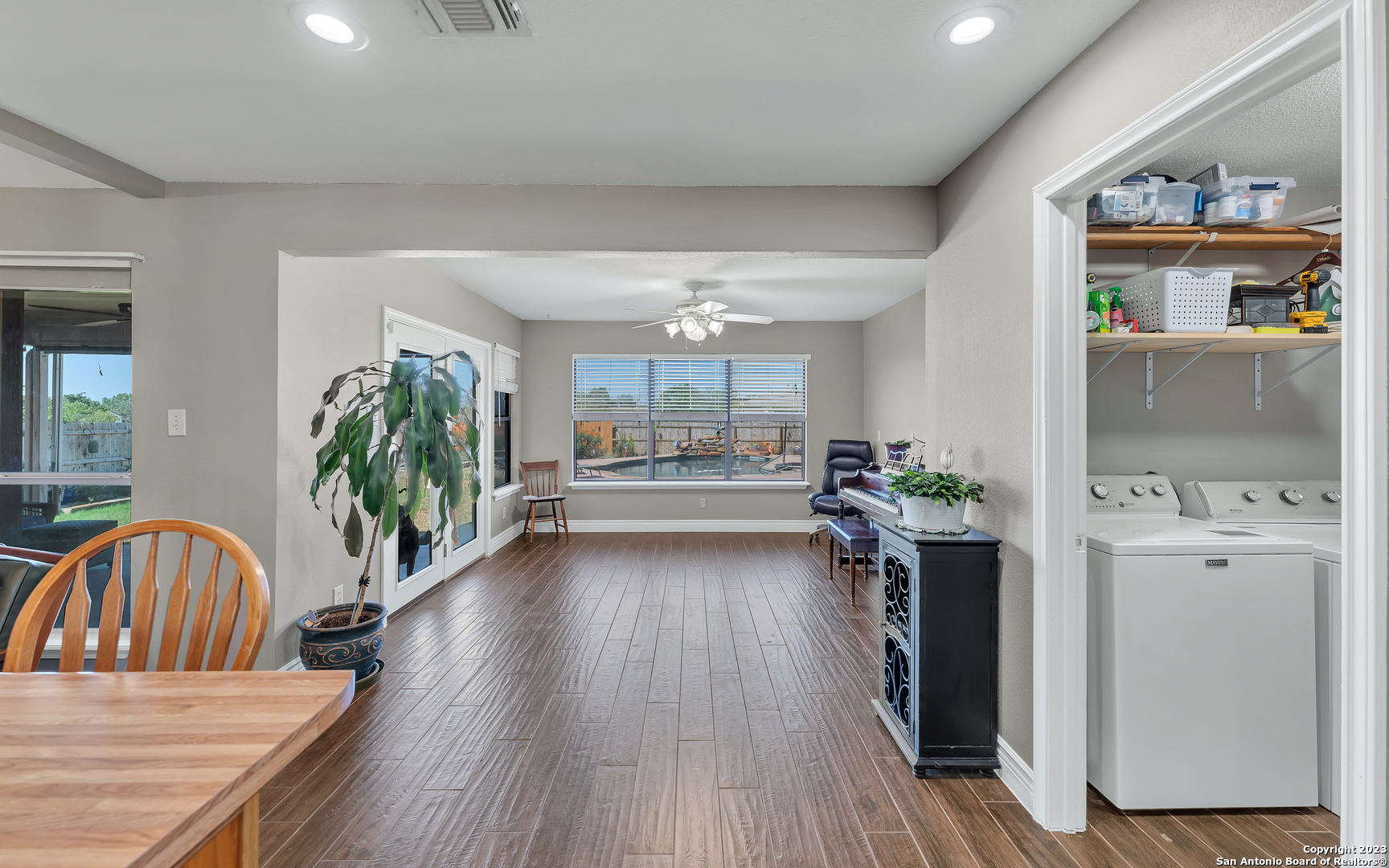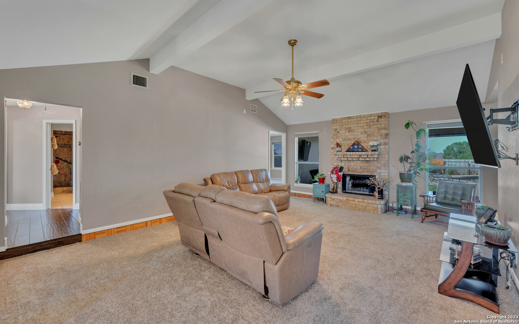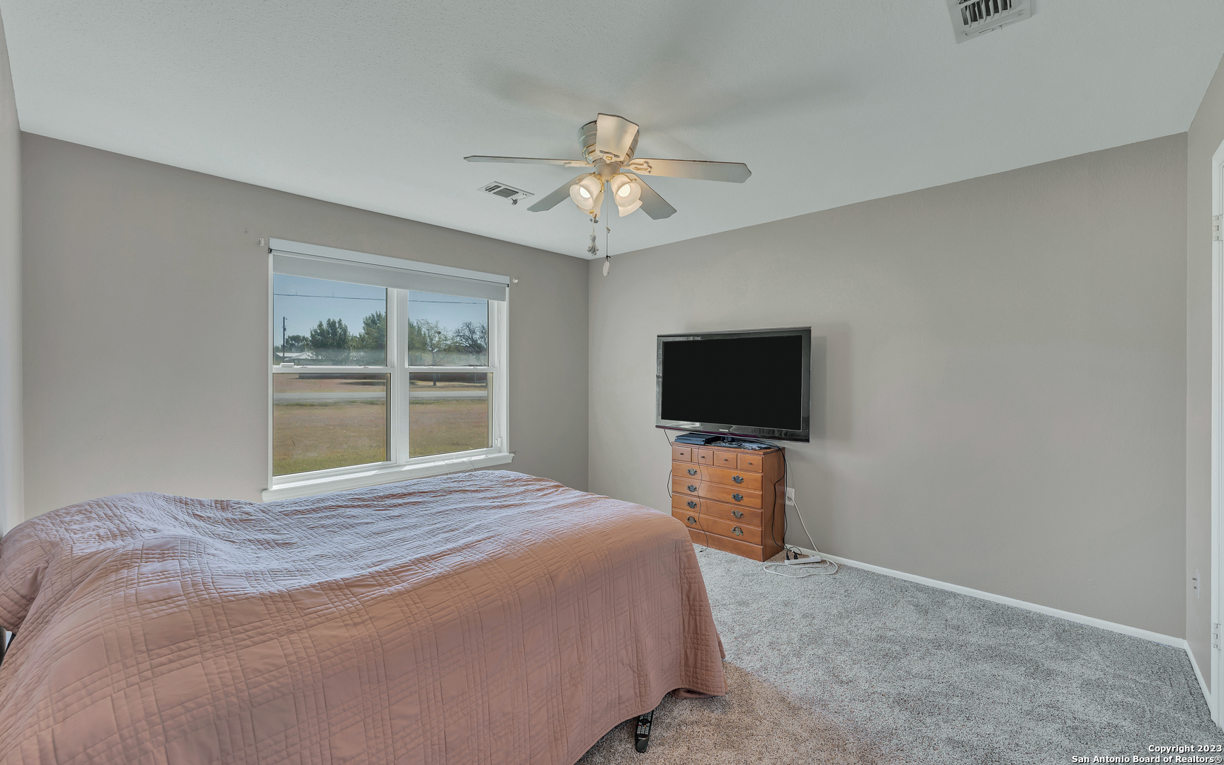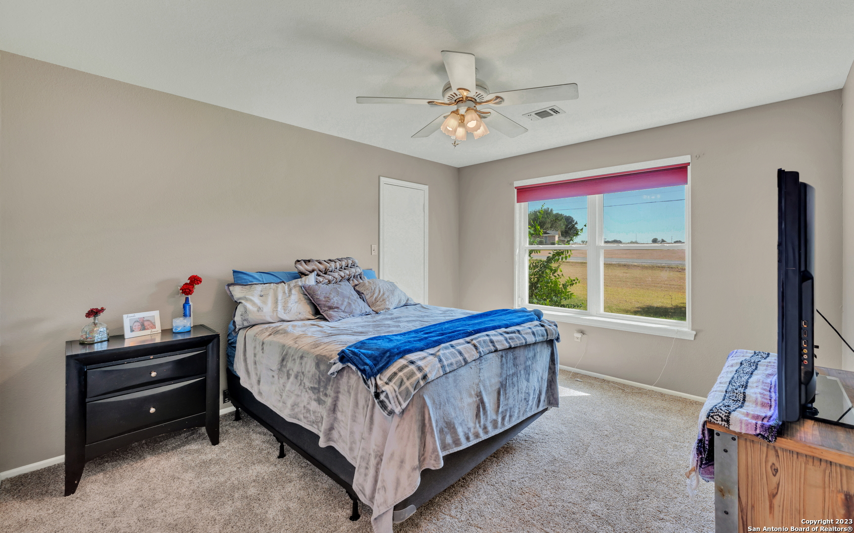 One story, ranch style home on a corner lot with custom pool, spa, waterfall and bonus workshop. Conveniently positioned on Santa Clara Loop with easy access to local amenities. Beautiful, all side brick home with recently installed HVAC, carpet, double pane windows & neutral interior paint. Enter the foyer which opens to the living room. Private formal dining room and breakfast nook located in the eat in kitchen. Kitchen equipped with pantry, breakfast bar and gas stove and range. Split 3 bedrooms, 2.5 baths with walk in closets. Spacious master suite with double vanity, sitting nook, spa garden tub, walk-in shower & large closets. Masonry, wood burning fireplace in family room. 2 car attached garage. Laundry/mudroom, linen closets and solar panels. 50x30 Metal shop with bonus workshop, on slab with electric and roll up doors. Privacy fencing for animals & flagpole in the front yard.