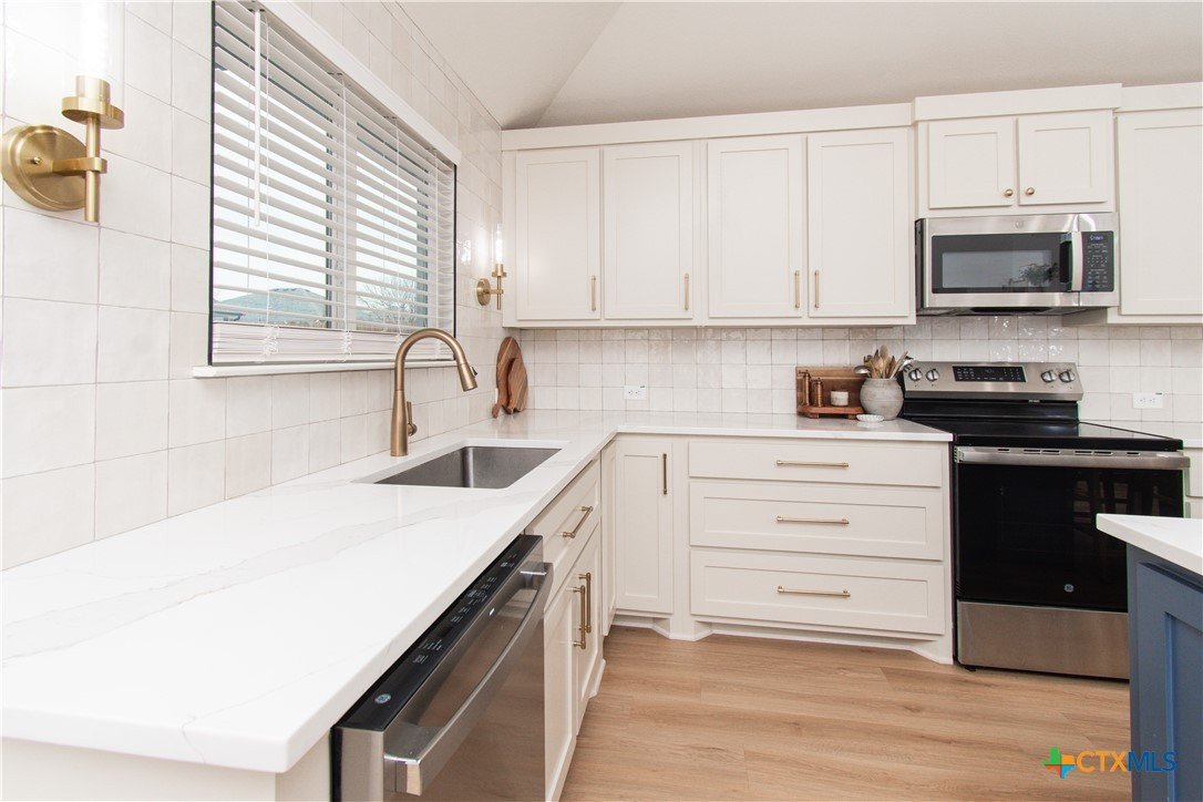 Completely remodeled and updated home in the heart of West Temple and Belton ISD. This 3 bedroom, 2 bathroom home features a wood burning fireplace and has brand new vinyl plank flooring throughout (NO CARPET), an upgraded kitchen with quartz countertops, a massive center island that incorporates a built in dining room table, and custom cabinets sprawling across the entire kitchen. The master bedroom is very generous in size and has an on-suite bathroom with elegant walk-in shower. The backyard features a large covered patio which provides that afternoon shade in the summer months while entertaining with family and friends.