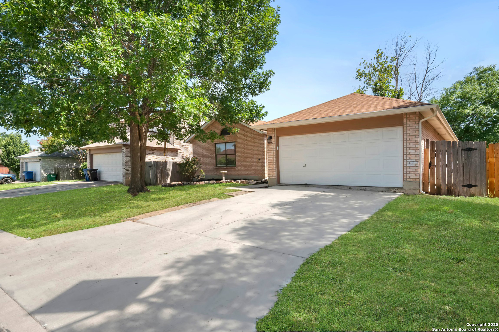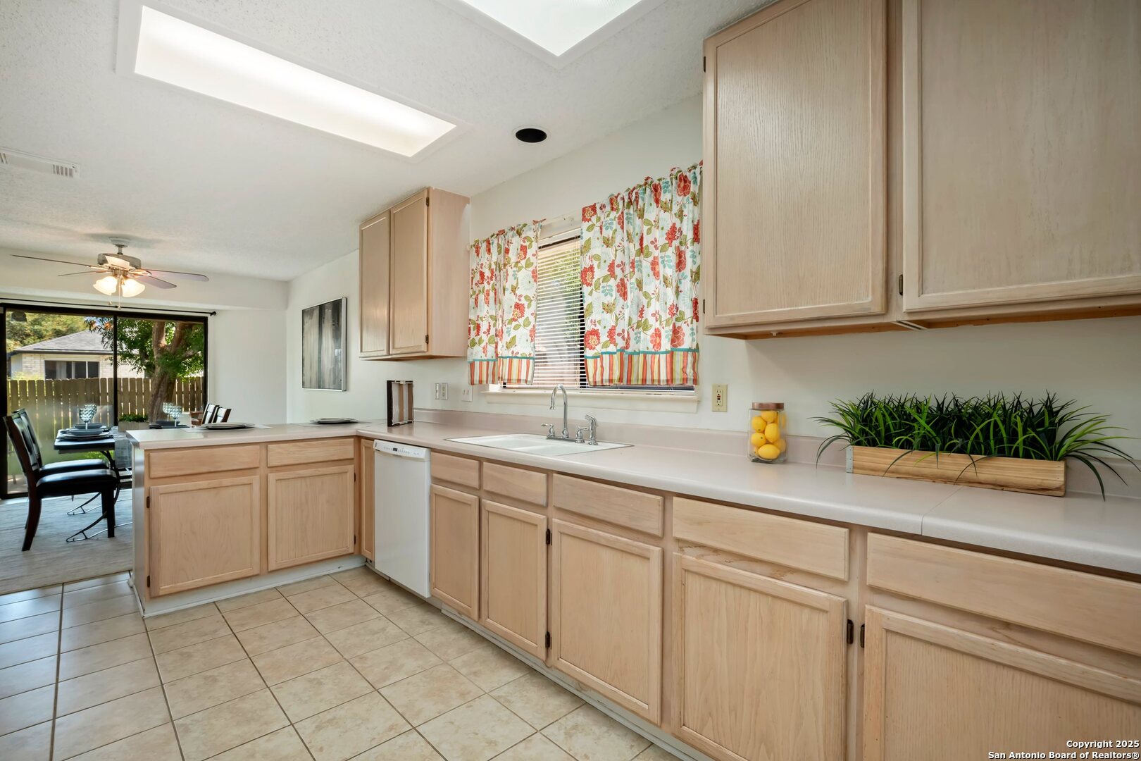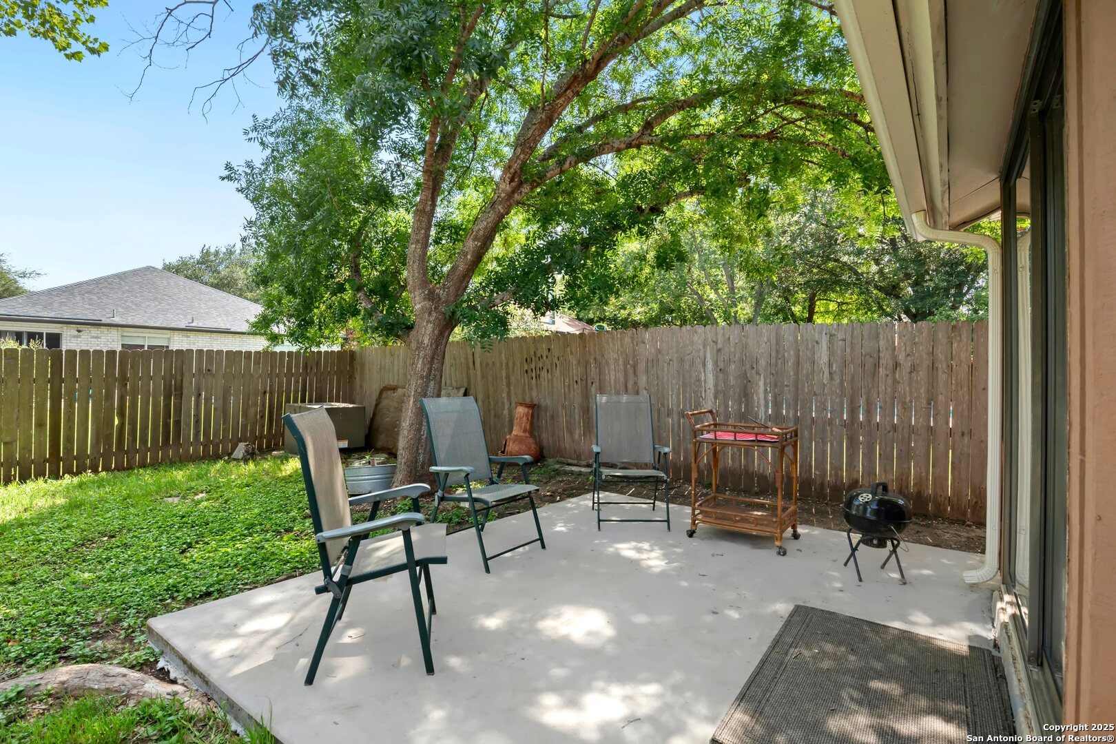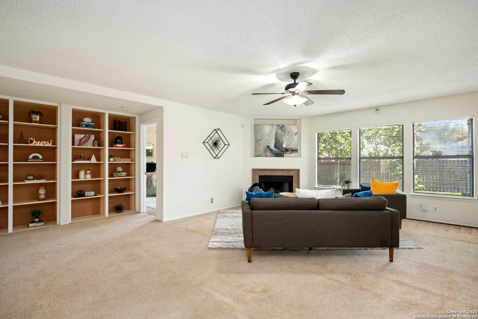 This charming single-story home in Parkwood offers a comfortable and updated layout, perfect for everyday living. Featuring 3 bedrooms and 2 bathrooms, the home has a bright and open floor plan with abundant natural light. The spacious living area includes a wood-burning fireplace flanked by built-in bookcases, creating a warm and inviting space. A formal dining area with a pass-through to the kitchen provides a functional flow for both casual meals and entertaining. The kitchen includes a walk-in pantry, breakfast bar, and plenty of cabinet and counter space. The split primary bedroom features a sitting area and peaceful views of the backyard. Outdoors, you'll find a patio, mature shade trees, a privacy fence, and a lawn area ideal for relaxing or play. Recent updates include a new water heater in 2023, and fresh interior paint completed in June 2025. Located in a desirable school district just two blocks from the elementary school, this home is also close to Bamberger Nature Park, community amenities, Loop 1604, and Bandera Road. Schedule your showing today!