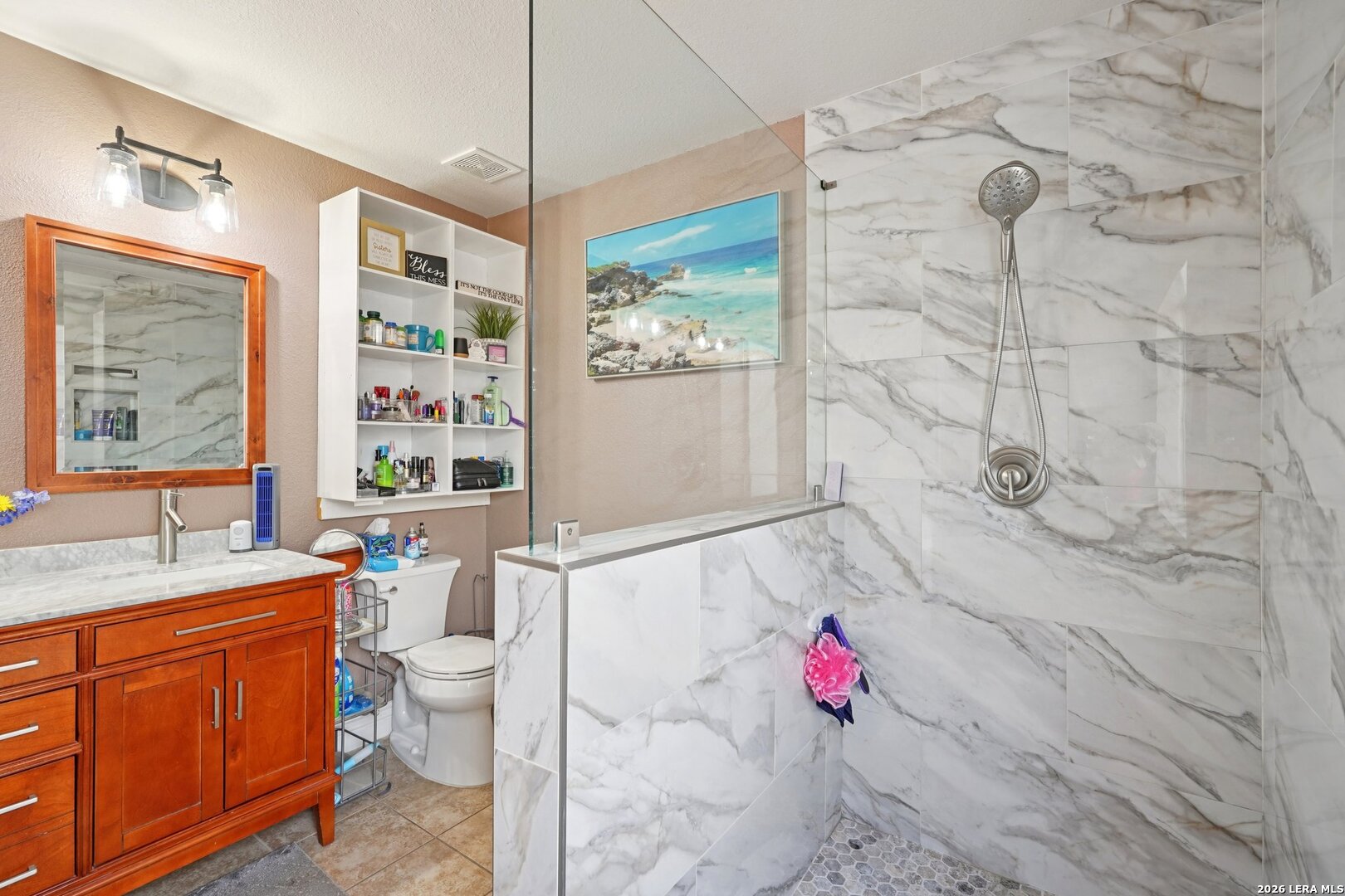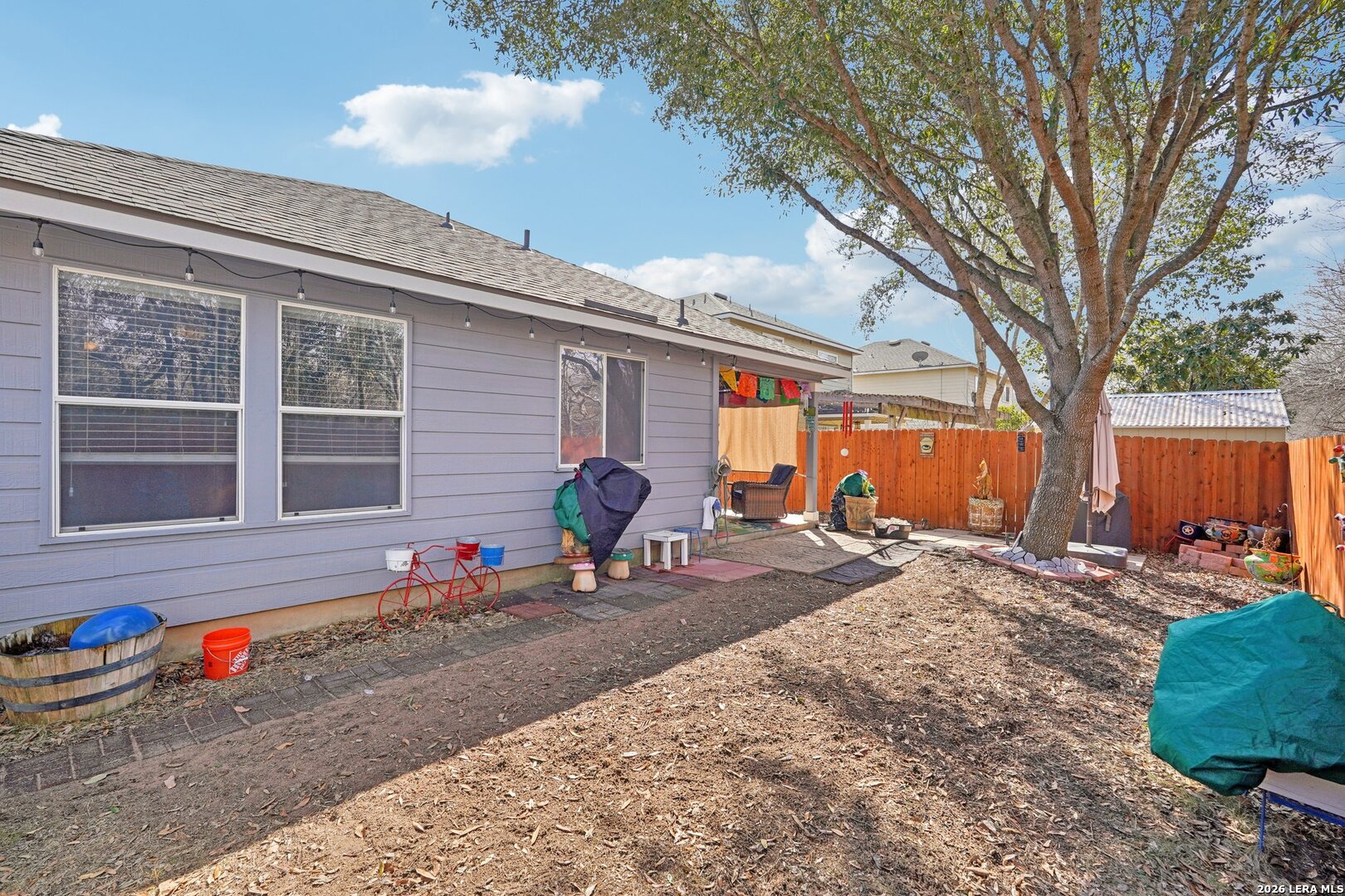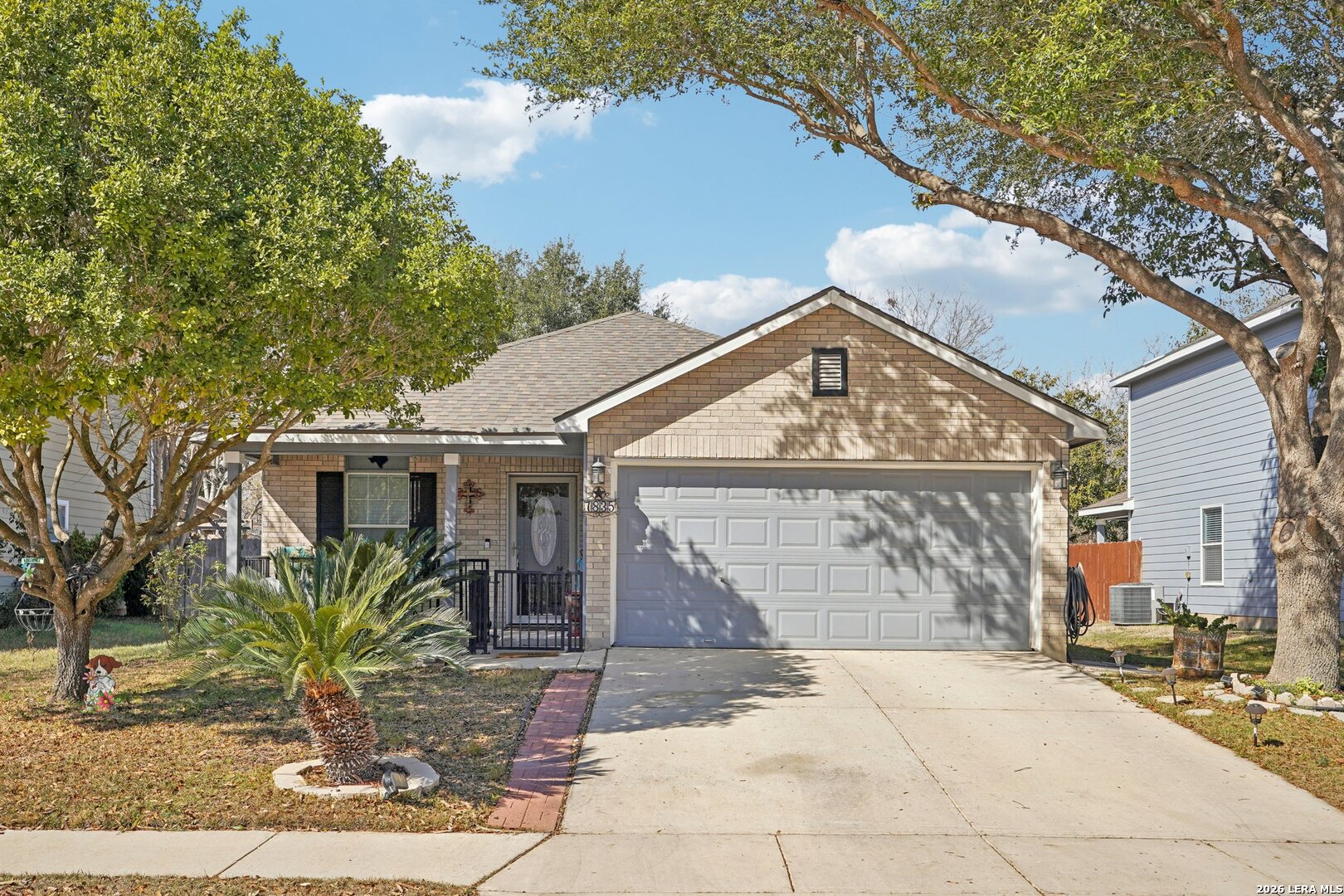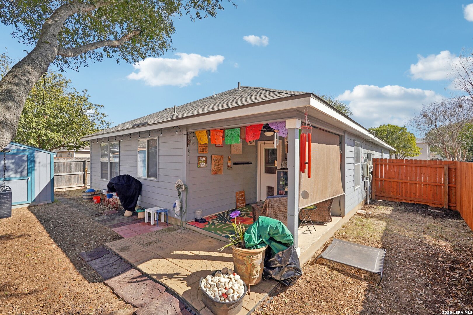Imagine sipping your morning coffee on a covered patio, surrounded by mature trees and a serene greenbelt view with no rear neighbors. That's the everyday reality waiting for you in this beautifully updated single-story home. Inside, you'll find an open layout that makes daily life and entertaining effortless. The kitchen features granite counters, while wood flooring adds warmth to the bedrooms. The rest of the home has tile throughout (zero carpet to worry about!), keeping everything fresh and low-maintenance. The primary bathroom? It's been completely remodeled with a stunning, oversized walk-in shower that feels like your own private spa. You'll actually look forward to getting ready in the morning. All the big-ticket items have been taken care of for you. The roof and water heater are brand new as of 2025, and the HVAC was replaced in 2024. Even better, the solar panels will be completely paid off at closing, so you can start saving on energy costs from day one. Out back, you've got that peaceful greenbelt setting with mature trees providing natural shade and privacy, plus a handy storage shed for all your gear. The two-car attached garage rounds out the practical side of things. Location-wise, you're minutes from the Forum, Randolph Air Force Base, Retama Park, Costco, IKEA, and plenty of dining and entertainment options. Convenience meets tranquility. This is your chance to enjoy modern, move-in ready living in a naturally beautiful setting. Ready to see it?