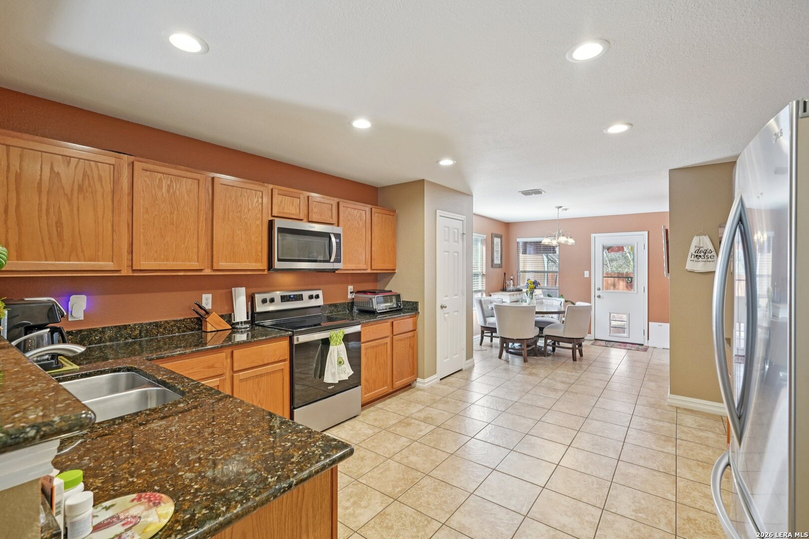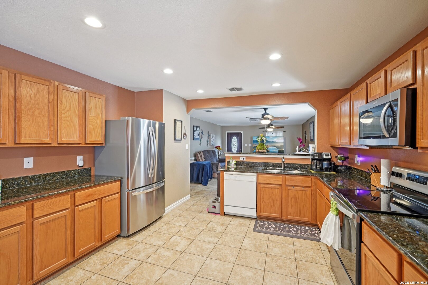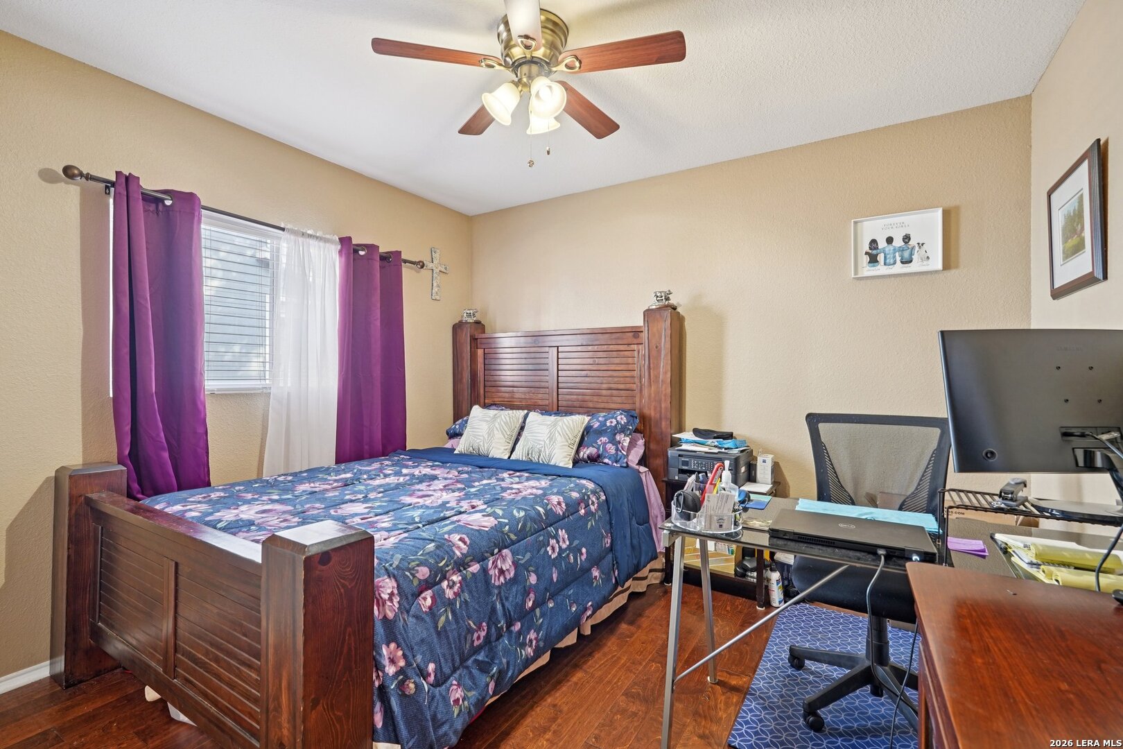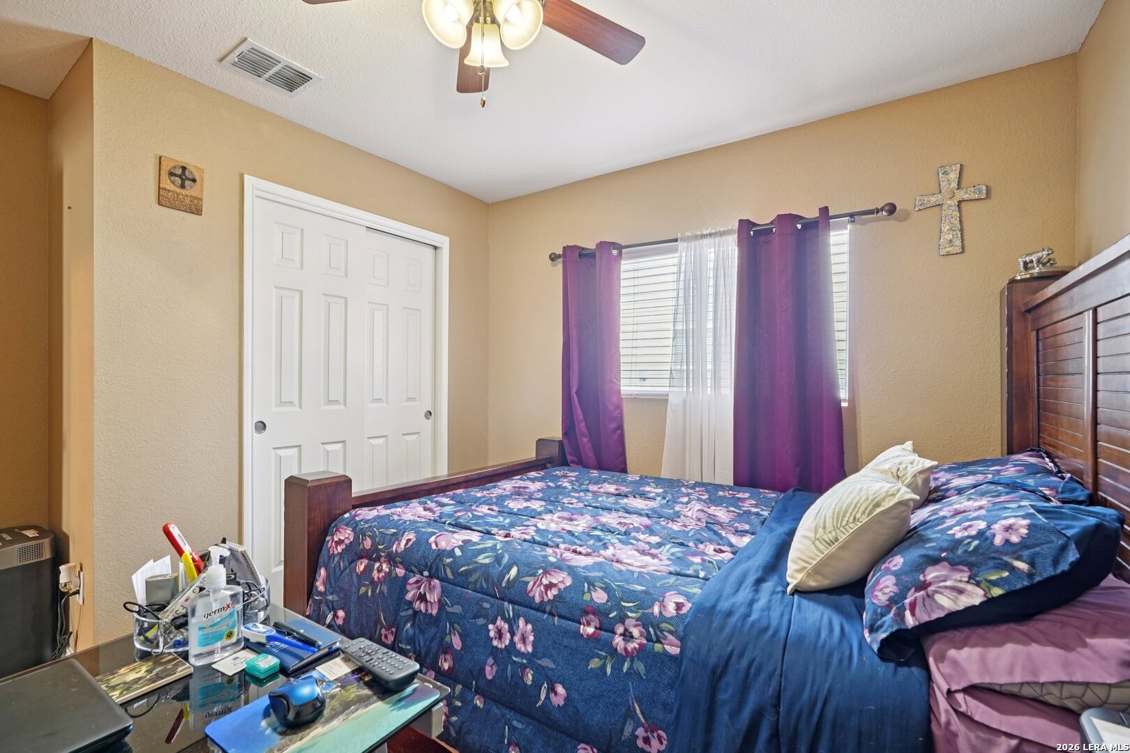 Imagine sipping your morning coffee on a covered patio, surrounded by mature trees and a serene greenbelt view with no rear neighbors. That's the everyday reality waiting for you in this beautifully updated single-story home. Inside, you'll find an open layout that makes daily life and entertaining effortless. The kitchen features granite counters, while wood flooring adds warmth to the bedrooms. The rest of the home has tile throughout (zero carpet to worry about!), keeping everything fresh and low-maintenance. The primary bathroom? It's been completely remodeled with a stunning, oversized walk-in shower that feels like your own private spa. You'll actually look forward to getting ready in the morning. All the big-ticket items have been taken care of for you. The roof and water heater are brand new as of 2025, and the HVAC was replaced in 2024. Even better, the solar panels will be completely paid off at closing, so you can start saving on energy costs from day one. Out back, you've got that peaceful greenbelt setting with mature trees providing natural shade and privacy, plus a handy storage shed for all your gear. The two-car attached garage rounds out the practical side of things. Location-wise, you're minutes from the Forum, Randolph Air Force Base, Retama Park, Costco, IKEA, and plenty of dining and entertainment options. Convenience meets tranquility. This is your chance to enjoy modern, move-in ready living in a naturally beautiful setting. Ready to see it?
