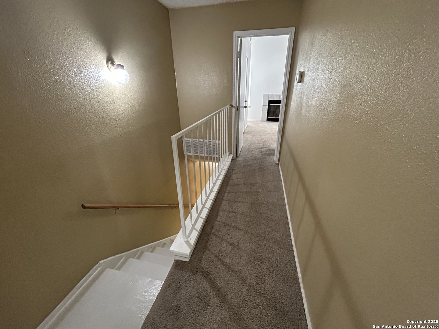 Imagine coming home after a long day and pulling into your covered parking space, knowing you don't have to worry about mowing a lawn, edging a yard, or doing any outdoor upkeep. Instead, you step inside your townhome-style condo and are greeted by the warm glow of the living room, where laminate flooring reflects the soft light and the fireplace gives the space a welcoming sense of comfort. You walk up the short steps into the dining area, a spot that feels naturally set apart-perfect for quiet breakfasts or relaxed dinners. From here, you can look straight into the kitchen through the open pass-through, where the stove/range, dishwasher, and disposal make everyday cooking simple and easy. The laundry room is right on the main level, so keeping up with chores never feels like a hassle. As you head upstairs, the vaulted ceilings immediately catch your eye. Both bedrooms offer a sense of openness, but one draws you in with its very own fireplace-imagine curling up there on a cool evening with your favorite book. Updated ceiling fans spin quietly overhead, and knowing the water heater and faucets have all been replaced gives a sense of everyday ease. When you step out to the private back patio, the privacy lattice creates a little retreat of your own. It's the perfect spot for morning coffee or unwinding at the end of the day-without any yardwork to think about. On weekends, you might stroll over to the community pool, a clean, inviting space where friendly faces gather and the atmosphere stays relaxed. And whenever you need to head out, easy access to major highways means you're never far from shops, restaurants, or wherever life takes you. Here, your days feel lighter, your routine feels smoother, and home feels peaceful-exactly what condo living is meant to be.