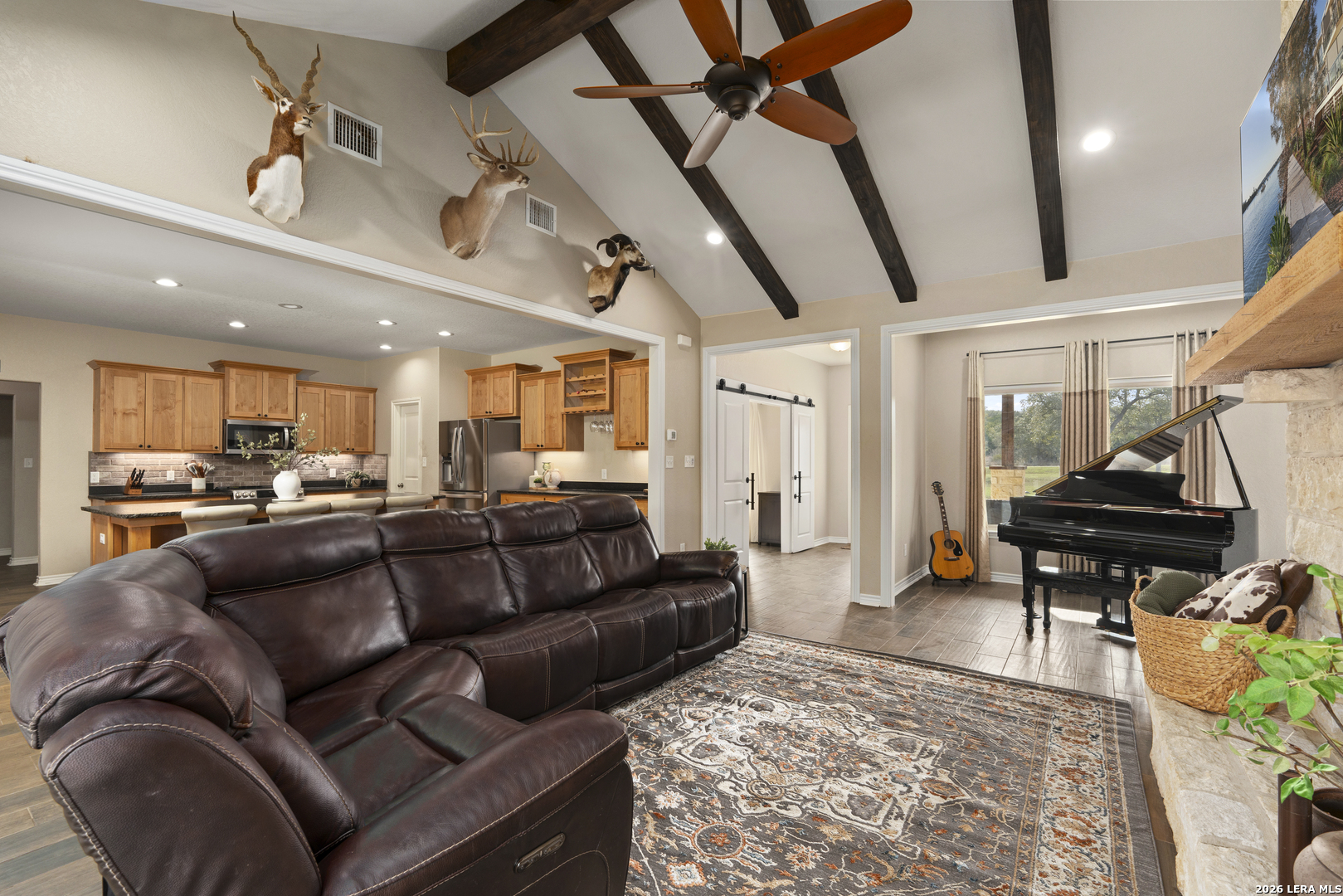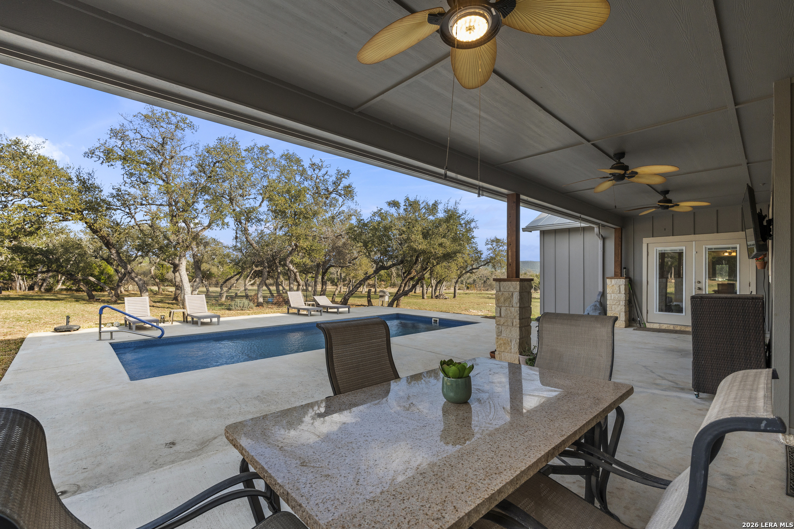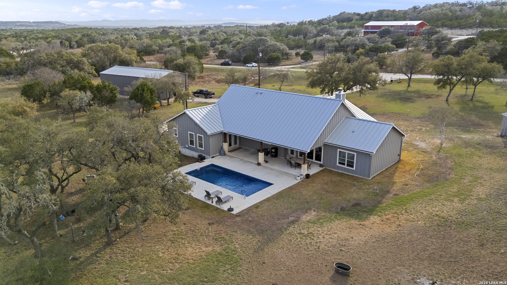 Discover the perfect blend of luxury living and expansive Hill Country utility at 789 Privilege Estates. Situated on 10 private, peaceful acres, this stunning single-story custom home captures breathtaking, unobstructed views of rolling hills and mature trees. The interior is a masterclass in design, featuring a seamless open-concept floor plan with durable wood-grain tile throughout. The living area serves as the home's centerpiece, highlighted by architectural wood beams and a classic rock fireplace. For the culinary enthusiast, the oversized kitchen boasts a giant social island and premium custom cabinetry. The thoughtful layout includes 3 spacious bedrooms plus a dedicated home office. Retreat to the luxury primary suite featuring a jetted soaking tub and a generous walk-in closet. The outdoor living is a true showstopper: relax in the sparkling in-ground pool while taking in total privacy. Horse lovers, 4-H/FFA dreamers will love the 10-acre canvas, perfect for horses, livestock, or hobby farming. The property also features a massive 30x60 metal shop (1,800 sq ft) ideal for a car collection, equipment storage, or a workshop. Experience custom craftsmanship and absolute tranquility in a setting that feels a world away.
