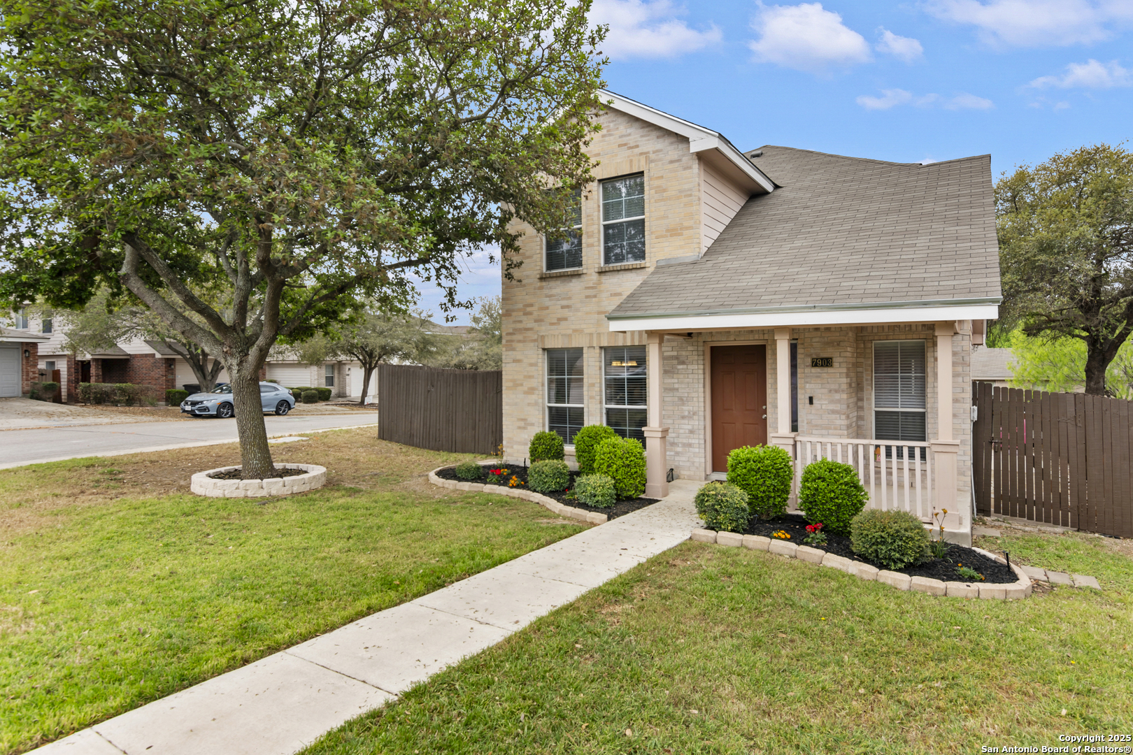 Welcome to 7903 Woodchase, a charming 3-bedroom, 2.5-bathroom home offering 1,458 square feet of comfortable living space. Situated in the well-established Westchase neighborhood, this residence is positioned on a desirable corner lot, showcasing beautiful brickwork and a spacious front porch that invites you inside. Upon entering, you'll be greeted by high ceilings and an open layout that enhances the sense of space. The living areas and kitchen feature ceramic tile flooring, while the bedrooms are comfortably carpeted. The eat-in kitchen provides ample space for dining and entertaining. One of the standout features of this home is the beautifully updated half bath, offering a modern touch that complements the home's welcoming atmosphere. Step outside to enjoy the newly built deck, perfect for relaxation and outdoor gatherings, while the freshly restrained fence adds both privacy and curb appeal. This home also includes a 2-car garage and is equipped with air conditioning for your comfort. Its prime location offers easy access to local amenities, dining, and entertainment options. Experience the perfect blend of comfort and convenience at 7903 Woodchase!