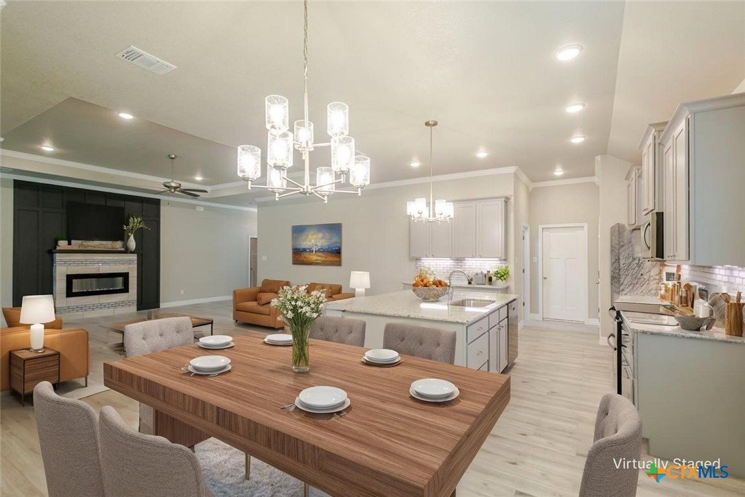 Save thousands over the life of your loan! Builder is offering $30K in buyer incentives (when using our preferred lender) to use towards closing costs/permanently reducing your interest rate. Move in to luxury with this stunning new construction home built by award winning A & G Homes. This open concept floor plan has all the comforts from the spacious 3-car garage to high ceilings, recessed lighting, upscale crown molding, ceramic tile throughout, carpet in bedrooms & closets and faux wood blinds. The gourmet kitchen has a large working island with undermount sink and breakfast bar, large pantry, decorative backsplash, under cabinet lighting and granite counter tops. Stainless-steel appliances are standard including a double oven range with ceramic cook top. The kitchen overlooks the huge family room with tile surround fireplace. The enormous owner’s suite has a walk-in closet and a spacious bathroom with a double sink vanity, and a ceramic tile shower with dual shower heads. The split floor plan includes three secondary bedrooms each with access to two full baths. The home is pre-plumbed for an outdoor kitchen on a spacious covered patio. This home will be move in ready with a privacy fence, landscaping with full sod, sprinkler system and many more features that are standard with A & G Homes.