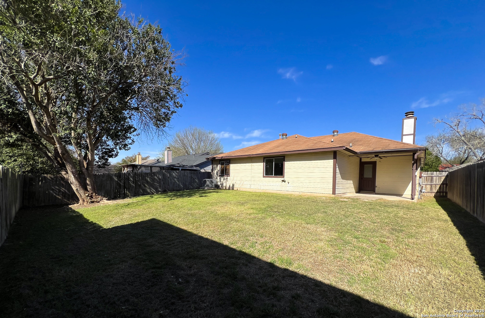 Charming 3-Bedroom, 2-Bath Single-Story Home in Live Oak area. Welcome to this beautifully maintained single-story home nestled in a cozy, established neighborhood. Featuring 3 bedrooms and 2 bathrooms, this home offers an inviting layout filled with natural light, creating a warm and welcoming atmosphere throughout. The kitchen offers upgraded granite countertops, upgraded soft-close cabinetry, and matching upgraded granite surfaces in both bathrooms. The living room features high elevated ceiling, updated recessed lighting, and a cozy fireplace, perfect for relaxing or entertaining. Enjoy the comfort of brand-new carpeting in the bedrooms and step outside to a spacious covered patio, ideal for outdoor gatherings year-round. Live Oak park minutes away for easy access to take children to park to access playground or enjoy the sites of the pond. With convenient access to I-35, and just minutes from Loop 410 and Loop 1604, this home offers an easy commute and access to local shopping, dining, and more. Don't miss your chance to own this charming home in a prime location.
