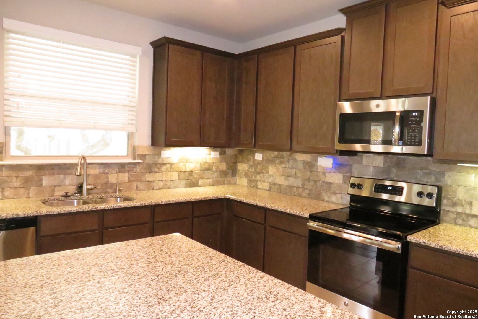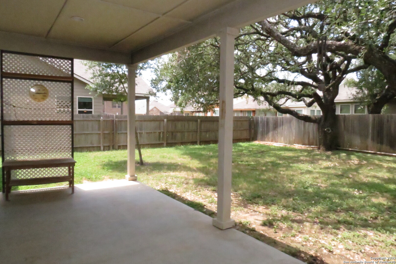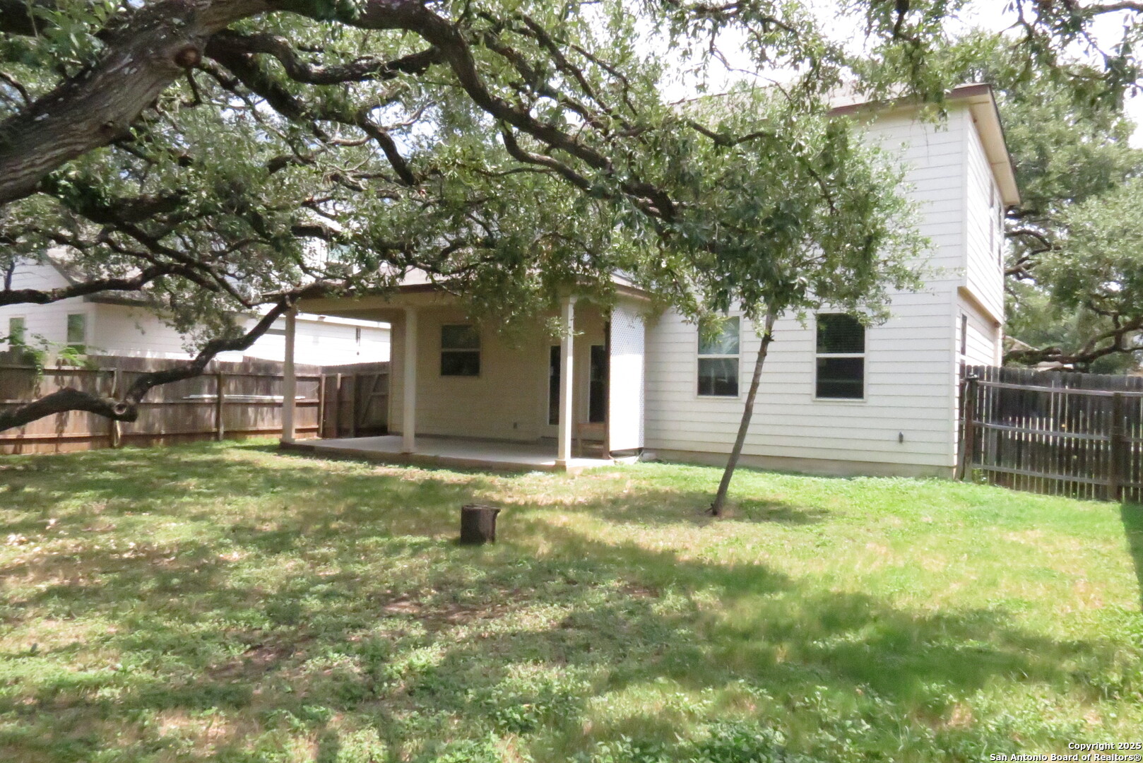 Welcome to this beautiful 3 bed 2.5 bath two-story home boasting 2186 square feet per BCAD. You will find a large kitchen, open to the breakfast and family room looking out to a covered patio and beautifully treed backyard. Head upstairs to the multipurpose loft, workout room, game room or second living. A large master bedroom accompanies the upstairs, along with two bedrooms and full bath. Master bath has a double vanity along with a large shower. Closet is huge. The laundry is conveniently located upstairs near bedrooms in its own large room. Conveniently located near Alamo Ranch shopping, restaurants, and less than a mile to highway 211 for easier commutes. Don't miss the opportunity to come see this beauty before it's gone! Friendly, community with a pool, park, and jogging trails.