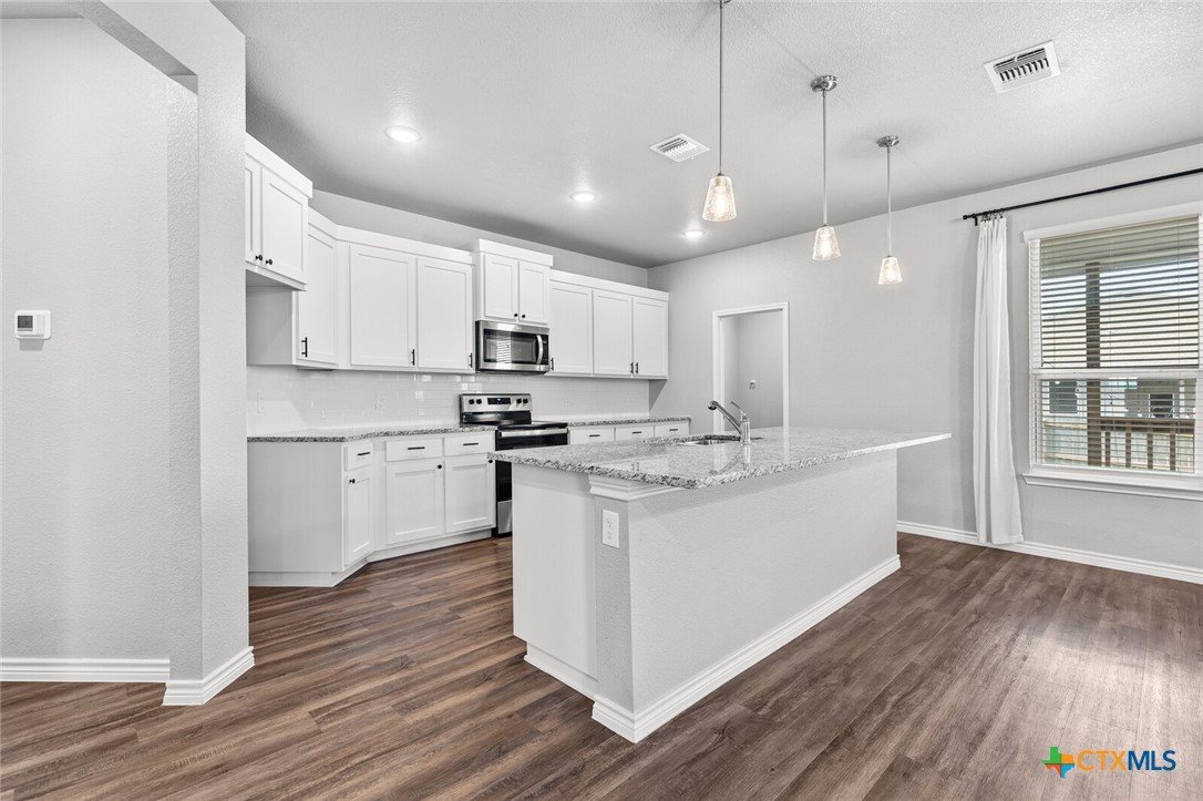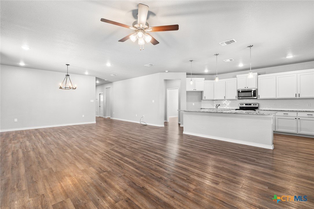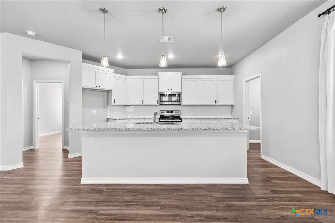 EXPLORE THIS BEAUTIFUL 4-BEDROOM, 3-BATH HOME, PERFECTLY POSITIONED ON A PRIME CORNER LOT IN THE HEART OF TEMPLE/BELTON! Designed for comfort and functionality, this home offers an open-concept layout that seamlessly connects the living, dining, and kitchen areas—ideal for gatherings or everyday living. The kitchen features durable granite countertops, attractive white painted cabinets, and stainless steel appliances creating a modern & polished look. The spacious master suite is a peaceful retreat, complete with a large walk-in closet and a well-appointed bathroom featuring a double vanity, walk-in shower, and garden tub. Three additional bedrooms with access to two full bathrooms provide plenty of space for family, guests, or a home office/workout space. Outside, enjoy a private fenced backyard with a covered patio, perfect for relaxing or entertaining year-round. With modern amenities and thoughtful details throughout, this home is move-in ready. Conveniently located near Baylor Scott & White, shopping, I-35, but in the Belton ISD, this property offers both comfort and effortless accessibility. Schedule your private tour today!