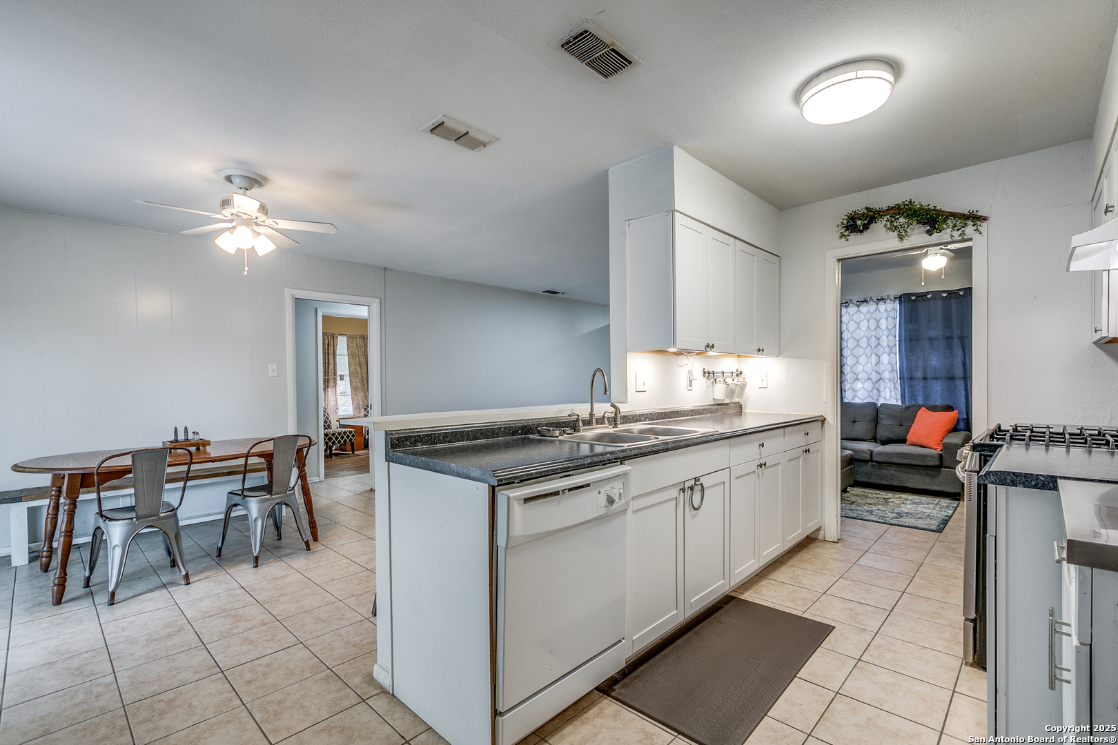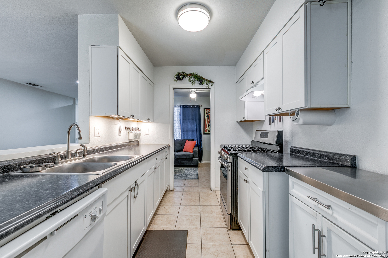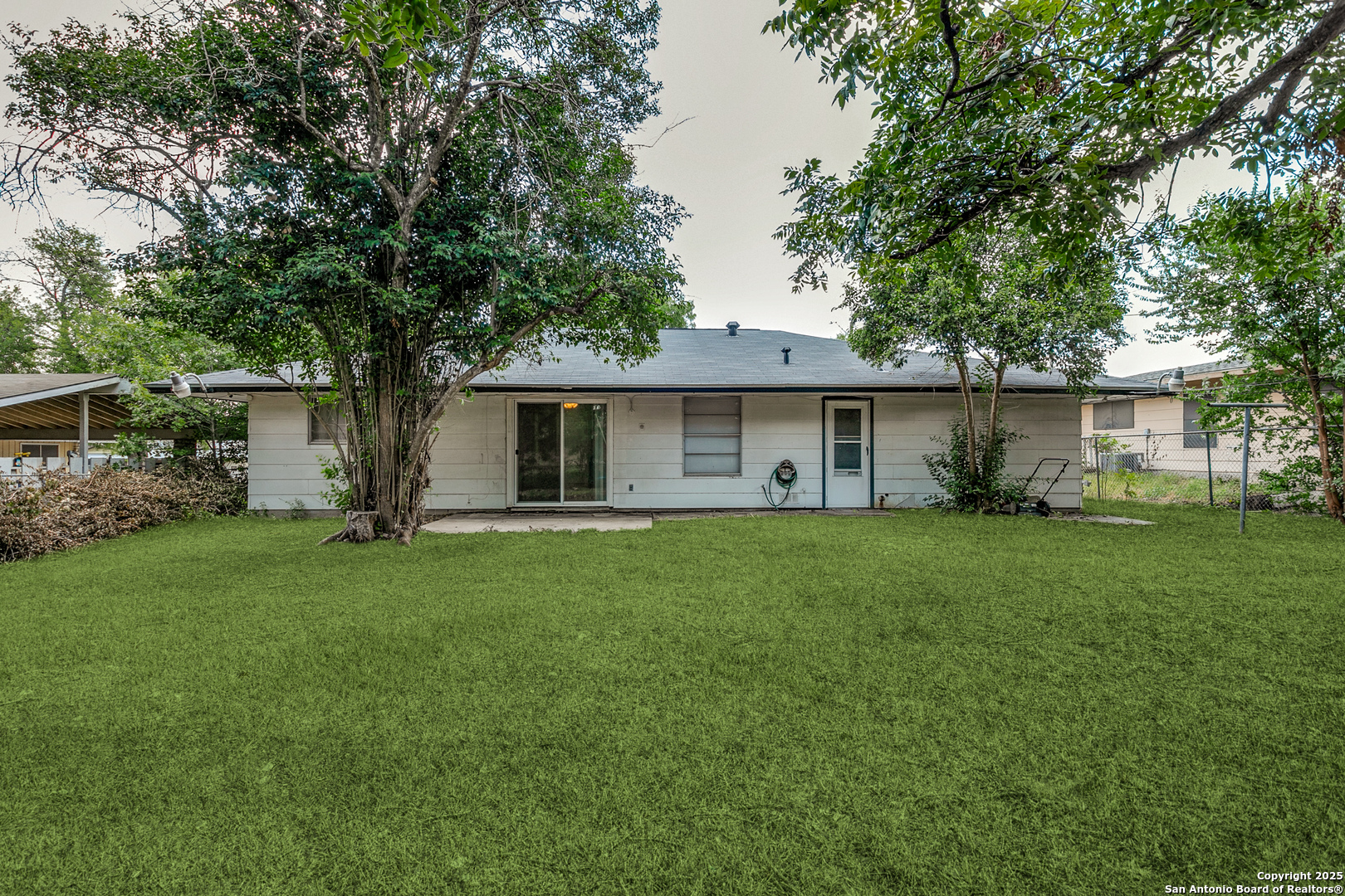 **Charming One-Story in Lackland Terrace** Welcome to 7919 Riata, a well-maintained single-story home offering 3 bedrooms, 2 full baths, and a spacious 1,184 sq. ft. floor plan. Built in 1964, this property blends classic character with modern updates, all set on a generous lot with a large front and backyard surrounded by mature trees. Inside, you'll find a bright living area, two dining spaces, and a breakfast bar for casual meals. The kitchen is equipped with gas cooking, a stainless steel gas stove, and a dishwasher for efficiency. Additional highlights include recessed lighting, ceiling fans, and washer/dryer connections for convenience. The primary suite features multiple closets for extra storage, while the updated bathroom offers a walk-in shower and granite countertops. Secondary bedrooms include cozy carpet flooring and one with charming decorator wall shelves. Outdoors, enjoy the fenced backyard, shaded by mature trees, complete with a fun clothesline for natural drying. The two-car garage provides two bay doors and plenty of room for vehicles or storage. Located in the Lackland Terrace subdivision within Northside ISD schools, this home is close to shopping, dining, and major highways! Schedule your tour today!