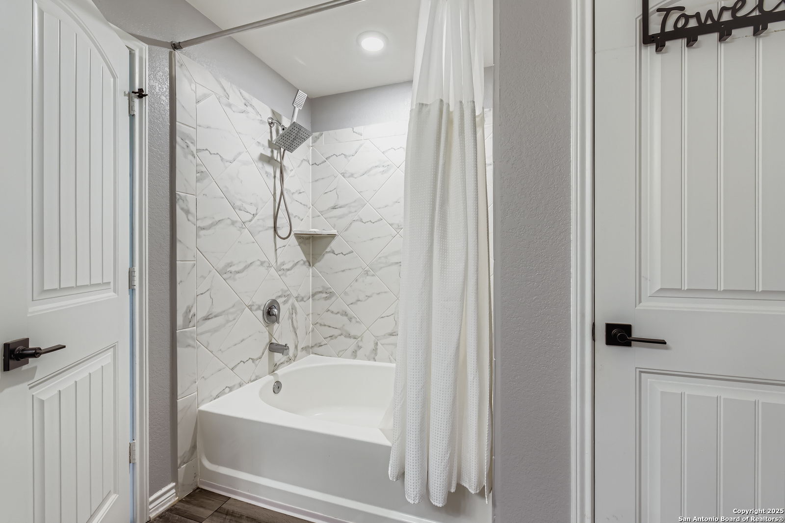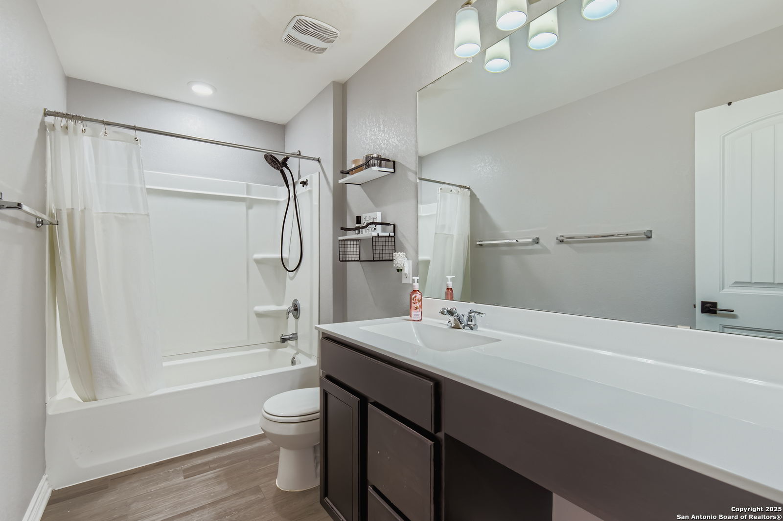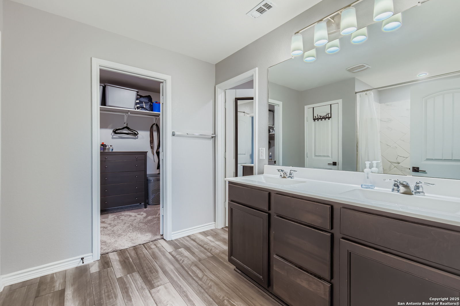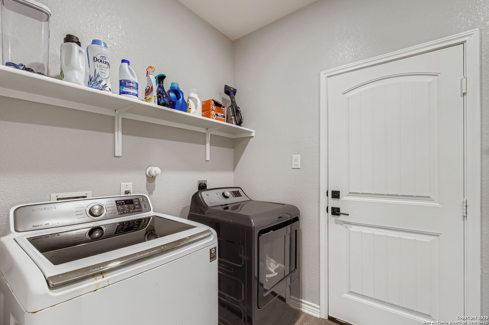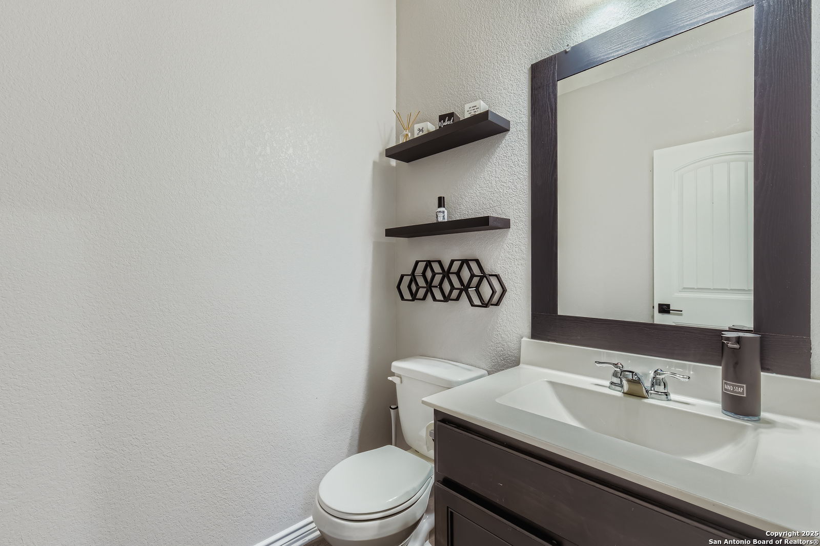 This elegant, "model-like", 4BR/2.5B /2-car garage WITH formal office has been gently lived in and sits on a greenbelt in Far West San Antonio. ***NO CITY TAXES***BUILDER'S WARRANTY*** Just shy of 2900 sf, this beauty was thoughtfully built containing high-level quality LVP throughout the first floor, a spacious study with custom glass doors, an extended island with quartz countertops, underlit 42" cabinets & a versatile under staircase storage room! Its elongated entry hallway provides privacy into the first floor living area and flows seamlessly into the custom flared steps leading to the upper level! A grand 2nd story living area is perfect for kiddos & adults alike to game, play or take in a movie! The oversized Owner's Retreat is completed by an upgraded bath containing a garden tub shower combo, dual vanities, private toilet room and a substantial closet! Additional home upgrades include: in-home water softener, security system with smart home keyless entry, stylish black cabinet kitchen faucets & door handles, SS appliances, ceiling fans in every room and much more!!! The private backyard is perfect for large parties or family get-togethers with the rear greenbelt adding additional privacy. NEIGHBORHOOD AMENITIES include pool & playground. Come out & see this "like-new" beauty!!