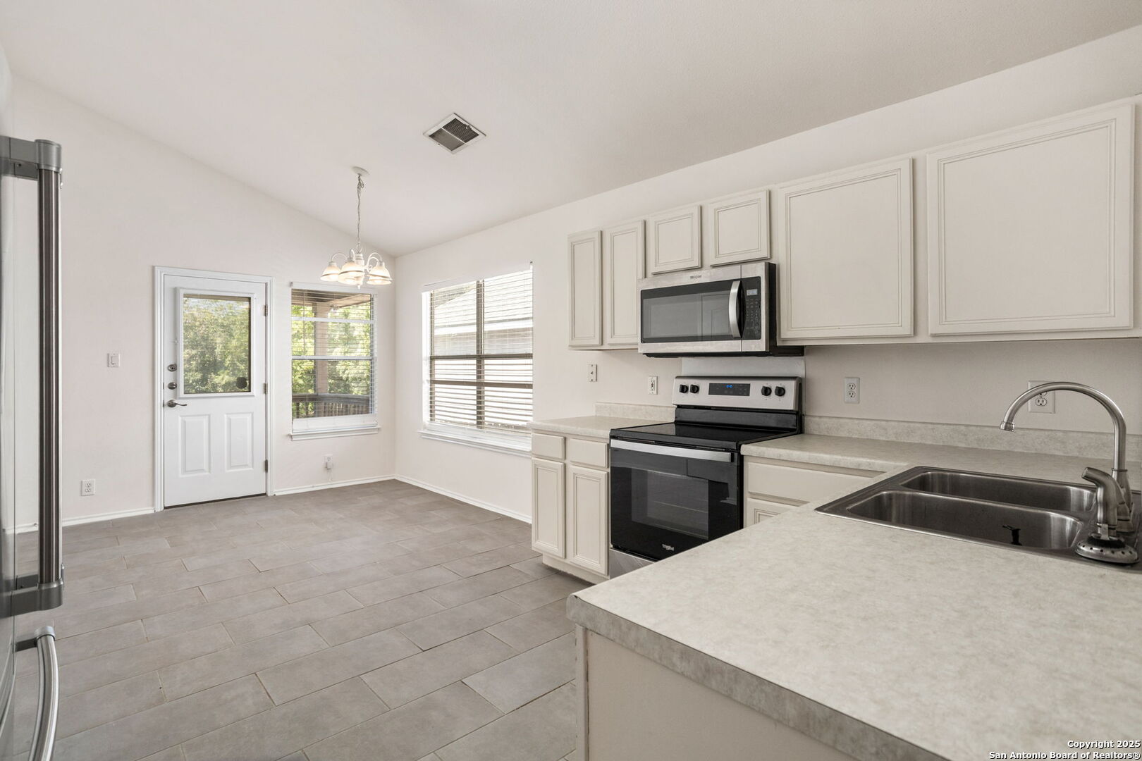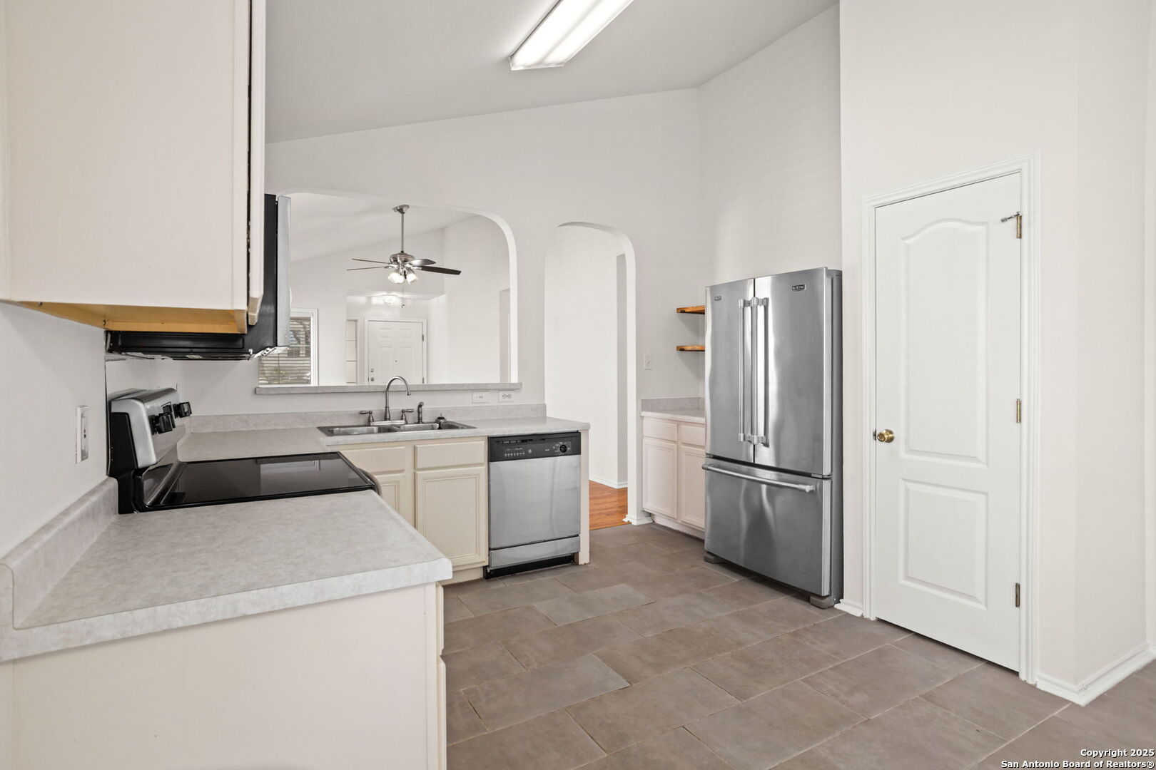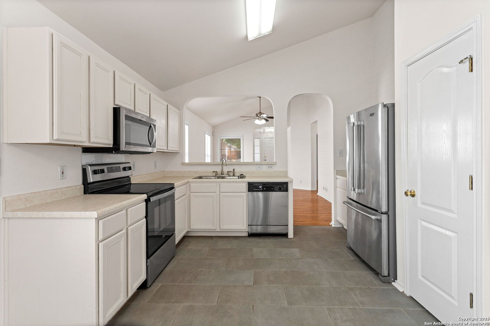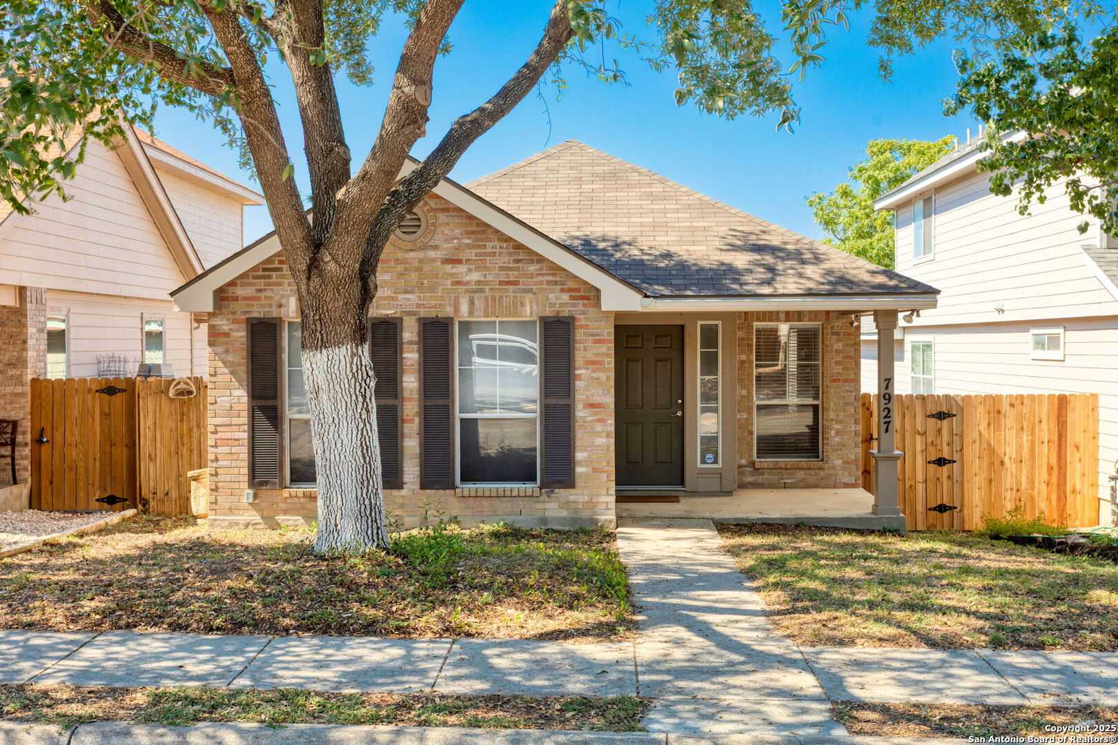Come see this charming one-story home in the peaceful Bluffs at Westchase neighborhood. This light-filled home features an open floor plan with high ceilings, fresh interior paint, and no carpet throughout. The kitchen includes a breakfast bar and all appliances convey. The spacious primary suite offers a walk-in closet and full bath. Enjoy added privacy with a rear-entry garage and a greenbelt behind the home-perfect for watching wildlife from the back patio. Recent updates include a new roof (2020) and new fencing. Conveniently located with easy access to Bandera Rd. Don't miss the opportunity to make this move-in ready home yours!