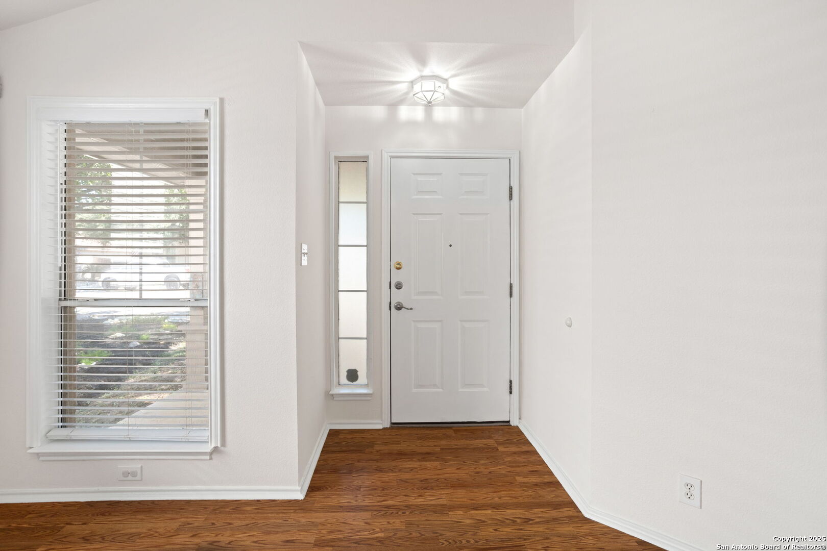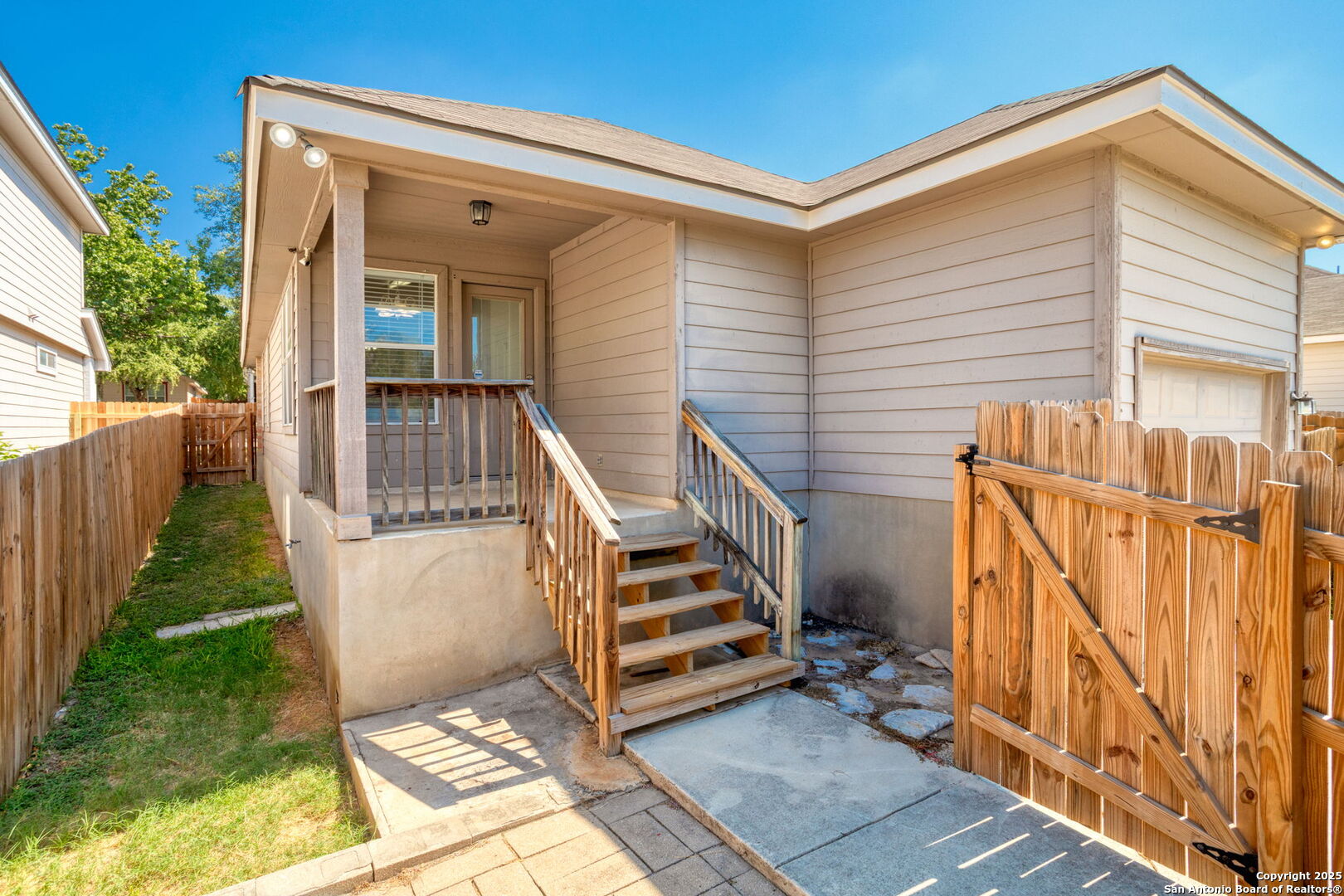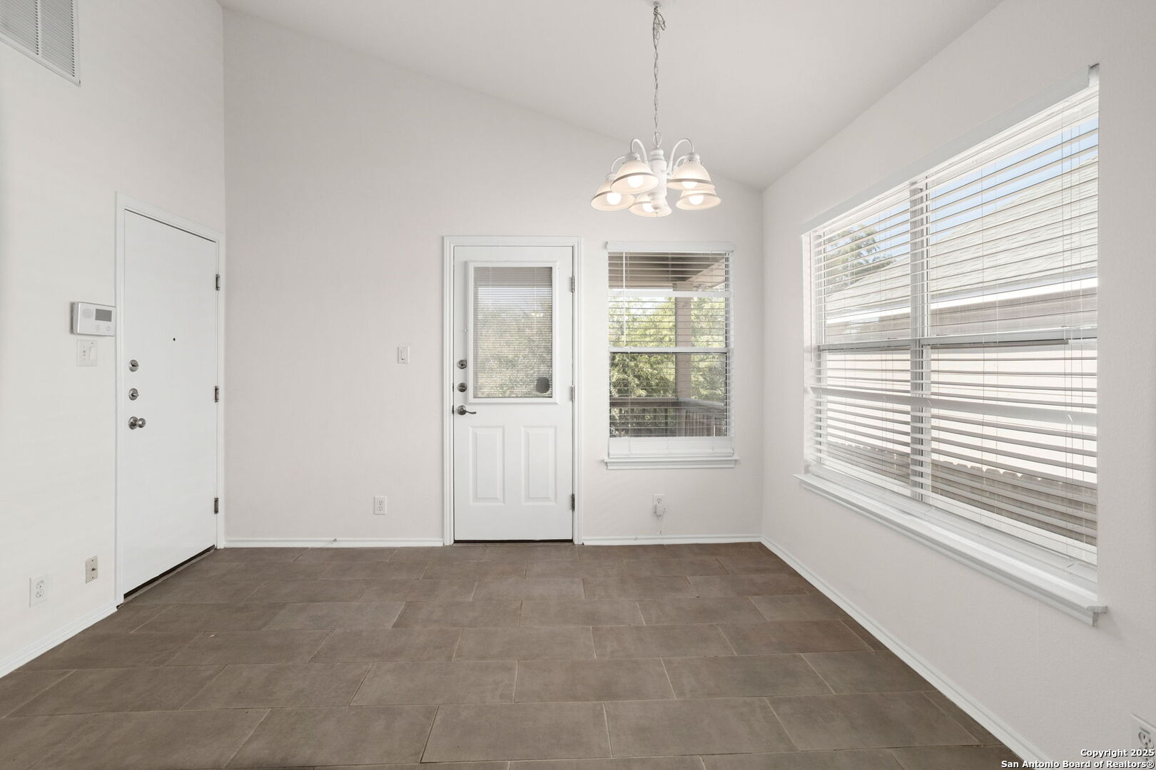Come see this charming one-story home in the peaceful Bluffs at Westchase neighborhood. This light-filled home features an open floor plan with high ceilings, fresh interior paint, and no carpet throughout. The kitchen includes a breakfast bar and all appliances convey. The spacious primary suite offers a walk-in closet and full bath. Enjoy added privacy with a rear-entry garage and a greenbelt behind the home-perfect for watching wildlife from the back patio. Recent updates include a new roof (2020) and new fencing. Conveniently located with easy access to Bandera Rd. Don't miss the opportunity to make this move-in ready home yours!