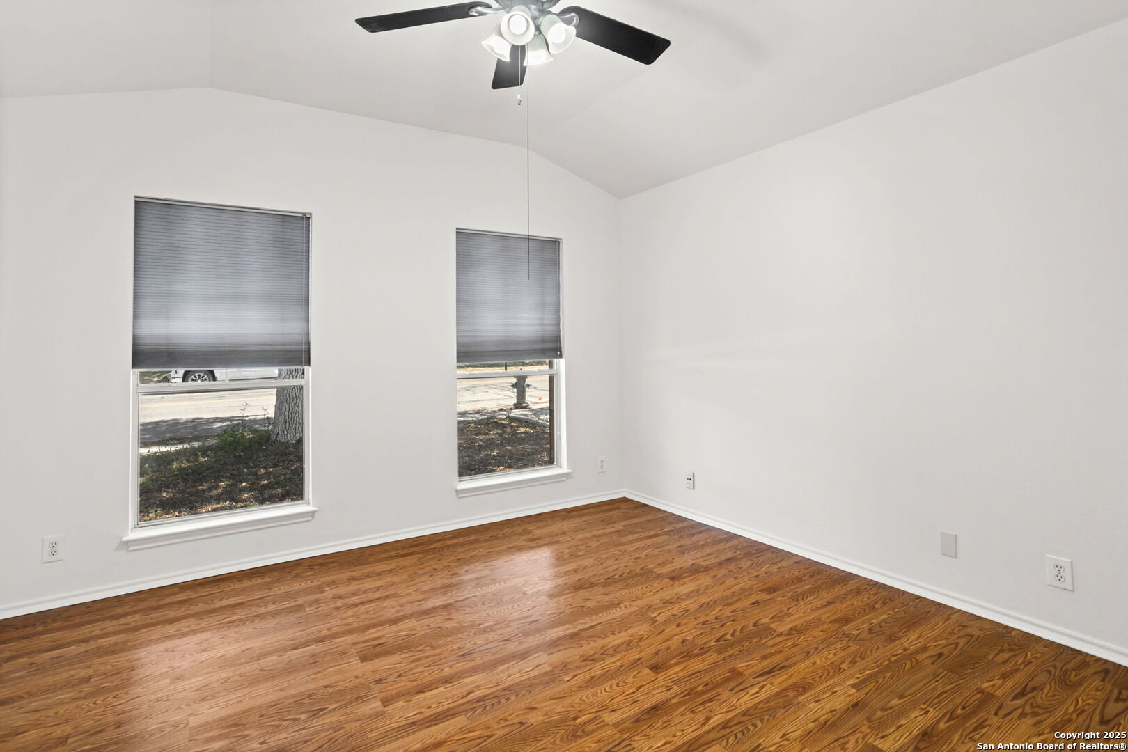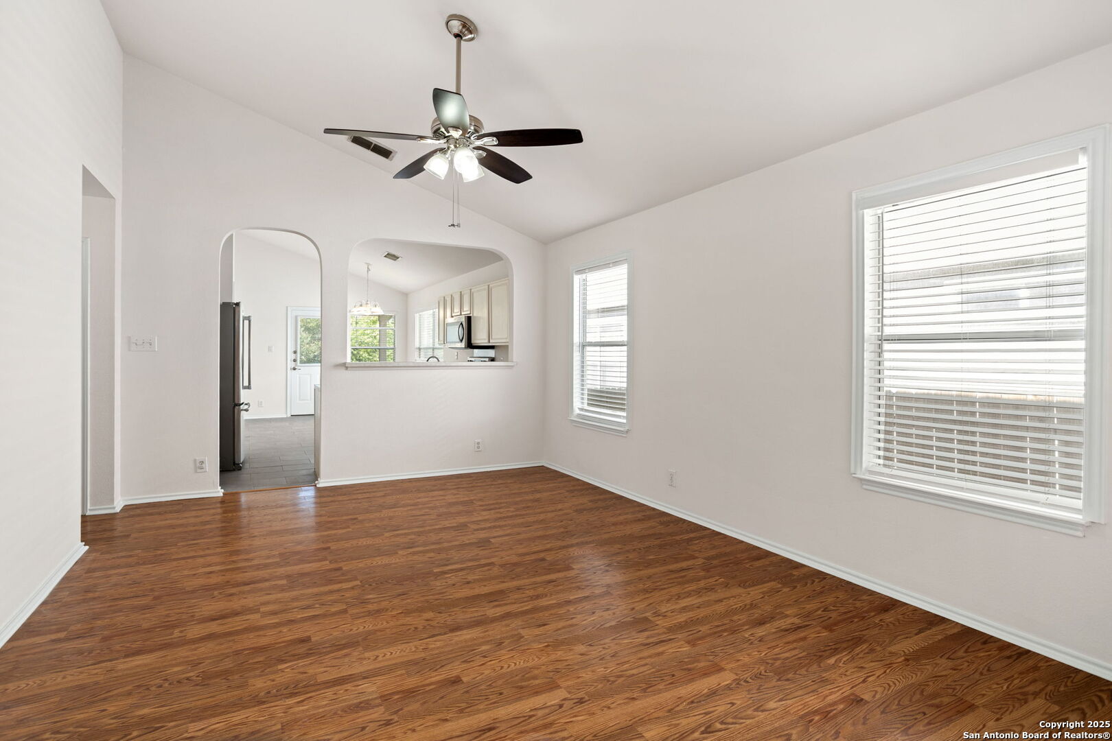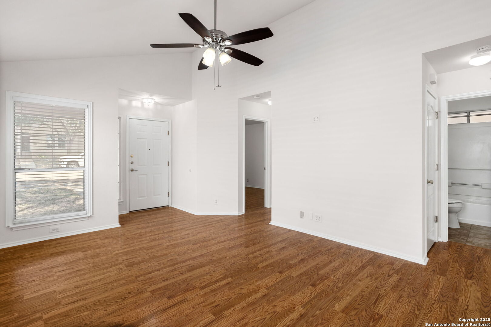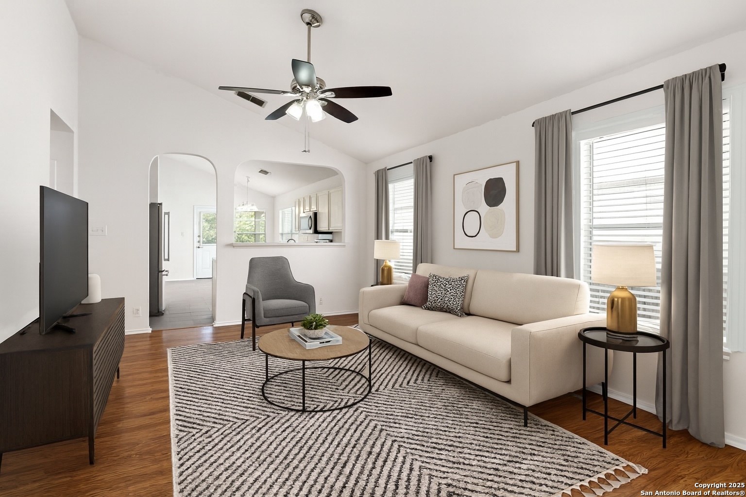 Come see this charming one-story home in the peaceful Bluffs at Westchase neighborhood. This light-filled home features an open floor plan with high ceilings, fresh interior paint, and no carpet throughout. The kitchen includes a breakfast bar and all appliances convey. The spacious primary suite offers a walk-in closet and full bath. Enjoy added privacy with a rear-entry garage and a greenbelt behind the home-perfect for watching wildlife from the back patio. Recent updates include a new roof (2020) and new fencing. Conveniently located with easy access to Bandera Rd. Don't miss the opportunity to make this move-in ready home yours!