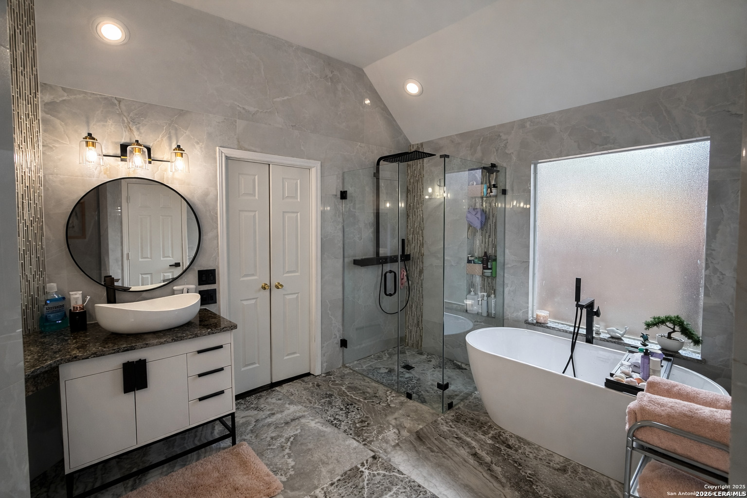 Stunning Fully Remodeled One-Story Home in Gated Sierra Vista Welcome to this beautifully renovated one-story home located in the highly sought-after gated community of Sierra Vista. Offering 2,268 sq ft of elegant living space on a 0.181-acre lot, this home blends modern luxury with timeless comfort. Step inside through the impressive tall double metal front doors and be greeted by a bright open floor plan with tall ceilings, abundant natural light, and high-end finishes throughout. Interior Highlights 4 spacious bedrooms and 2 beautifully updated bathrooms Fully remodeled kitchen featuring: Marble countertops Custom wooden cabinetry Stainless steel appliances Multiple flooring types including luxury vinyl, ceramic tile, and marble Inviting living room with a cozy fireplace Relaxing primary suite with a walk-in closet and a stunning fully remodeled bathroom New water heater Exterior & Lot Attractive curb appeal with mature trees Modern metal patio doors leading to the backyard 2-car garage Prime Location Centrally located and just minutes from Loop 1604, I-10, the Medical Center, premium shopping, dining, and entertainment. This home feels brand-new with a thoughtfully designed remodel from 2024-2025, one of San Antonio's convenient and secure neighborhoods.