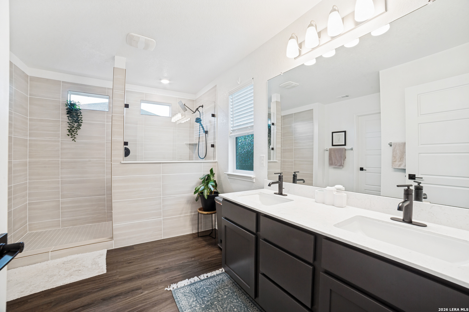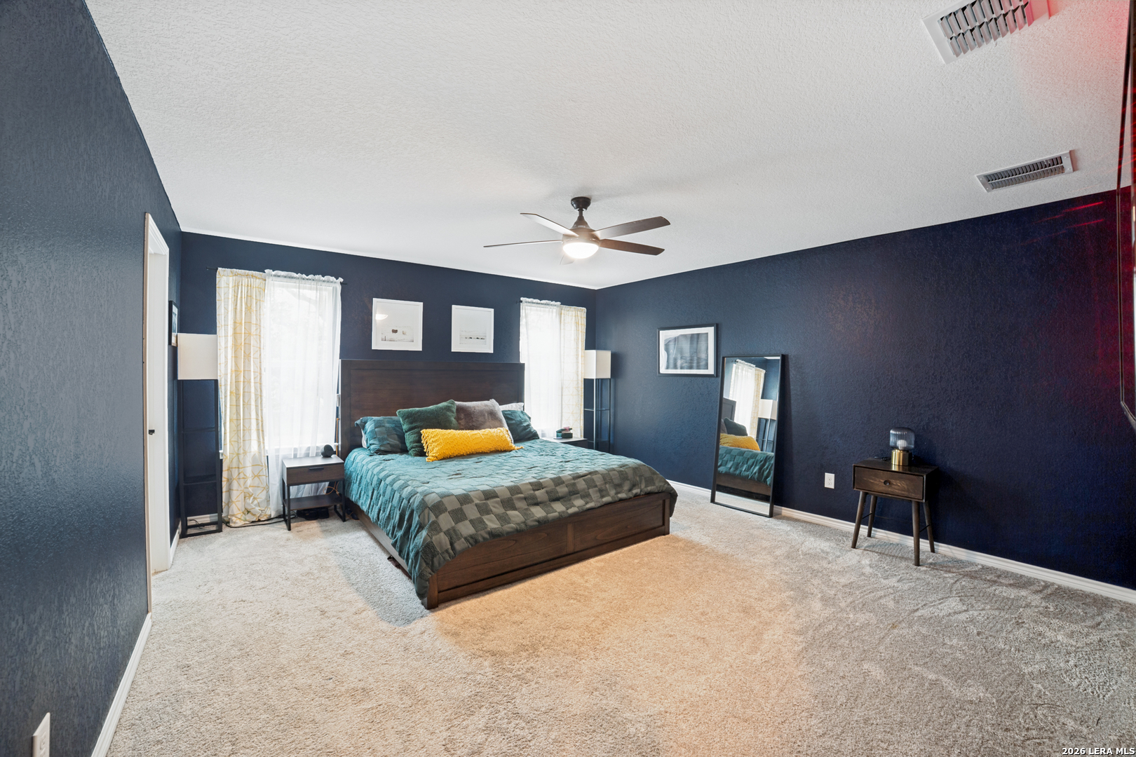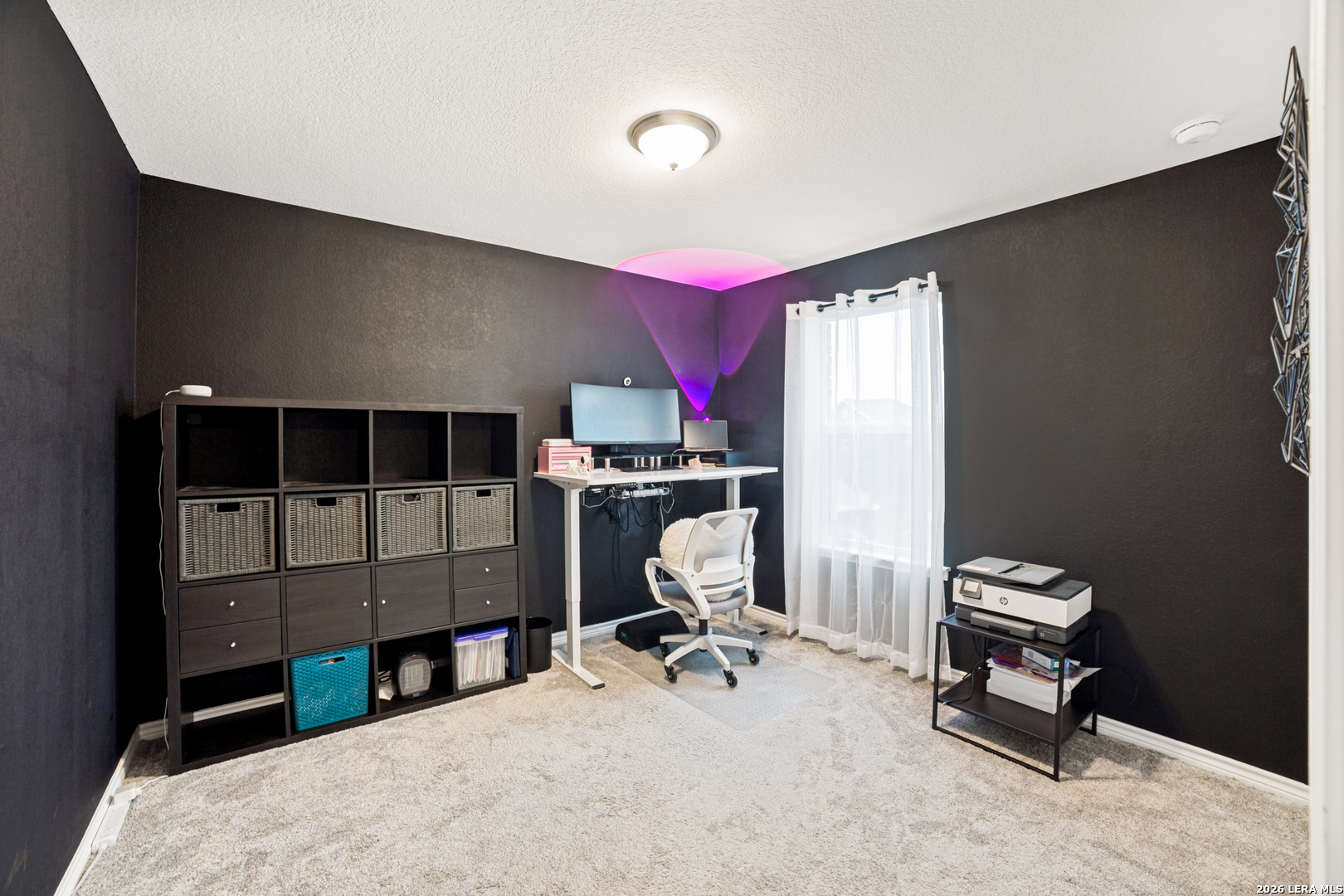 Welcome to this meticulously kept 3-bedroom, 2.5-bathroom home, perfectly designed for modern living. Upon entering, you are greeted by impressive 9-foot ceilings. The entire downstairs features no carpet, boasting upgraded laminate vinyl plank flooring for a clean, stylish, and low-maintenance look. The kitchen is a chef's delight with elegant stone countertops, a deep basin sink, plenty of cabinet space and a spacious walk-in pantry. The home offers valuable upgrades, including a full water softener system and a garage with a durable, epoxied floor. Step outside to a peaceful covered patio, perfect for entertaining or relaxing, surrounded by mature trees. As for location, this very well-kept neighborhood is situated directly across from a brand new HEB grocery store and you can enjoy quick access to major highways, making your commute and errands a breeze. Experience the perfect blend of luxury, convenience, and functional upgrades in a truly turn-key property.