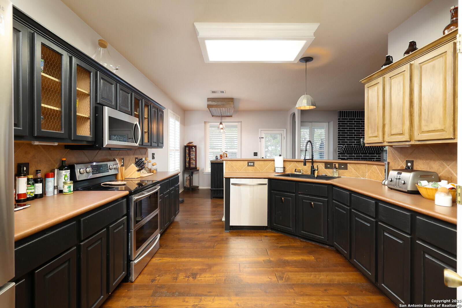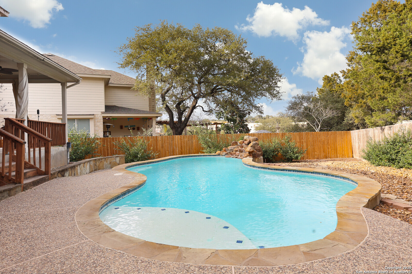 Welcome to 798 San Mateo, a beautifully maintained two-story home nestled in the highly sought-after Mission Hills Ranch community of New Braunfels. Boasting 5 spacious bedrooms and 3.5 baths, this 3,246 sq ft residence offers an ideal layout for both comfortable living and entertaining. The main living area features abundant natural light and flows seamlessly into a well-appointed kitchen with ample cabinetry, countertop space, and a large eat-in area. Upstairs, you'll find generously sized secondary bedrooms and a versatile loft space perfect for a game room, home office, or media area. The oversized primary suite is located on the main level and includes a walk-in closet and a private ensuite bath with dual vanities, soaking tub, and separate shower. Step outside to a private backyard oasis complete with a sparkling pool-ideal for cooling off on hot Texas days. Situated on a quiet street with mature trees and just minutes from shopping, dining, and top-rated schools, this home blends charm, functionality, and location in one exceptional package.