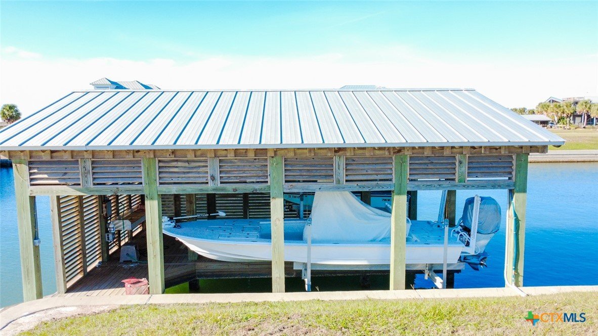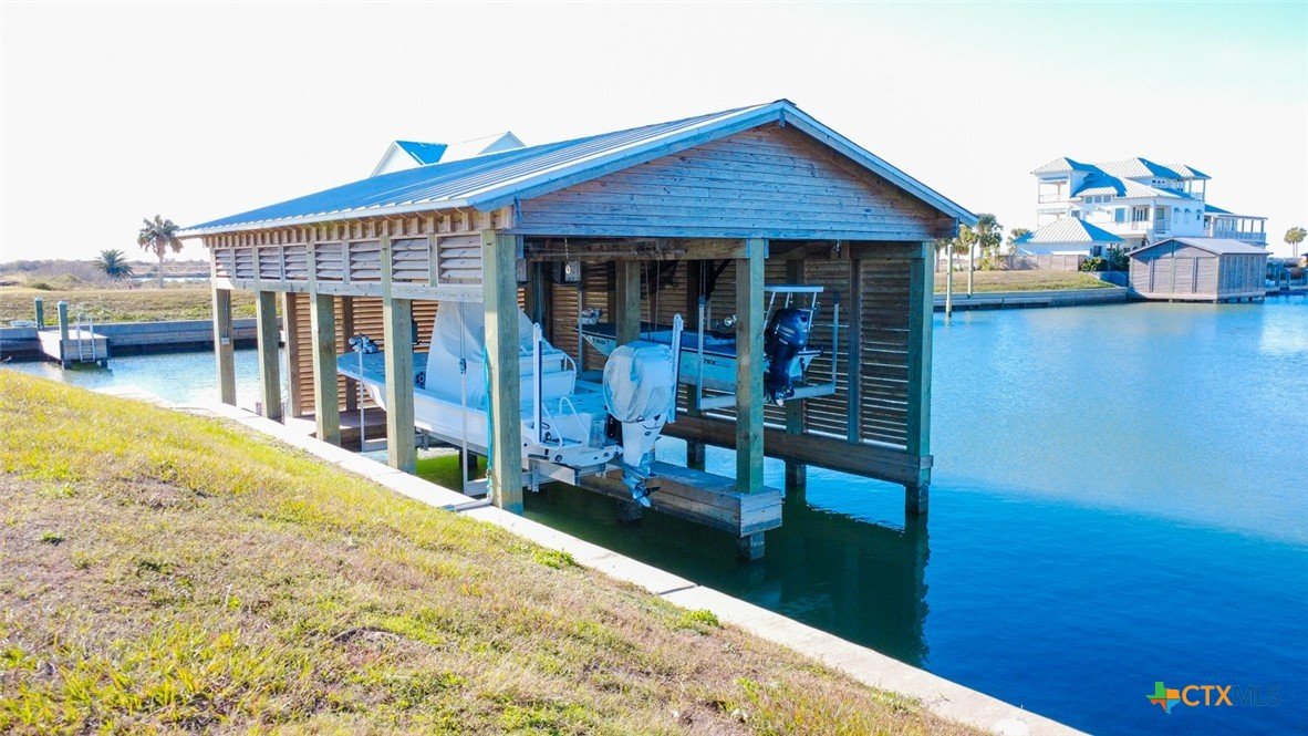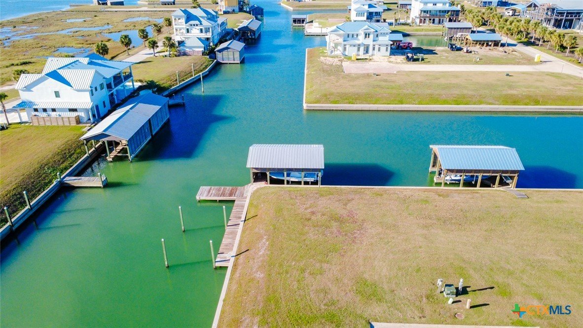Rare opportunity to own a waterfront lot in the highly sought after Caracol community in Port O'Connor! This 100' x 60' corner lot includes a boat house with 2 boat slings. It also includes a boat dock with room to moor an offshore boat! Enjoy Summer in POC at the community pool and volleyball court! Get it quick before it's gone!