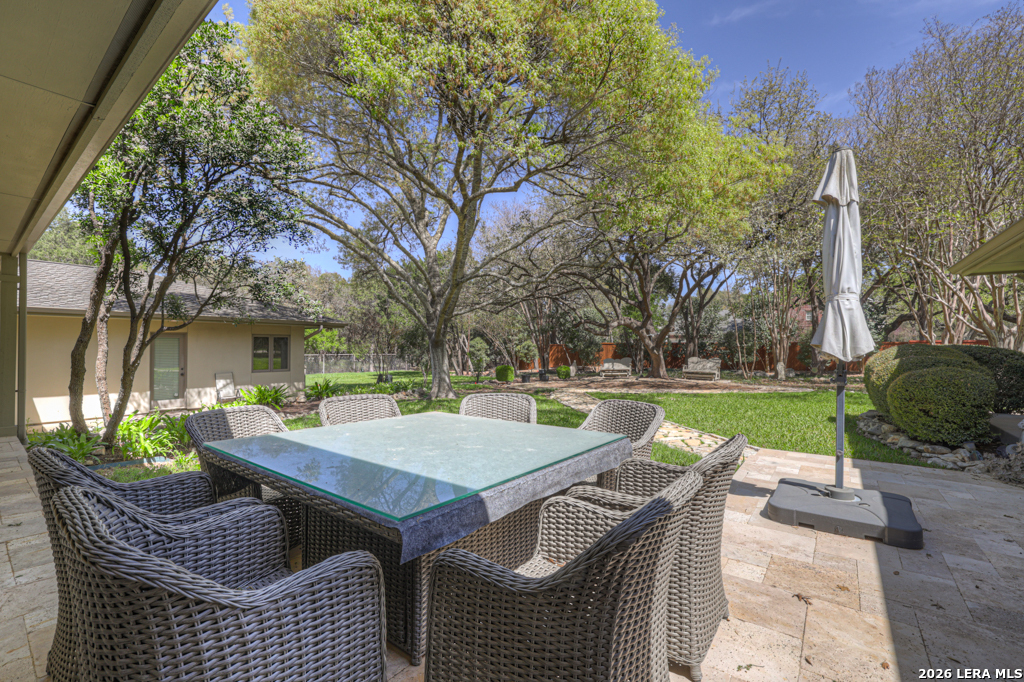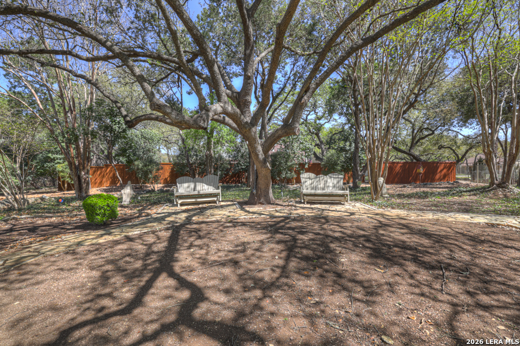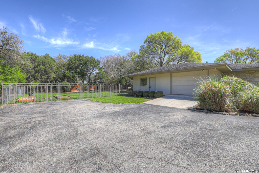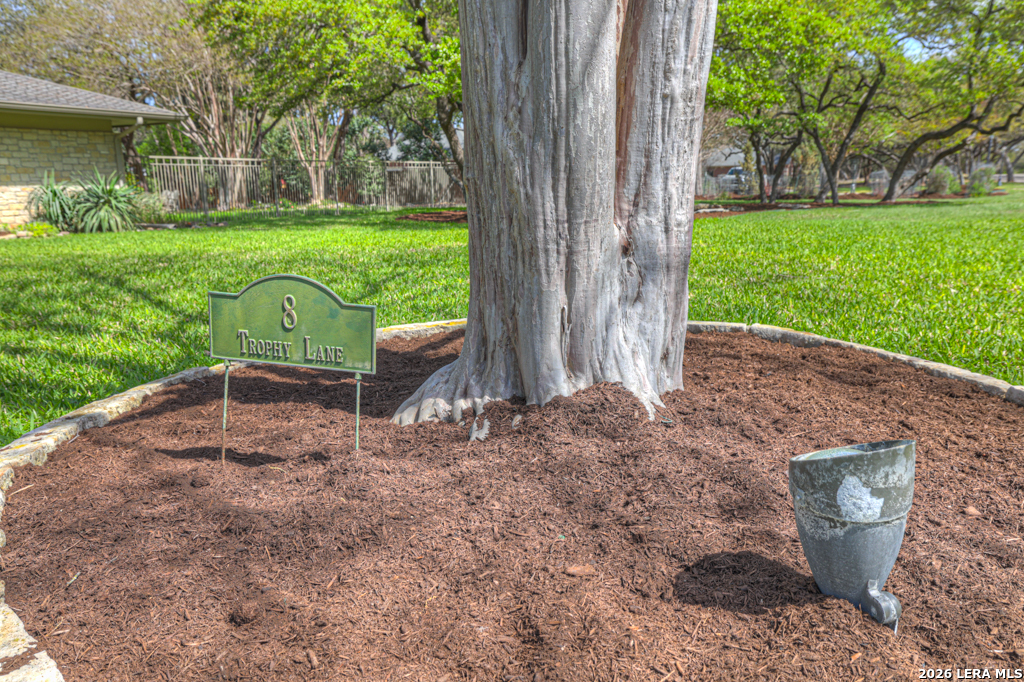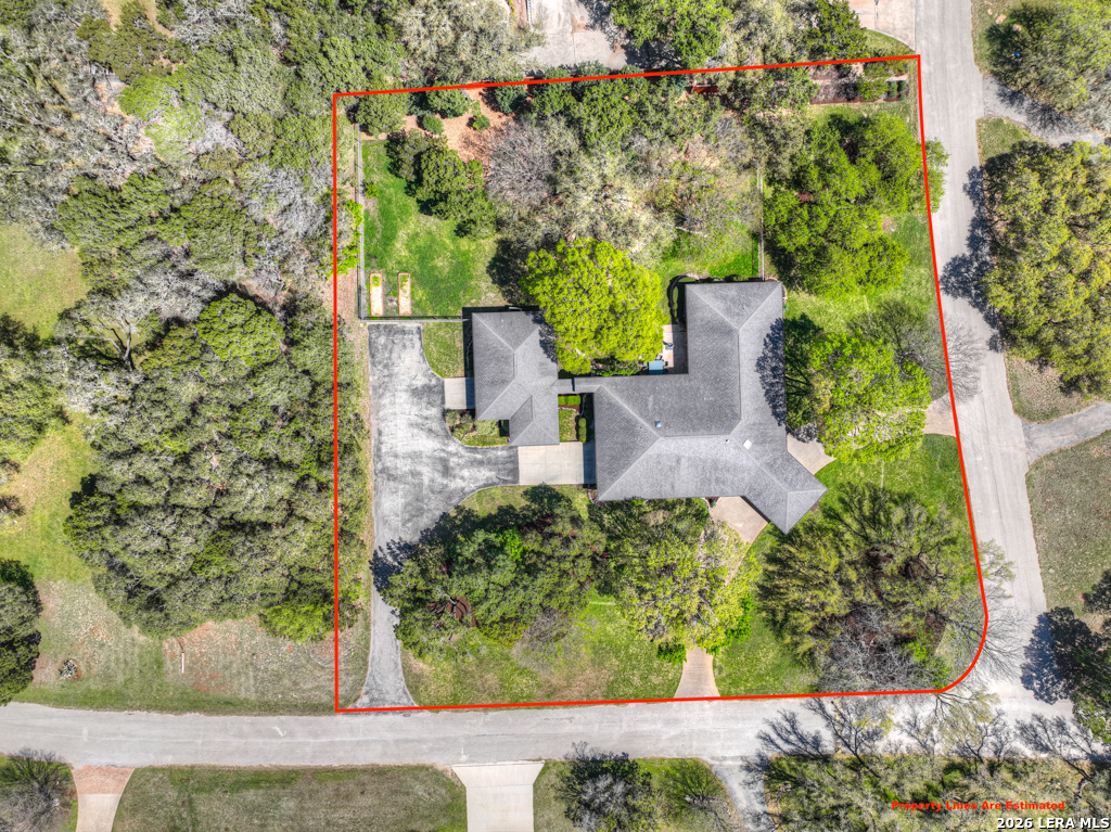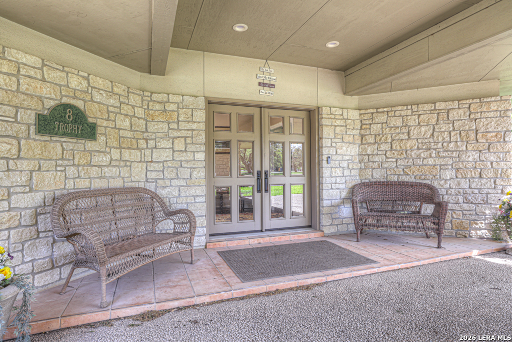 Welcome to 8 Trophy Lane, a truly custom-built home designed and built by one of New Braunfels premier custom home builders. The builder, John Lovett designed and crafted this home for he and his family. This 2,868 square foot home sits on a corner 1.05-acre lot. This unique design offers a detached guest home, in addition to the primary home. The entire home has a total of 4 bedrooms and 3 bathrooms. These are divided up with the primary residence offering 3 bedrooms and 2 bathrooms. The guest home offers a bedroom and a bathroom with a small kitchenette. Located in the highly sought after community of the T Bar M Ranch Estates. This is currently the only home for sale within this beloved community, that offers gated entry and resort style living, close to private amenities such as several swimming pools and professional grade tennis and pickleball courts. Masterfully located between Highway 46 and FM 1863, just a short drive to shopping, entertainment and the excitement of the New Braunfels downtown area. You will notice access to the front door from either street passing under a porte-cochere. The home also has a driveway entrance to access the two separate garages. The entire house is complimented with abundant natural light from several custom 6 foot French county style windows, crown molding, 6-inch baseboards, and hard wood flooring throughout the main areas of the home. Entering the home, you are immediately welcomed by natural light from a skylight in the foyer. This entry allows you to move into either the TV room to the left of the foyer or formal living room/dining room to the right of the foyer. The TV room has built-in cabinets, drawers and showcasing shelves. The formal living room has an open floorplan with recess lighting and flows into the formal dining area. Both TV room and Living/Dining rooms are adjacent to the large kitchen. The kitchen is designed with an abundance of custom cabinets. Centered in the kitchen is a large 4'x9'island with a deep sink and reverse osmosis system. Blending in with the cabinets are the subzero refrigerator and subzero freezer. Between the kitchen and the access to the garage is the laundry room with a sink, additional cabinets, ice machine, large storage room. The kitchen offers a great view and access to the backyard through windows that line across almost the entire exterior wall, with French doors that open onto the large, covered patio.