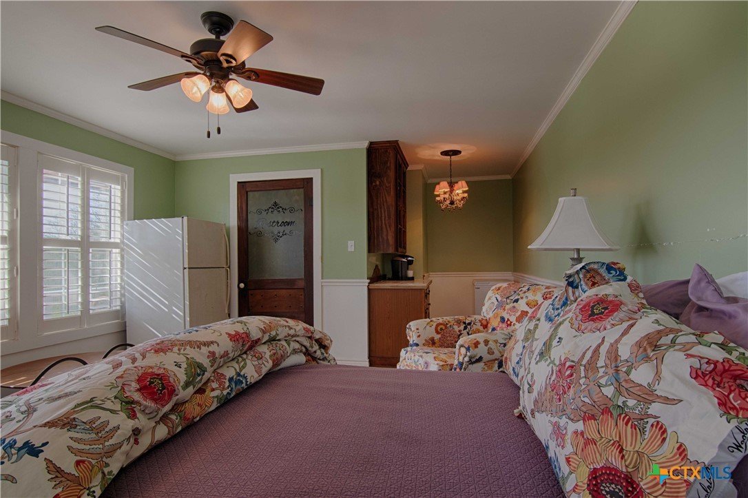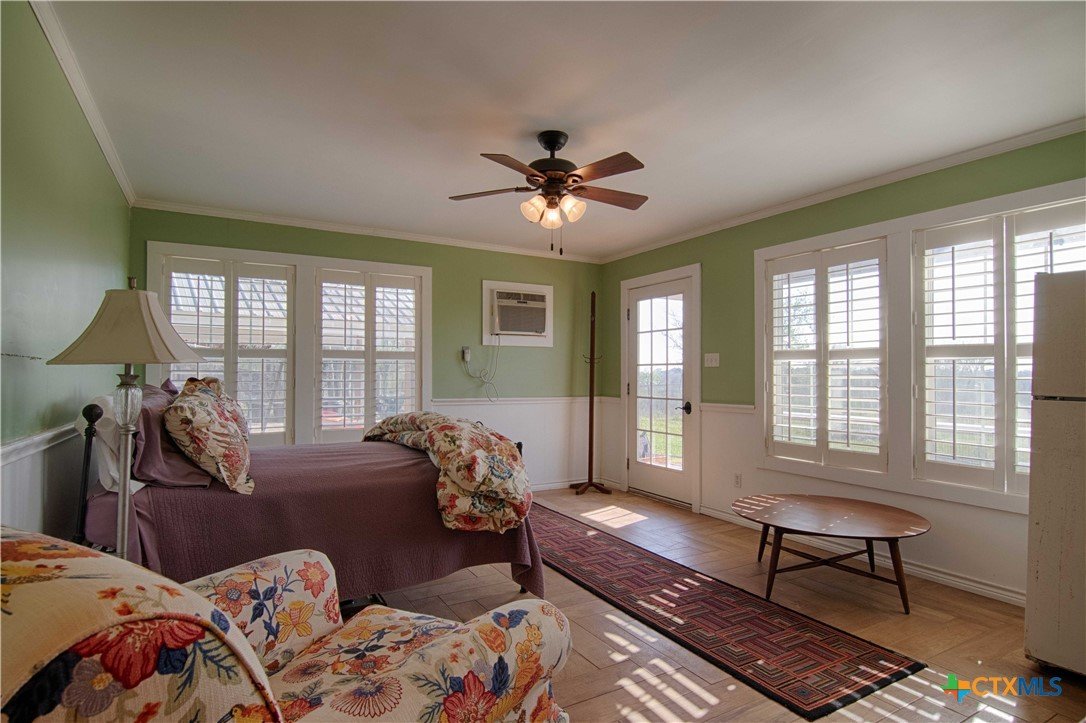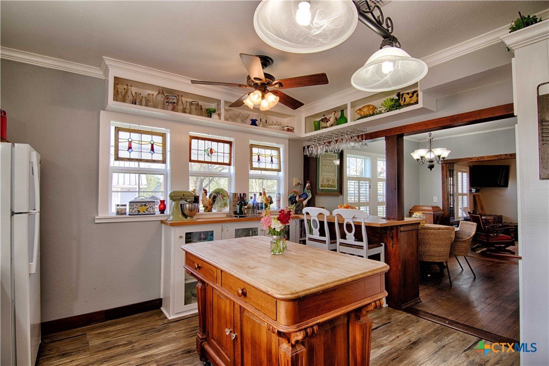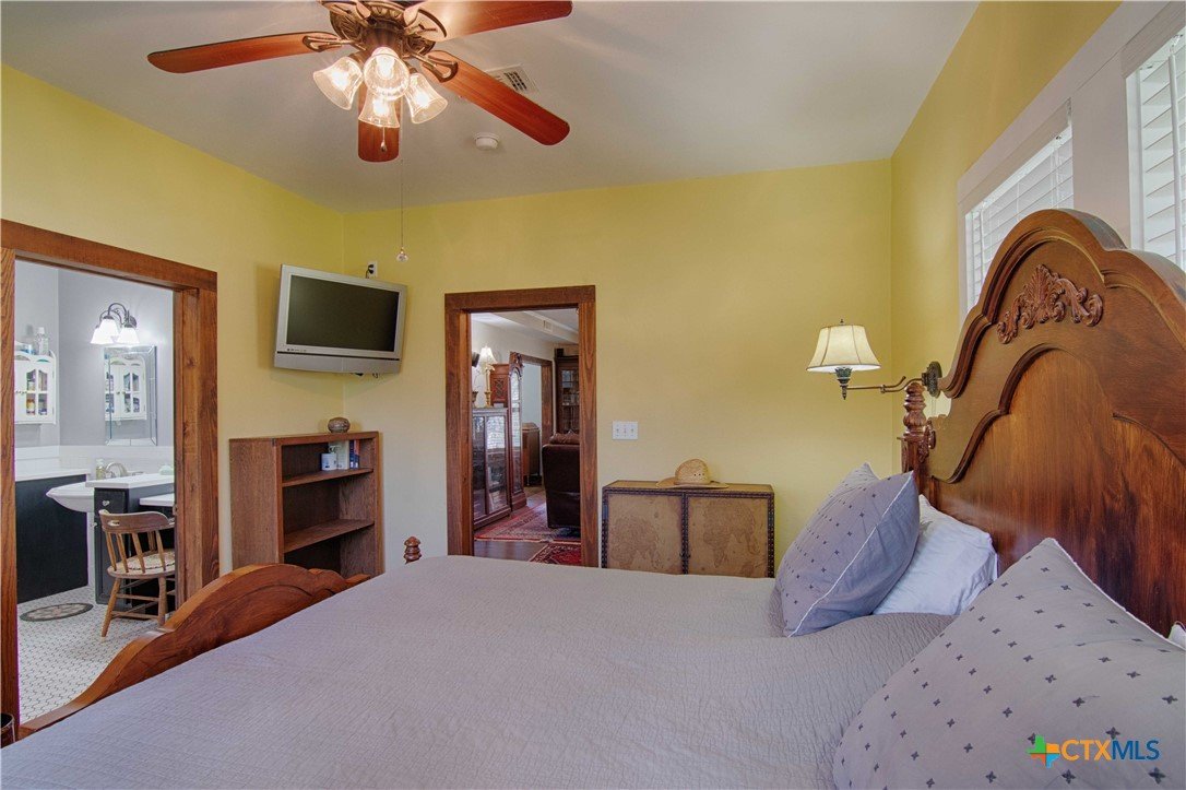 Experience country elegance with this charming 2-bedroom, 2-bathroom home where antique charm meets modern comfort. Featuring beautiful wood floors throughout, this property offers the perfect blend of old-world character and contemporary conveniences. Unwind on the front porch swing or entertain guests around the gas outdoor fire pit as stunning sunset views unfold from your back porch. The separate garage apartment provides versatile space for guests or rental income. Set on 1.48 acres of picturesque land, there's ample room for horses and livestock to roam. Experience timeless Texas living with all the space you need for both relaxation and entertainment.