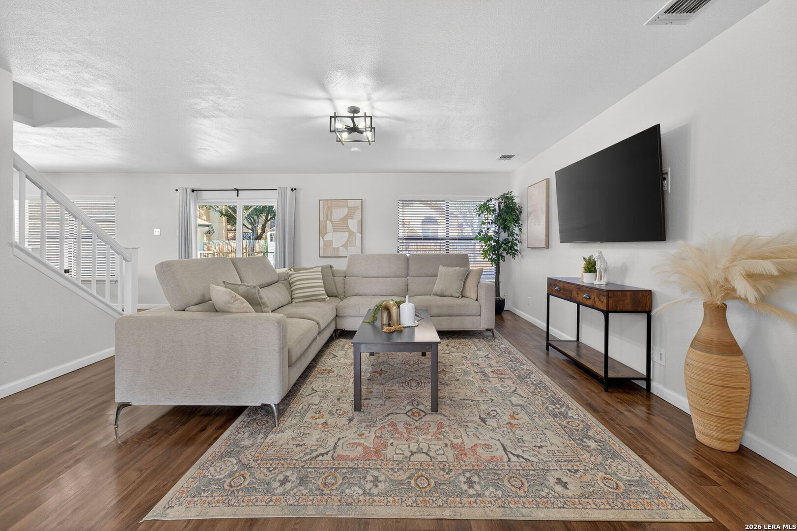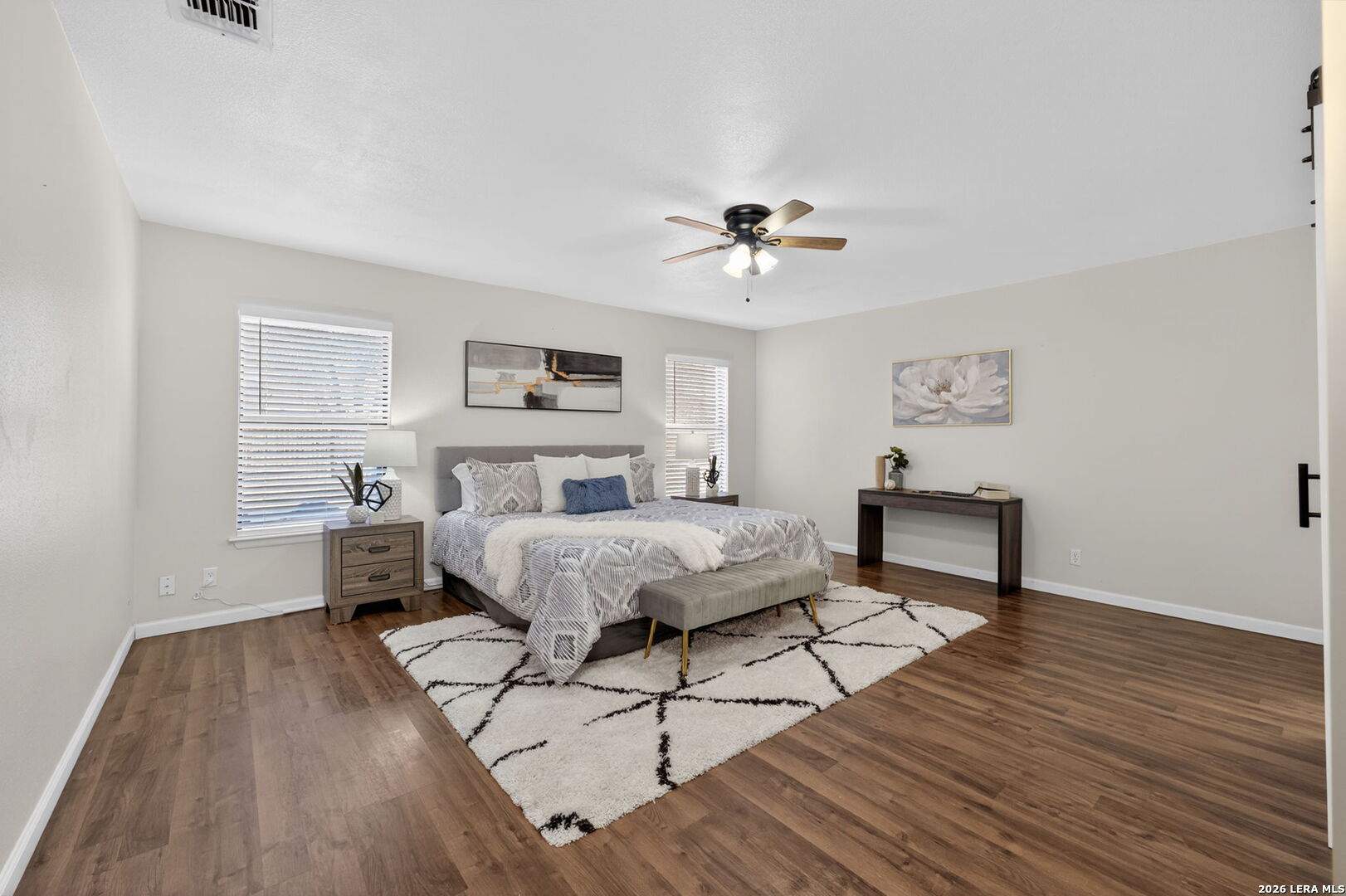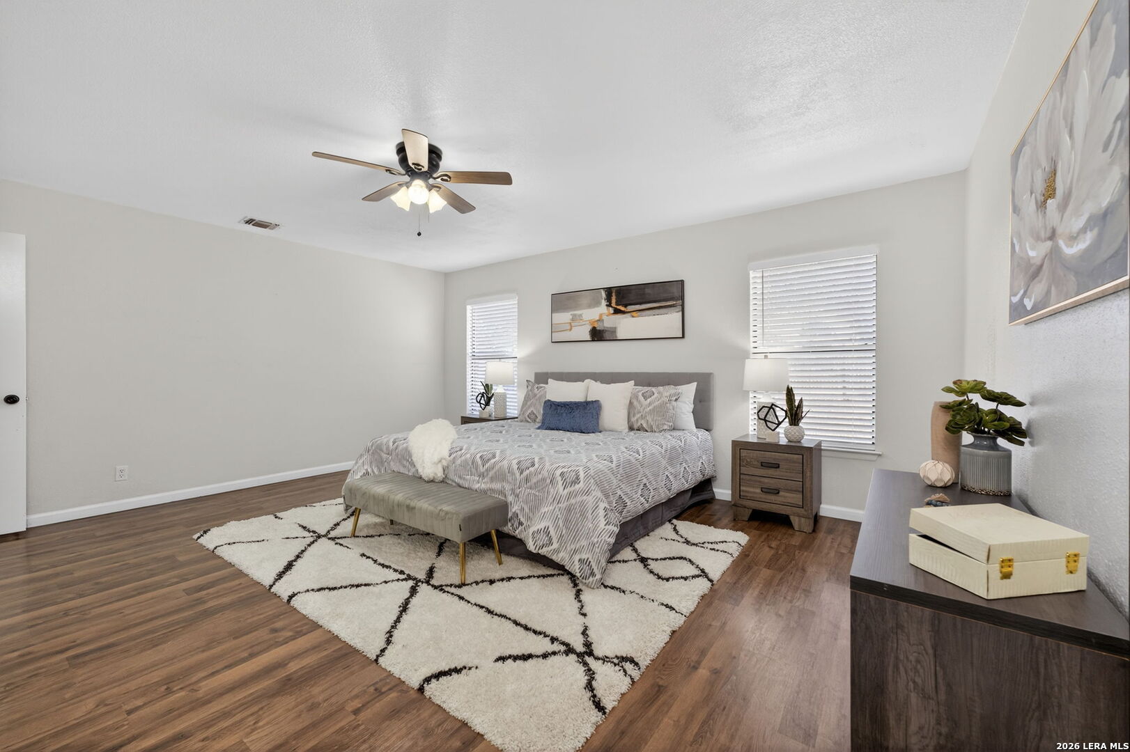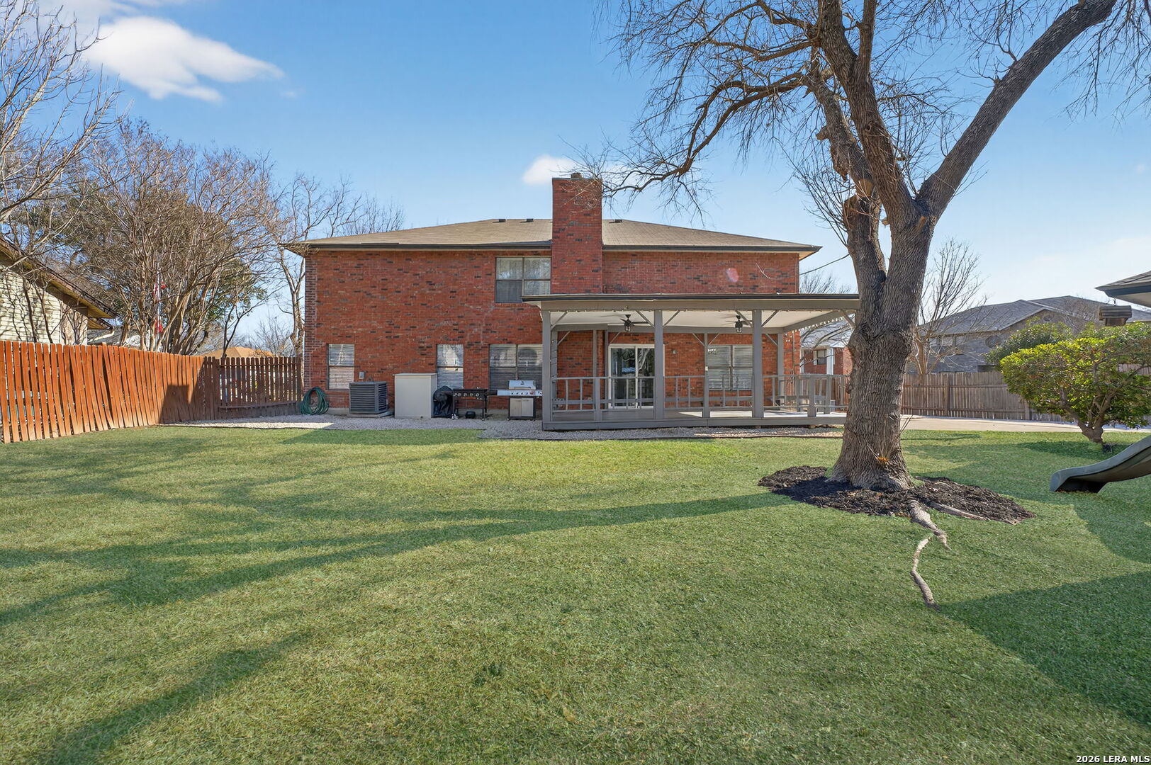 Welcome to the largest and most distinguished home in the neighborhood, perfectly positioned on a prime quarter-acre corner lot with over 3,700 square feet of beautifully upgraded living space. This exceptional 5-bedroom, 3.5-bathroom residence blends impressive scale with refined, luxury finishes throughout. From the moment you step inside, you're greeted by rich, updated flooring, elevated lighting, and sophisticated design details that create a warm yet upscale ambiance. Two expansive living areas provide elegant spaces for entertaining, relaxing, or curating a private media retreat. The chef-inspired kitchen serves as the showpiece of the home, featuring 42-inch custom cabinetry, granite countertops, a striking herringbone backsplash, and sleek stainless steel appliances-offering both timeless style and everyday functionality. The main-floor primary suite is a private sanctuary, complete with a beautifully renovated spa-like bath showcasing upgraded tile, modern vanities, and an enhanced shower/tub combination designed for relaxation. All secondary bedrooms are generously sized with oversized closets, delivering both comfort and abundant storage. Upstairs, the impressive game room elevates entertainment with a professionally installed projector-creating the ultimate cinematic experience for movie nights and gatherings. Recent major system upgrades, including the roof, HVAC, and water heater (all replaced within the last five years), provide peace of mind and long-term value. A water softener is also included, adding an extra touch of comfort and convenience. Outdoors, the expansive backyard offers a rare sense of space and privacy-ideal for designing a resort-style pool, outdoor kitchen, or luxury entertaining area. An oversized covered patio sets the stage for year-round gatherings, while the playset and detached two-car garage add both charm and practicality. With its grand scale, thoughtful upgrades, and elevated finishes, this home presents a rare opportunity to own one of the most luxurious and impressive properties in the neighborhood. Schedule your showing today!
