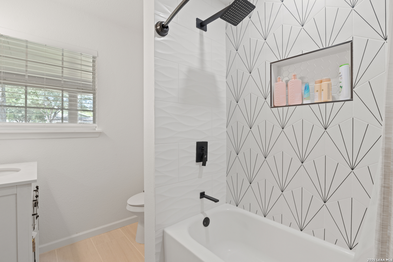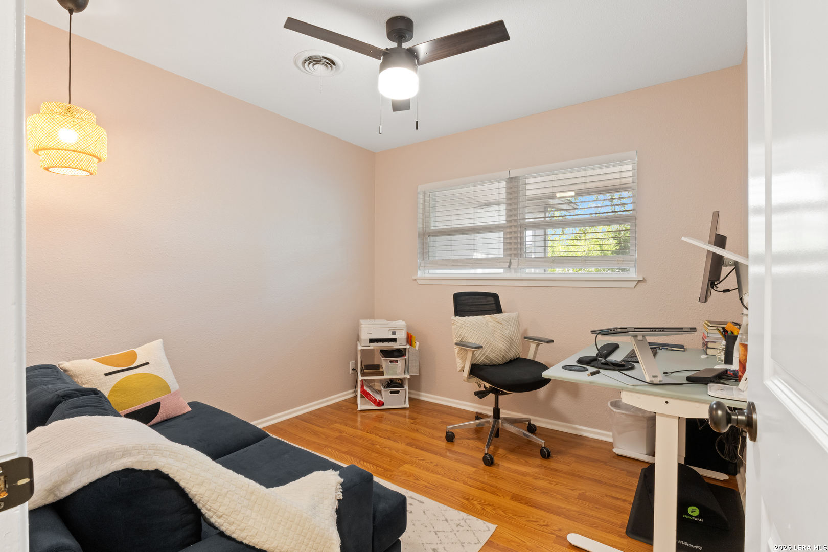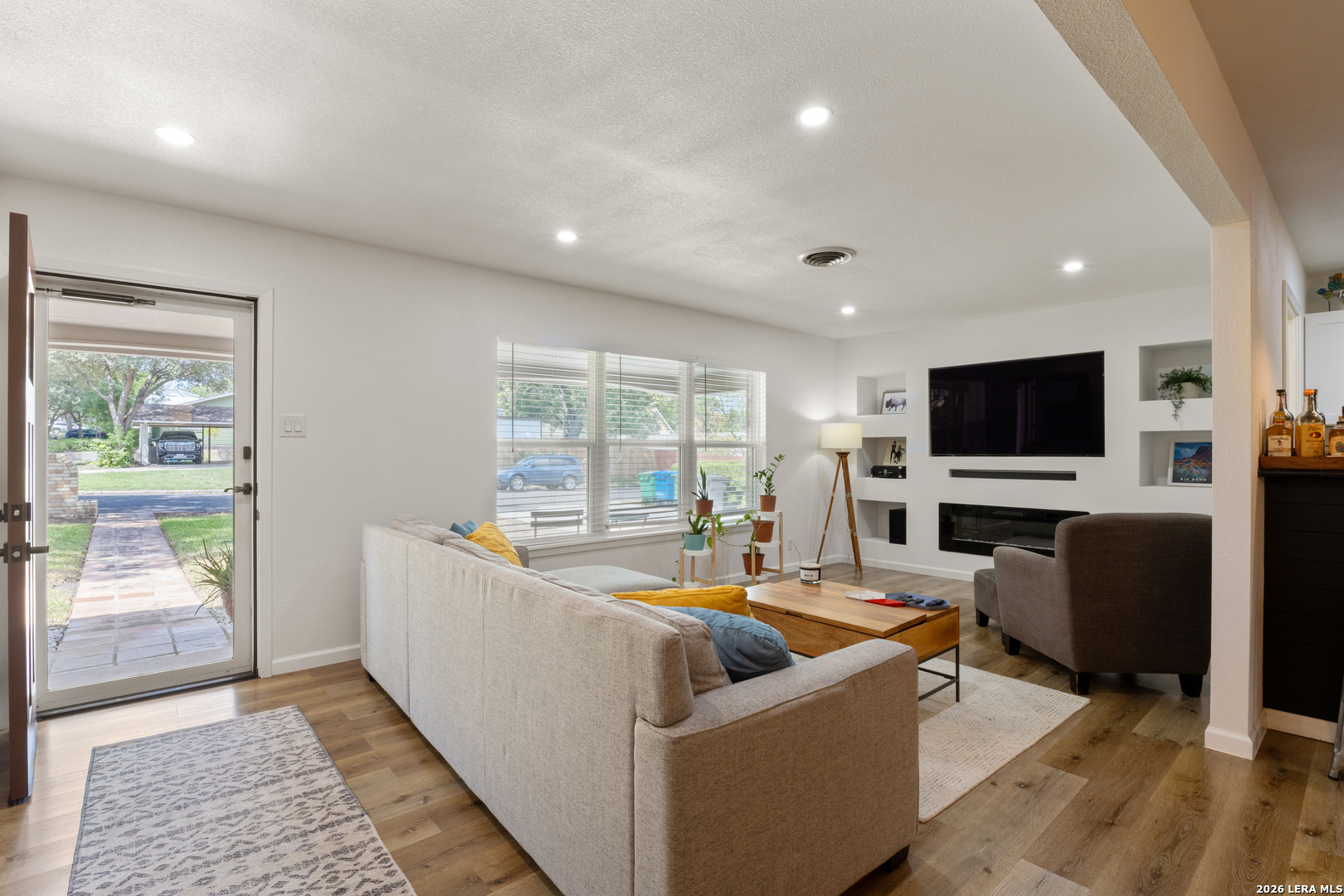 Gorgeous immaculate Single Story Home centrally located with easy access to major highways * Come see the display of homeownership pride this listing offers * Open floorplan makes home feel bigger featuring an open area uniting Living, Dining & Kitchen areas * Breakfast kitchen offers beautiful dark granite counters with stainless steel appliances & plenty of cabinets space * Flex Bonus Room can be used as a Family Room, Office Space, Hobby Room or Game Room * Primary Bedroom includes multiple closets with Full Bath which features Custom Walk-In Shower * Spacious secondary bedrooms all downstairs * Updated Hall Bath includes Tub & Shower combo * Washer & Dryer connections in the spacious 2 car garage * Washer, Dryer & extra A/C Window unit in primary bedroom DO NOT STAY * Backyard offers plenty of space to entertain friends and family with a concrete slab for your patio furniture and BBQ grill * Minutes from Loop 410, IH-10, Medical Center, North Star Mall, SA International Airport & NEISD Schools.