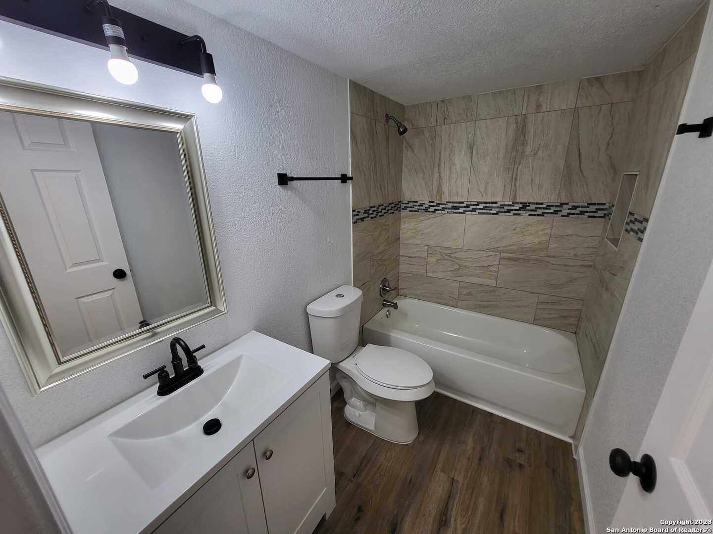 Are you looking to rent a newly remodeled house in a stablish neighborhood? please stop by and check this one out. Ready to move in, new bathrooms, kitchen, fresh paint, lights, floors, no carpet, new stainless steel appliances, mirrors, doors, doble panel efficient windows, high new fence for more privacy, large backyard. THIS HOUSE IS FOR SALE AS WELL. Close to 1604, hopping center, Randolph AFB, convenient stores, restaurants...