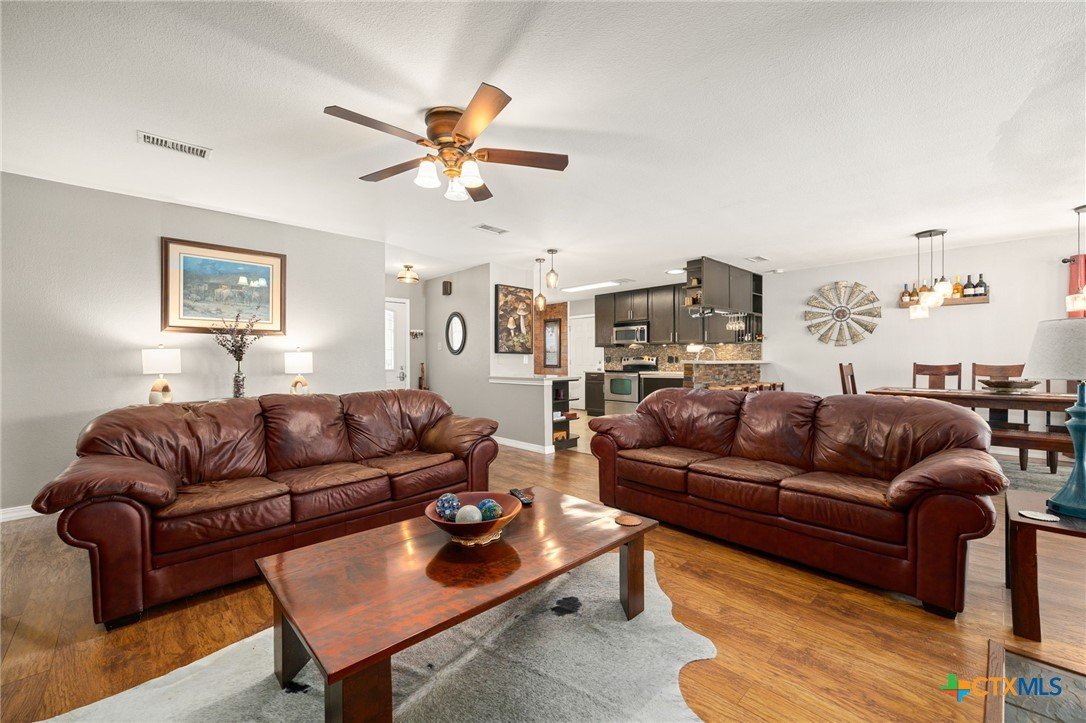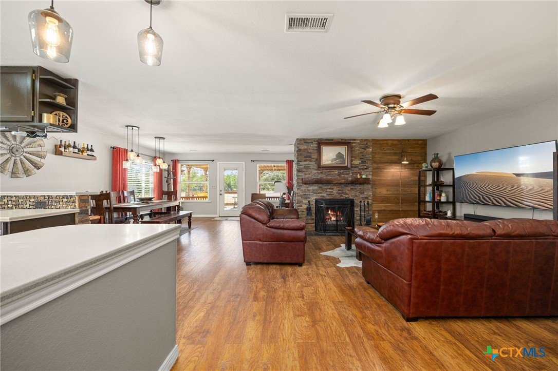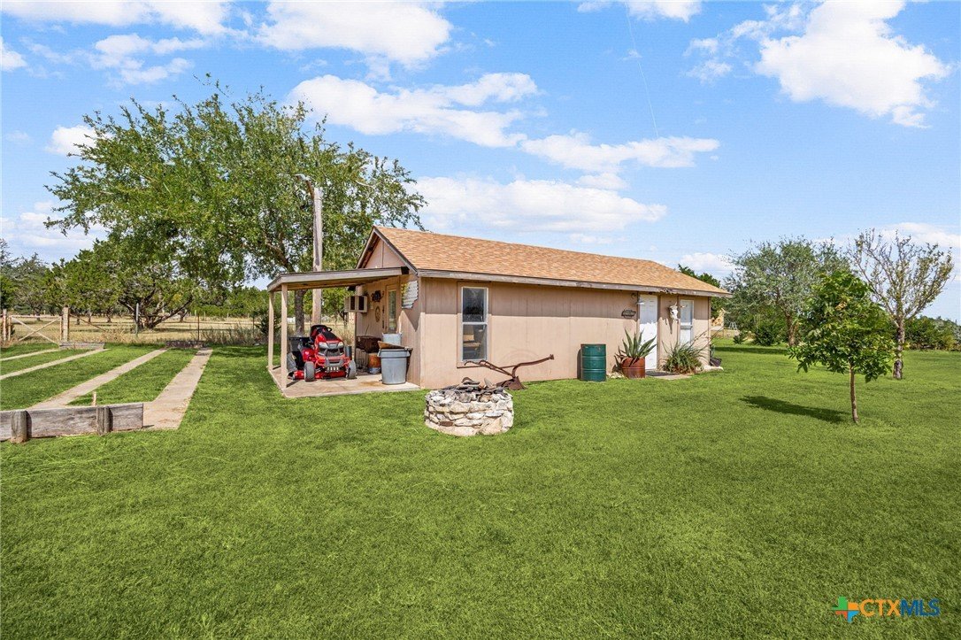 Experience the best of country living in this charming single-story ranch-style home set on nearly 5 acres, where space, comfort, and convenience come together beautifully. Horses are welcome, and the property includes multiple outbuildings, including a spacious workshop and a chicken coop—perfect for hobby farming or extra storage. Half of the acreage is cleared for easy use, while the other half remains heavily wooded, offering both open space and natural privacy. There are also fruit trees providing delightful treats! Inside, the home features an inviting open floor plan centered around a striking stone fireplace, creating a warm and welcoming atmosphere. The kitchen is ideal for gathering, with Corian countertops, a breakfast bar, and plenty of cabinet space. The primary suite is a true retreat with dual walk-in closets, while two additional bedrooms provide comfort and flexibility for family or guests. Step outside to enjoy a peaceful backyard surrounded by mature trees—ideal for relaxing evenings or weekend barbecues. Located in a desirable area that combines the tranquility of rural living with quick access to local amenities, this property offers the perfect balance of country charm and modern convenience.